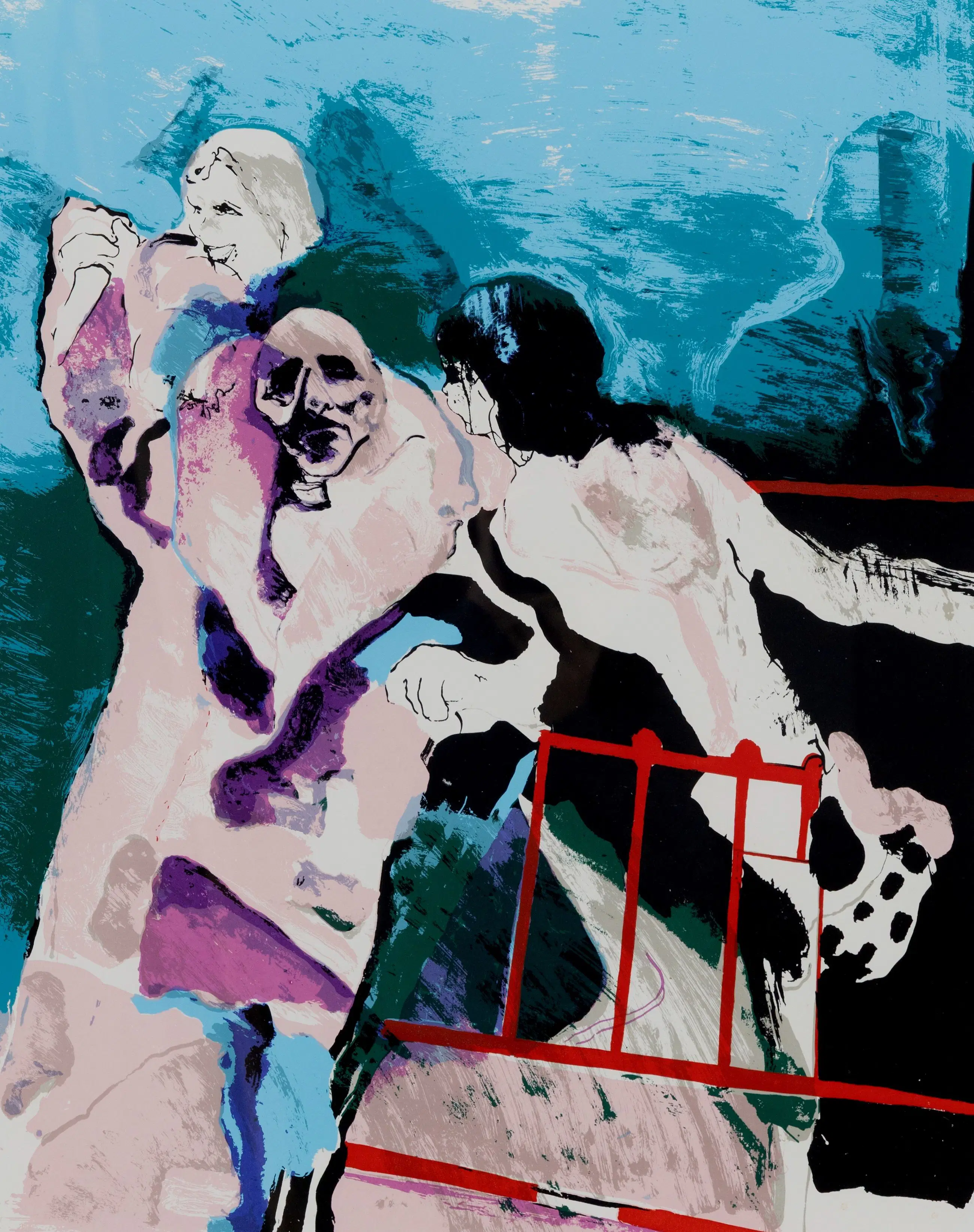 Ingelijste zeefdruk van Kees van Bohemen uit 1974. Titel: 'Macbeth'. Oplage: 95/100. Afmetingen incl lijst: H90.5 x b73cm. Afmetingen voorstelling: H67 x b52cm. Het werk is rechtsonder gesigneerd('KvBohemen'), door de kunstenaar. De authenticiteit van het aangeboden werk wordt volledig gegarandeerd. Een certificaat van echtheid kan, op aanvraag, worden gemaild.