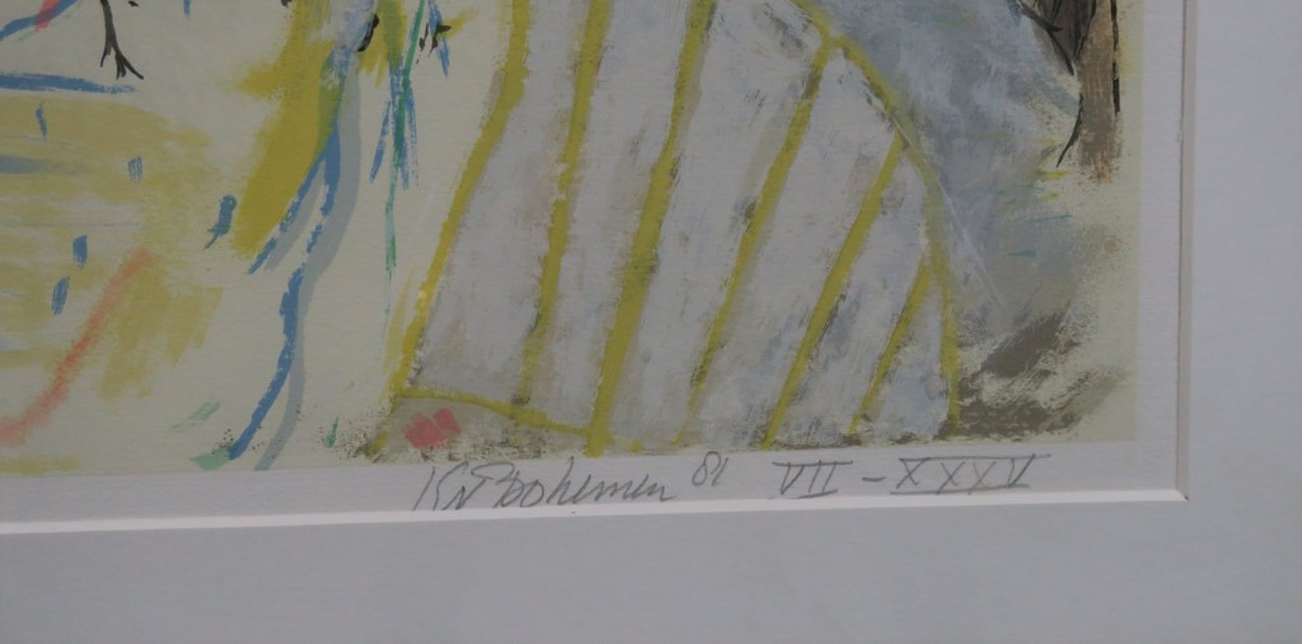 Conditie kunstwerk: Beeld in zeer goede staat (heeft een nieuw passe-partout nodig, zitten gele lijnen op)