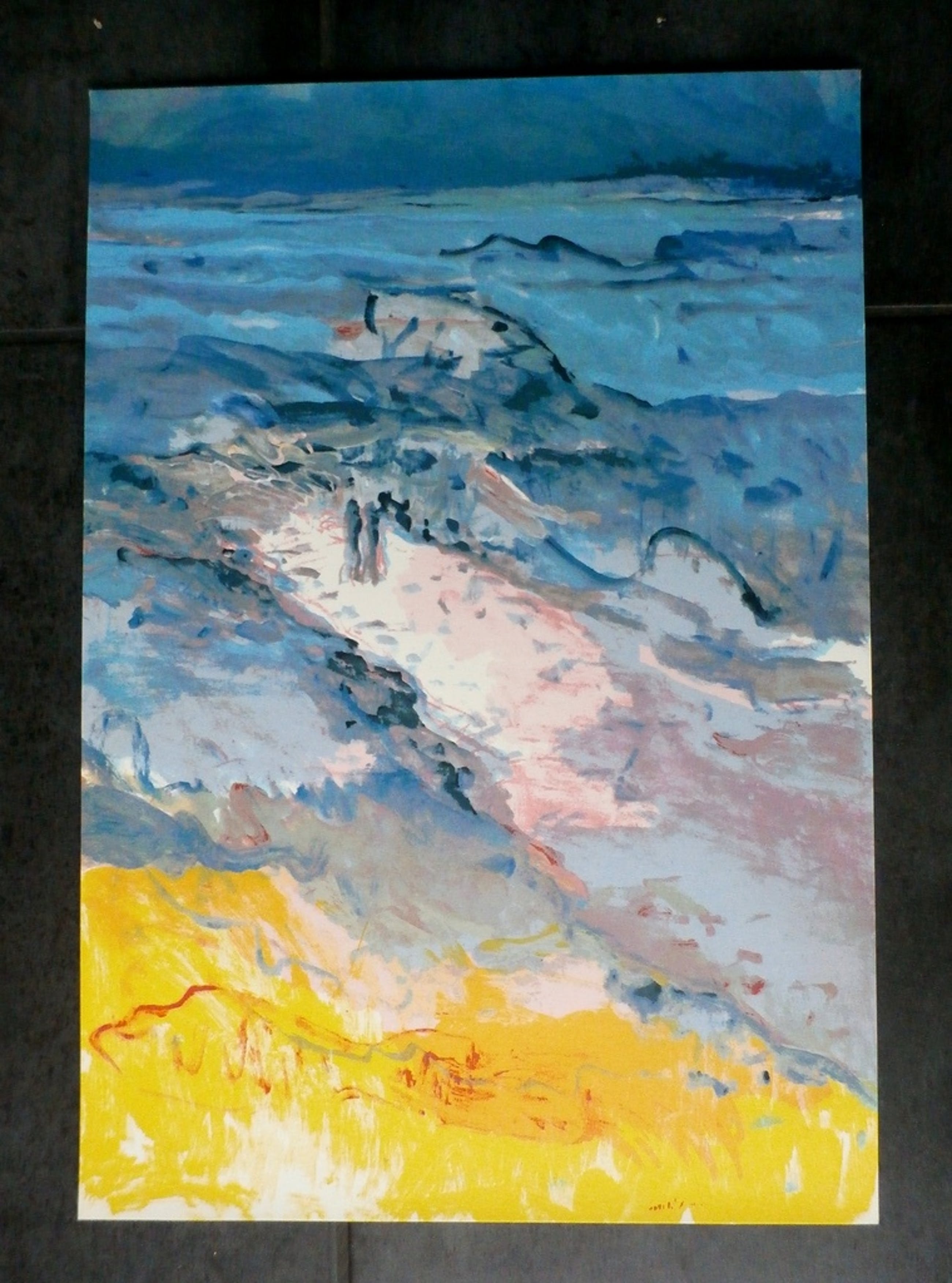 Zeefdruk Kees van Bohemen. Titel: variatie op een golfbreker. Jaar: 1982. Zeefdruk die in geen enkel opzicht verschilt met de uiteindelijke gesigneerde, gedateerde en genummerde exemplaren. Afmetingen blad H54.5cm x b38.5cm. Achterop voorzien van een notarieel atelier stempel. De authenciteit van het aangeboden werk wordt voor 100% gegarandeerd. Een certificaat van echtheid kan, op aanvraag worden meegestuurd. Afkomstig uit de nalatenschap van Henk van der Vet. Conditie: in goede staat.