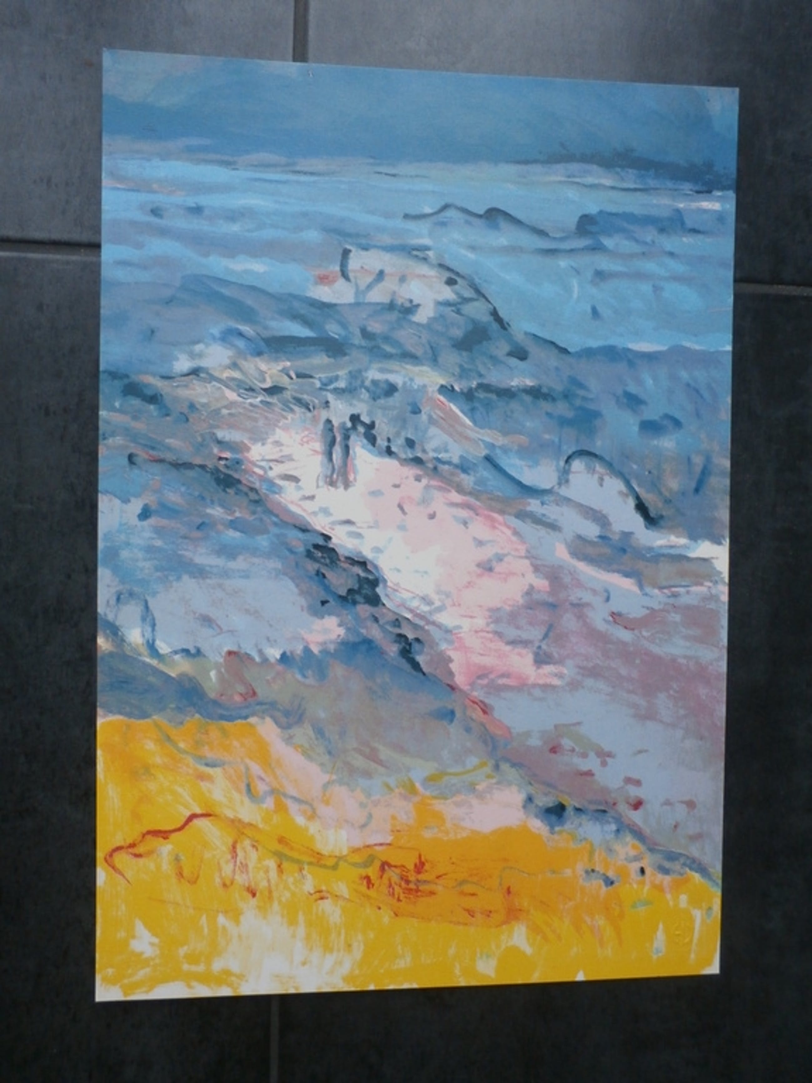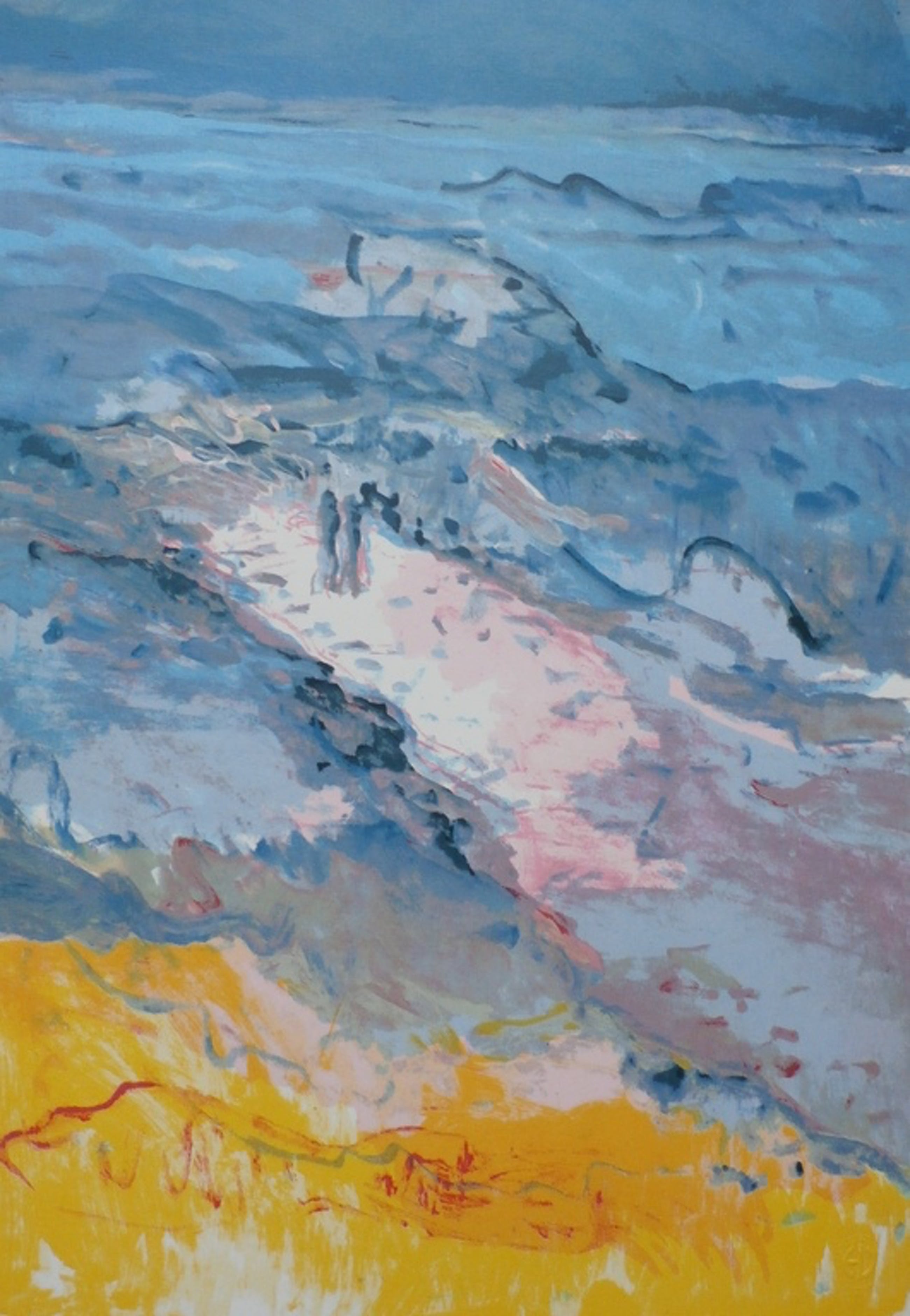 Zeefdruk Kees van Bohemen. Titel: variatie op een golfbreker. Jaar: 1982. Zeefdruk die in geen enkel opzicht verschilt met de uiteindelijke gesigneerde, gedateerde en genummerde exemplaren. Afmetingen blad H54.5cm x b38.5cm. Achterop voorzien van een notarieel atelier stempel. De authenciteit van het aangeboden werk wordt voor 100% gegarandeerd. Een certificaat van echtheid kan, op aanvraag worden meegestuurd. Afkomstig uit de nalatenschap van Henk van der Vet. Het werk is niet gesigneerd. Conditie: in goede staat.