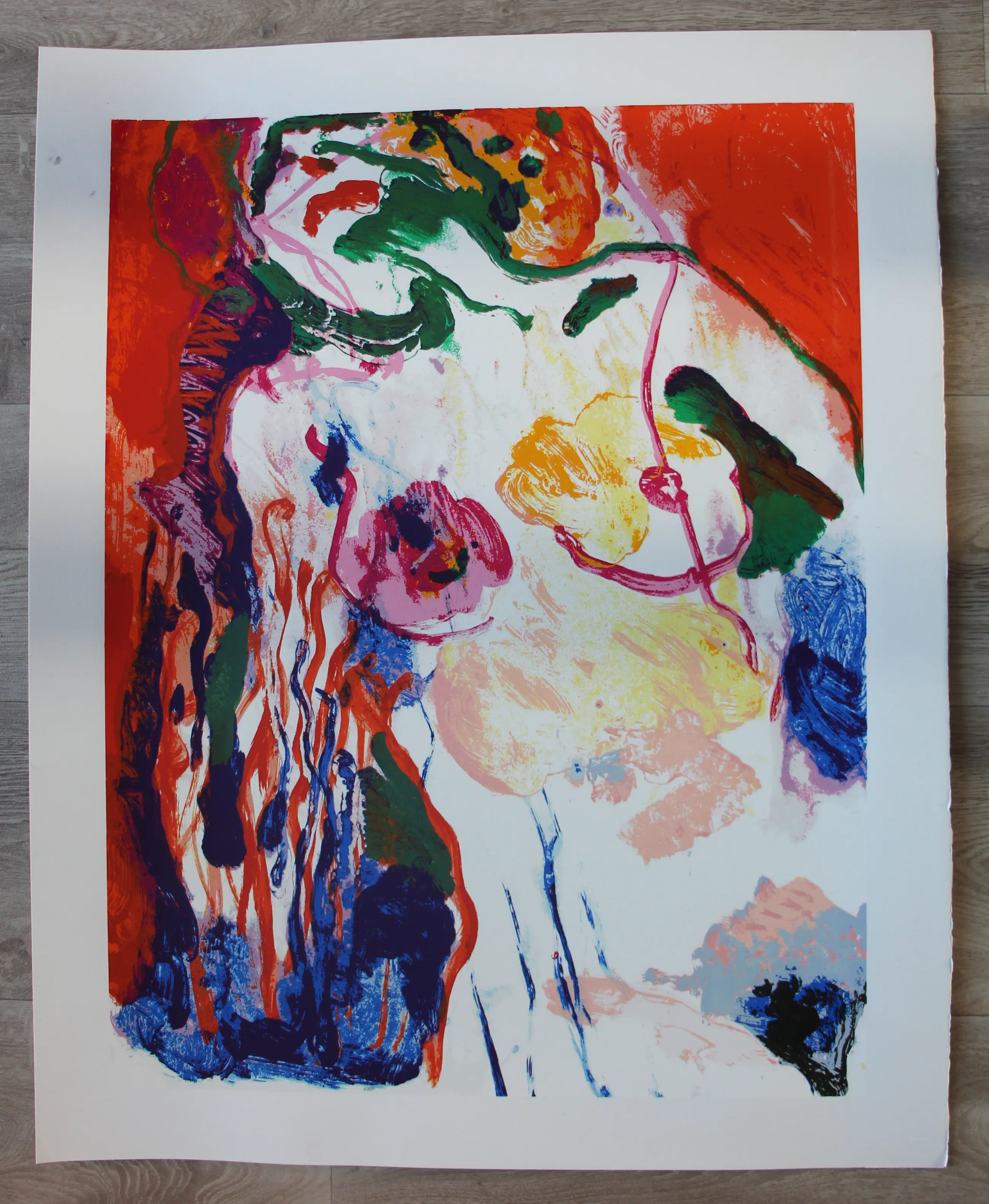 Bekend werk van Kees van Bohemen. Kees van Bohemen behoorde tot de Haagse Posthoorngroep. Litho die in geen enkel opzicht verschilt met de uiteindelijke gesigneerde, gedateerde en genummerde exemplaren. Afmetingen blad H74.5cm x b59.5cm. Afmetingen voorstelling H65 x b49.5cm. Achterop voorzien van een notarieel atelier stempel. De authenticiteit van het aangeboden werk wordt volledig gegarandeerd. Een certificaat van echtheid kan, op aanvraag worden gemaild. Afkomstig uit de nalatenschap van Henk van der Vet.