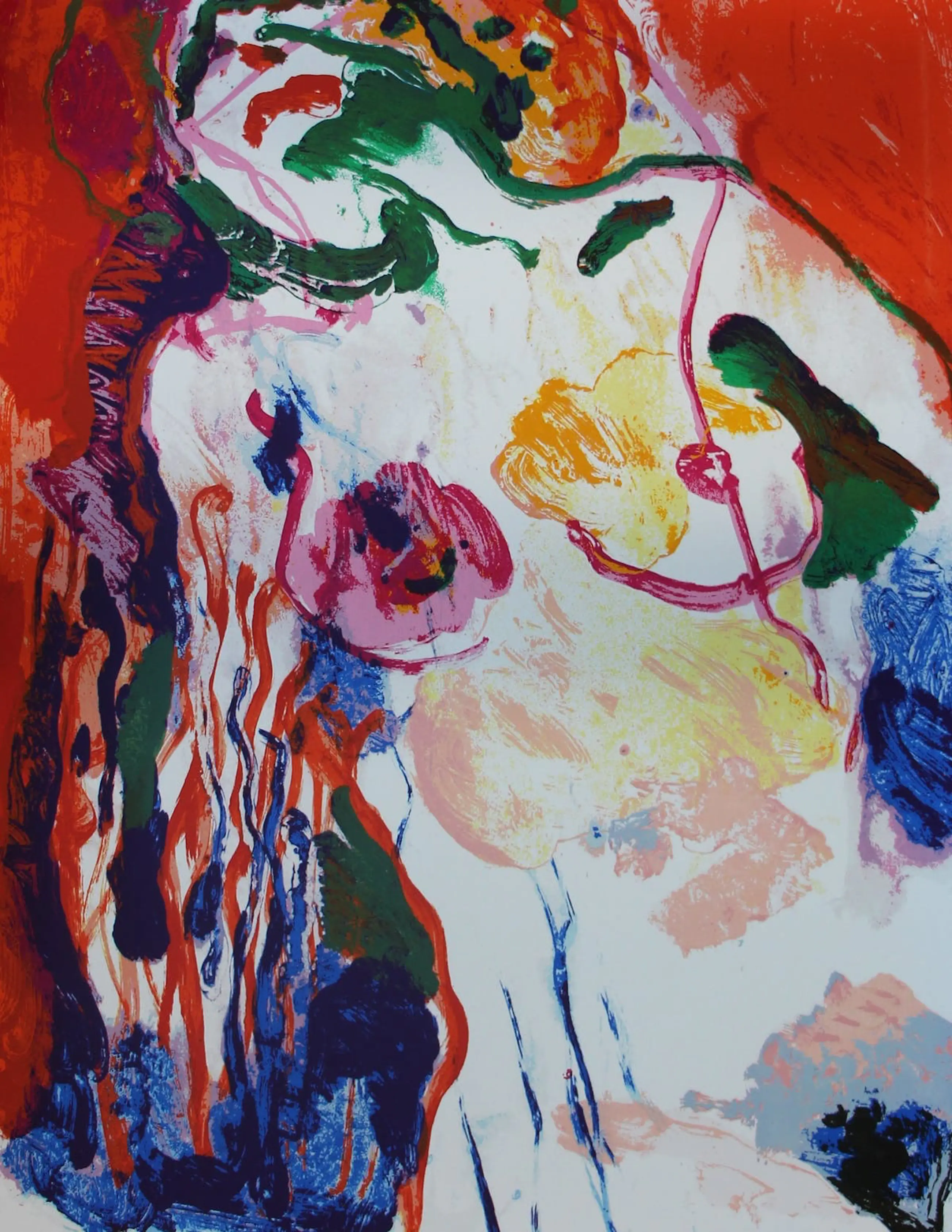 Bekend werk van Kees van Bohemen. Litho die in geen enkel opzicht verschilt met de uiteindelijke gesigneerde, gedateerde en genummerde exemplaren. Afmetingen blad H74.5cm x b59.5cm. Afmetingen voorstelling H65 x b49.5cm. Achterop voorzien van een notarieel atelier stempel. De authenticiteit van het aangeboden werk wordt volledig gegarandeerd. Een certificaat van echtheid kan, op aanvraag worden gemaild. Afkomstig uit de nalatenschap van Henk van der Vet.