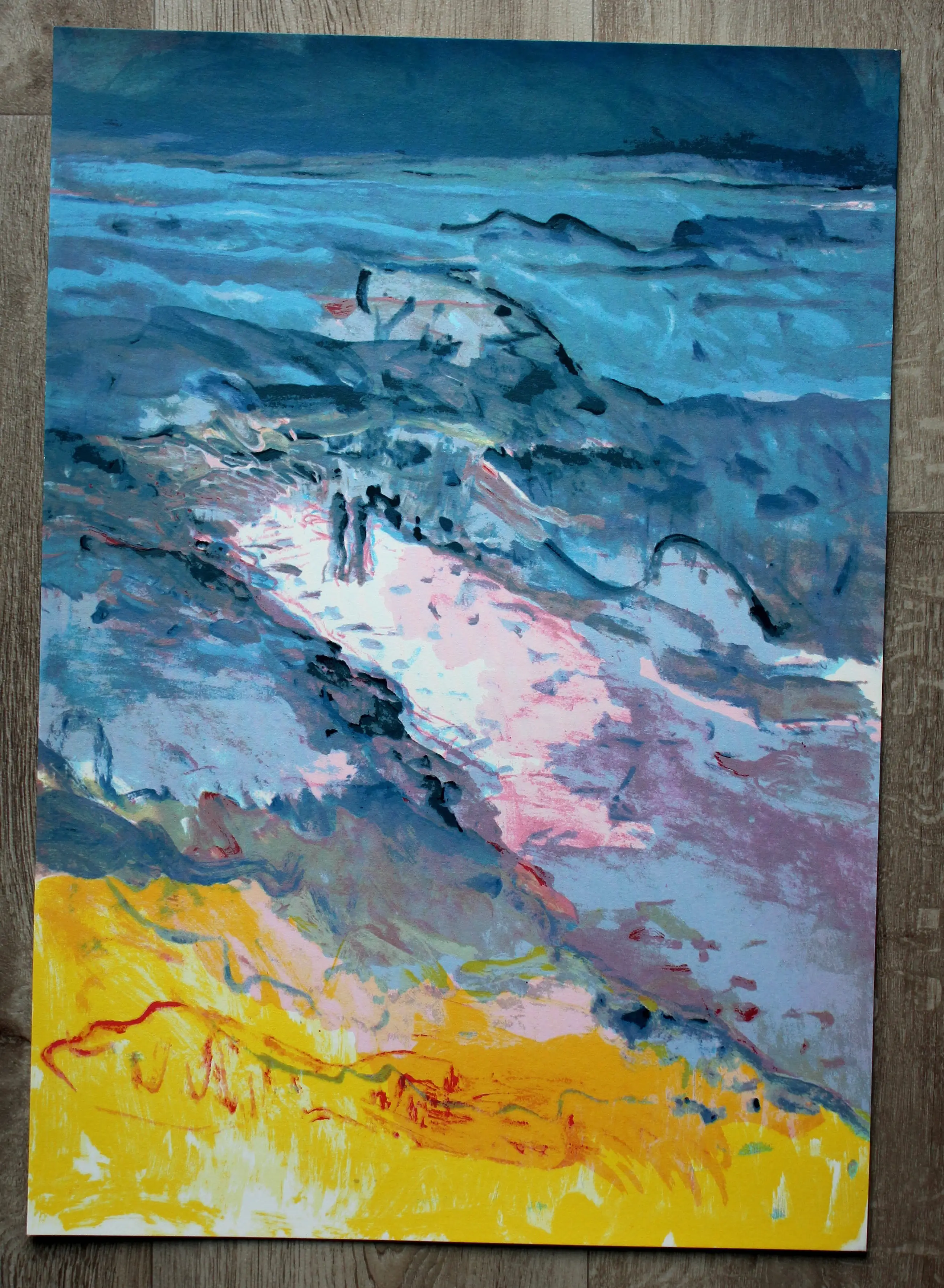 Litho van Kees van Bohemen. Kees van Bohemen behoorde tot de Haagse Posthoorngroep. Titel: variatie op een golfbreker. Jaar: 1982. Litho die in geen enkel opzicht verschilt met de uiteindelijke gesigneerde, gedateerde en genummerde exemplaren. Afmetingen blad H54.5cm x b38.5cm. Achterop voorzien van een notarieel atelier stempel. De authenticiteit van het aangeboden werk wordt voor 100% gegarandeerd. Een certificaat van echtheid kan, op aanvraag worden meegestuurd. Afkomstig uit de nalatenschap van Henk van der Vet. Het werk is niet gesigneerd. Conditie: in goede staat.