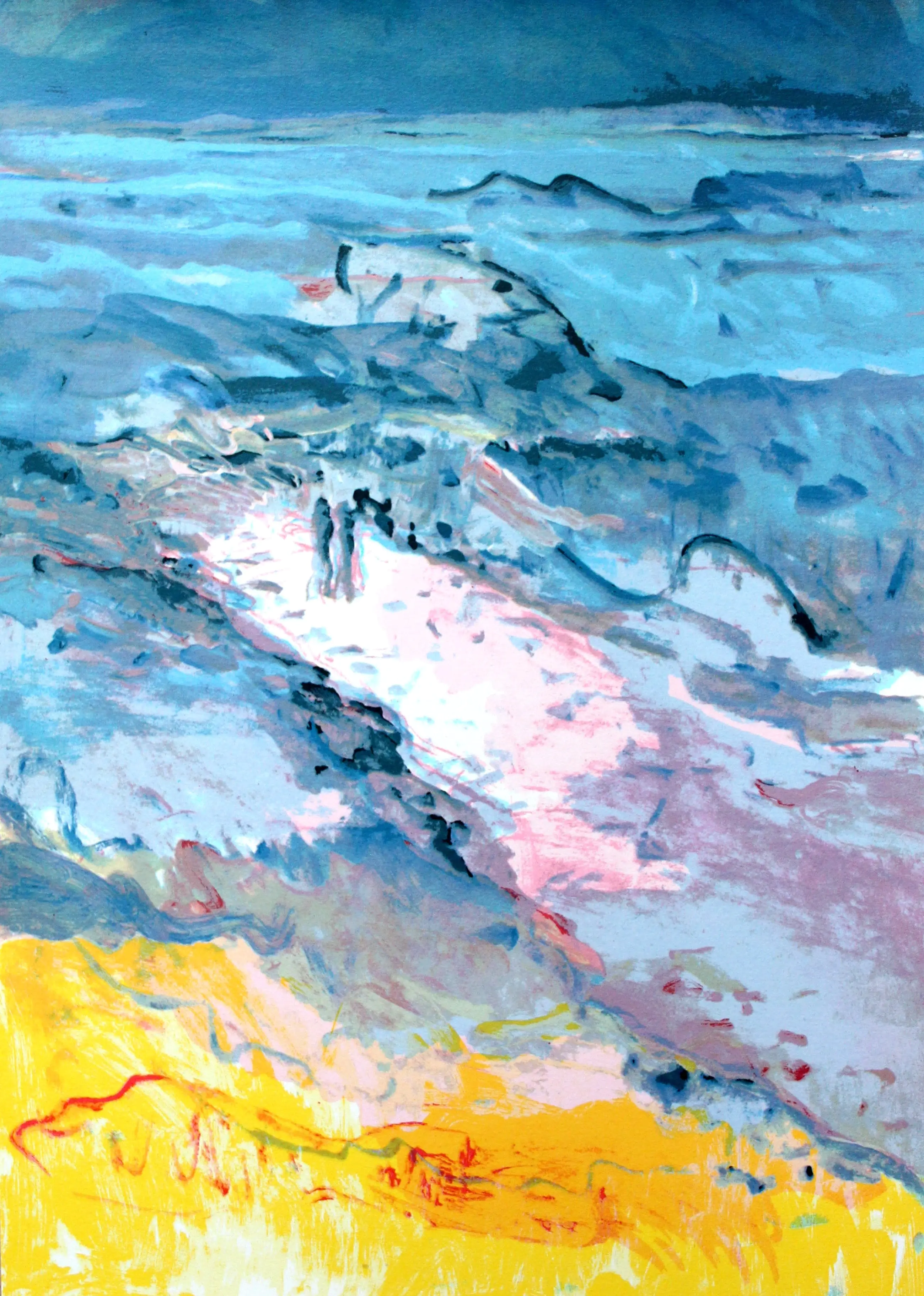 Litho van Kees van Bohemen. Titel: variatie op een golfbreker. Jaar: 1982. Litho die in geen enkel opzicht verschilt met de uiteindelijke gesigneerde, gedateerde en genummerde exemplaren. Afmetingen blad H54.5cm x b38.5cm. Achterop voorzien van een notarieel atelier stempel. De authenticiteit van het aangeboden werk wordt voor 100% gegarandeerd. Een certificaat van echtheid kan, op aanvraag worden gemaild. Afkomstig uit de nalatenschap van Henk van der Vet. Het werk is niet gesigneerd.