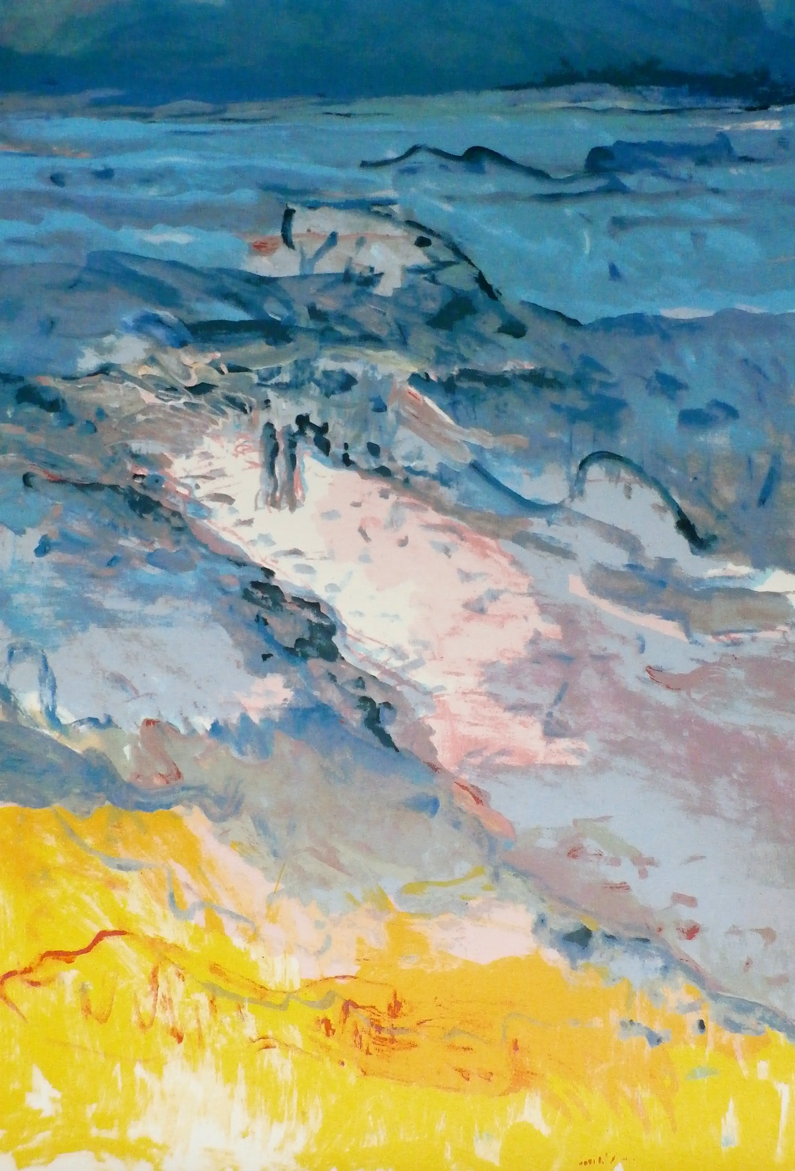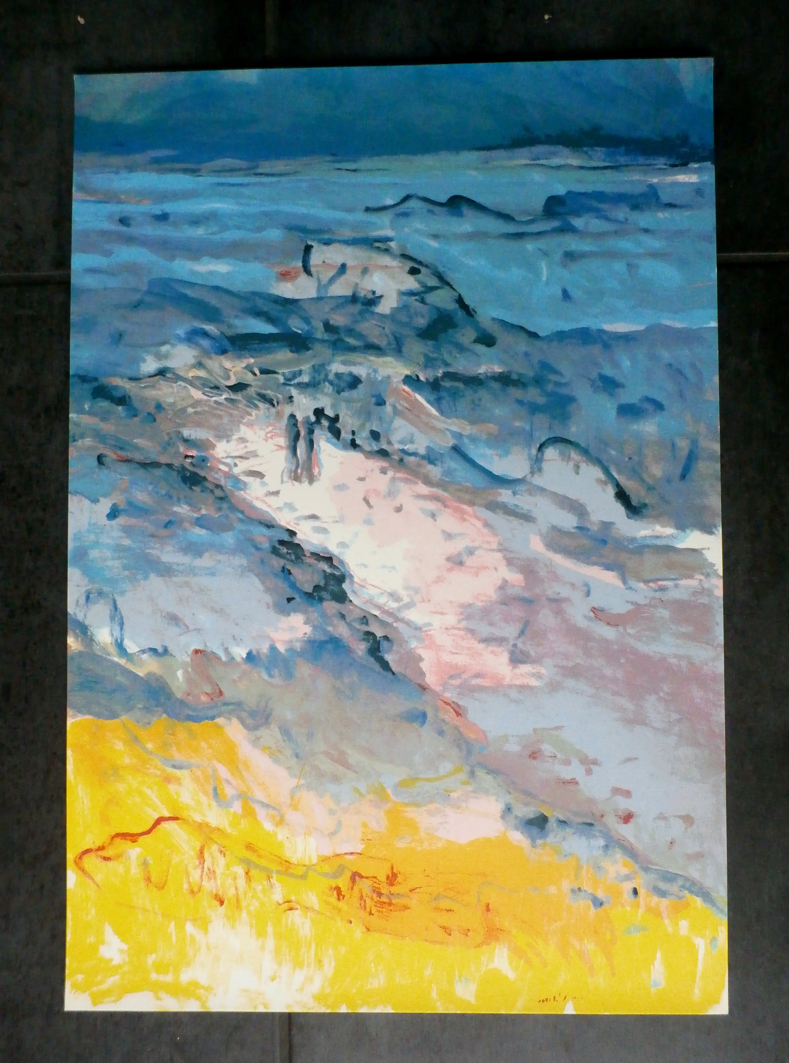Litho van Kees van Bohemen. Titel: variatie op een golfbreker. Jaar: 1982. Litho die in geen enkel opzicht verschilt met de uiteindelijke gesigneerde, gedateerde en genummerde exemplaren. Afmetingen blad H54.5cm x b38.5cm. Achterop voorzien van een notarieel atelier stempel. Het werk is niet gesigneerd . Afkomstig uit de nalatenschap van Henk van der Vet.