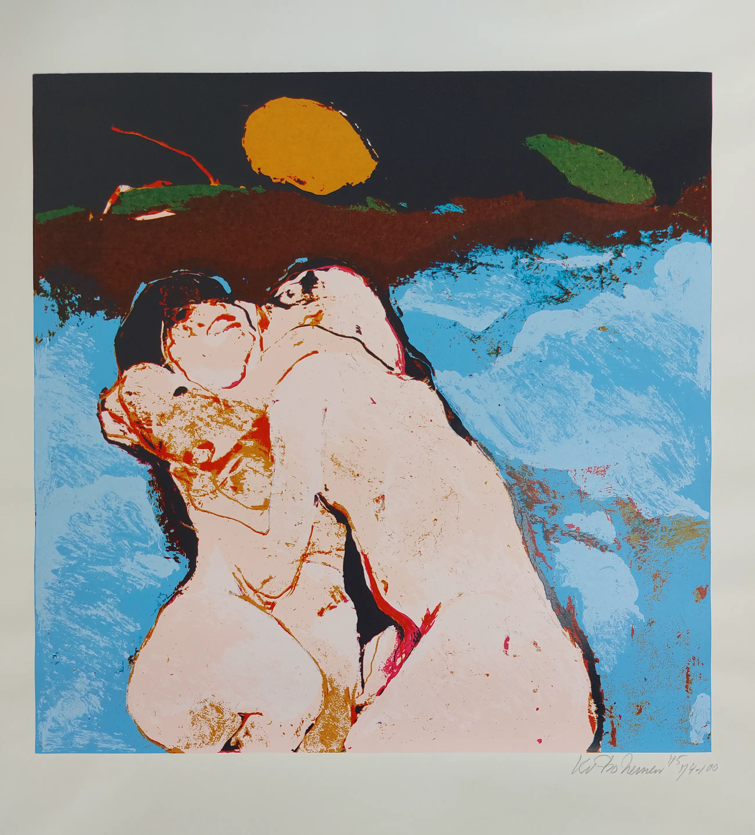 Fraaie lithografie van Kees van Bohemen. Met potlood gesigneerd en genummerd 74 van 100.