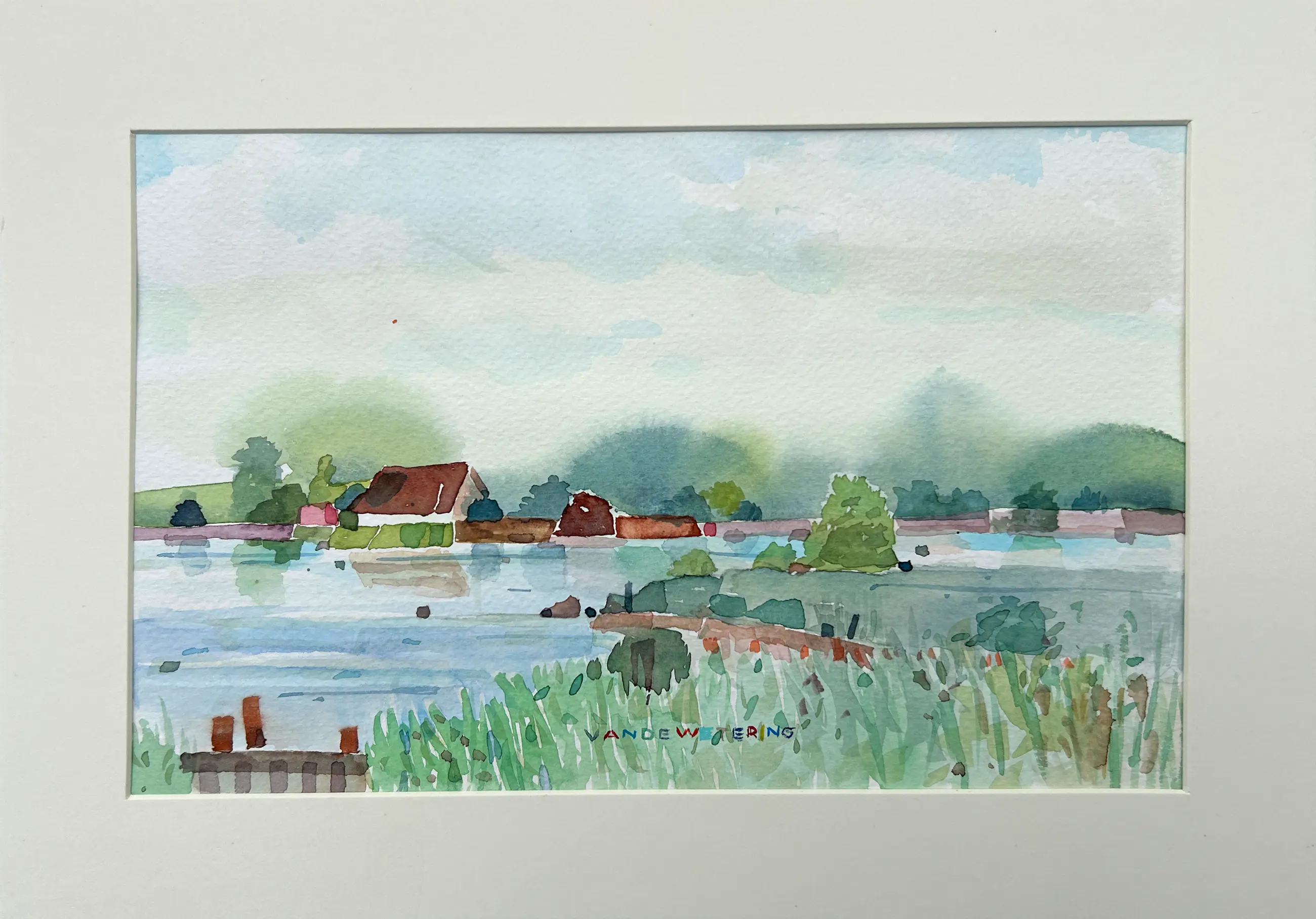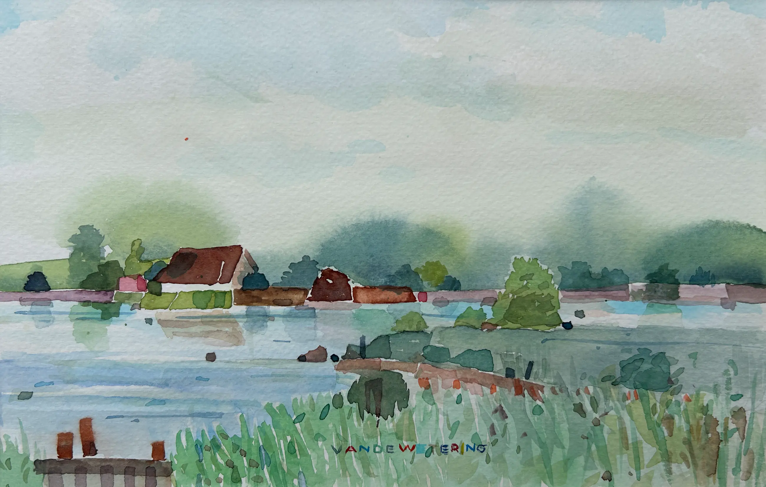 Leuke aquarel van de nederlandse kunstenaar Kees van de Wetering. Een frille aquarel, en-plein-air geschilderd in Zeeland.