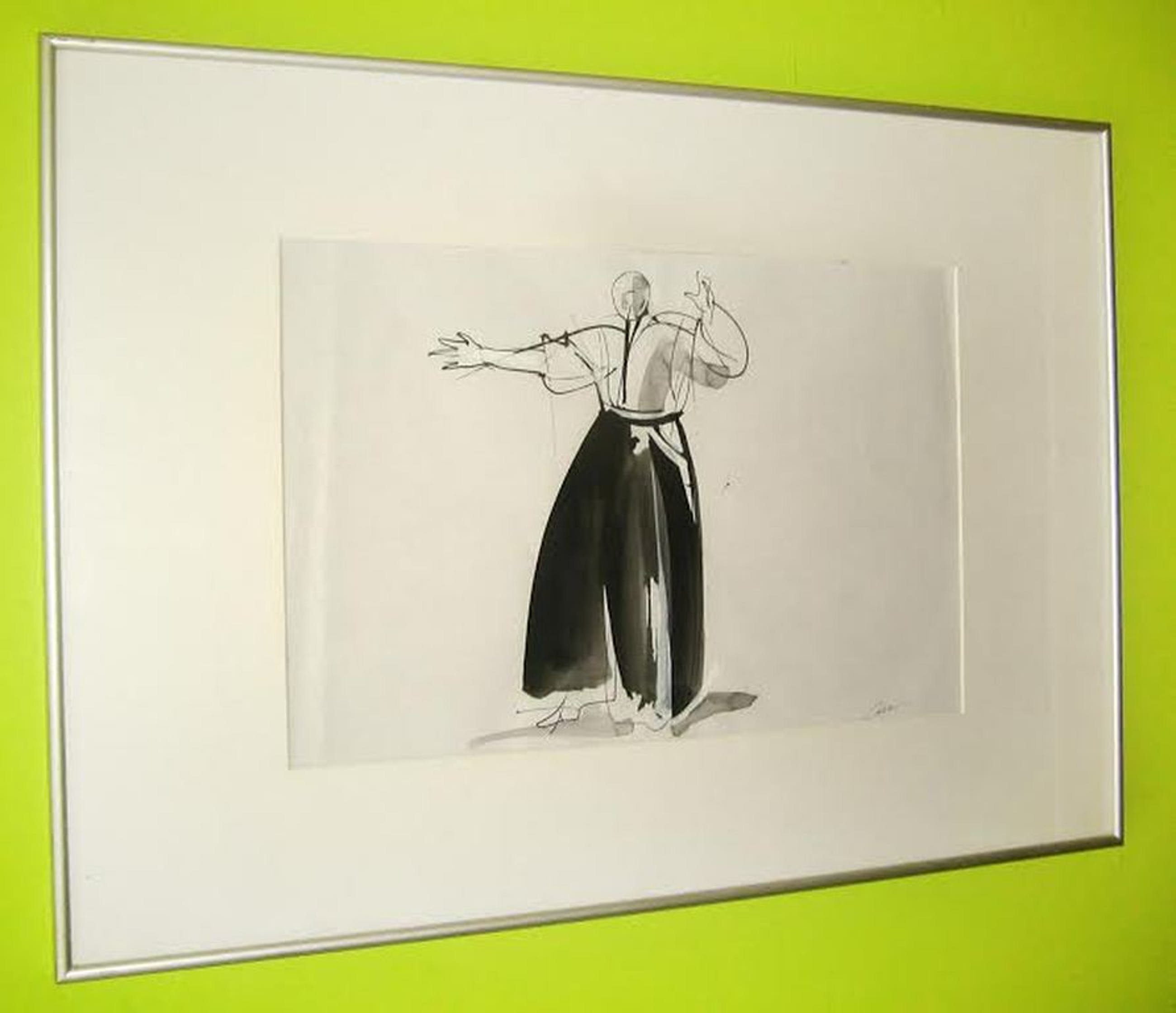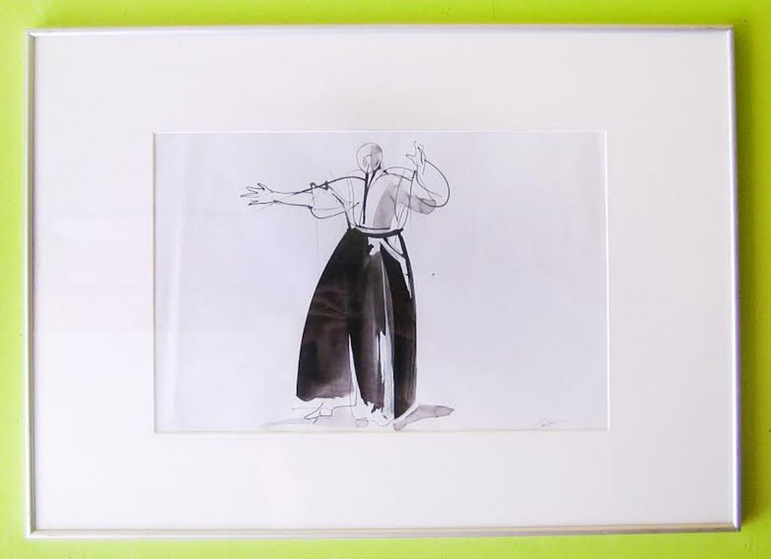 Originele en gesigneerde 'Cheng Hsin' tekening van Kees van der Knaap, penseel en inkt op papier. Titel: The invitation. Deze tekening is keurig ingelijst in een aluminium lijst met passe-partout. Afmeting: 70x50 cm. Afmeting tekening: 30x45 cm