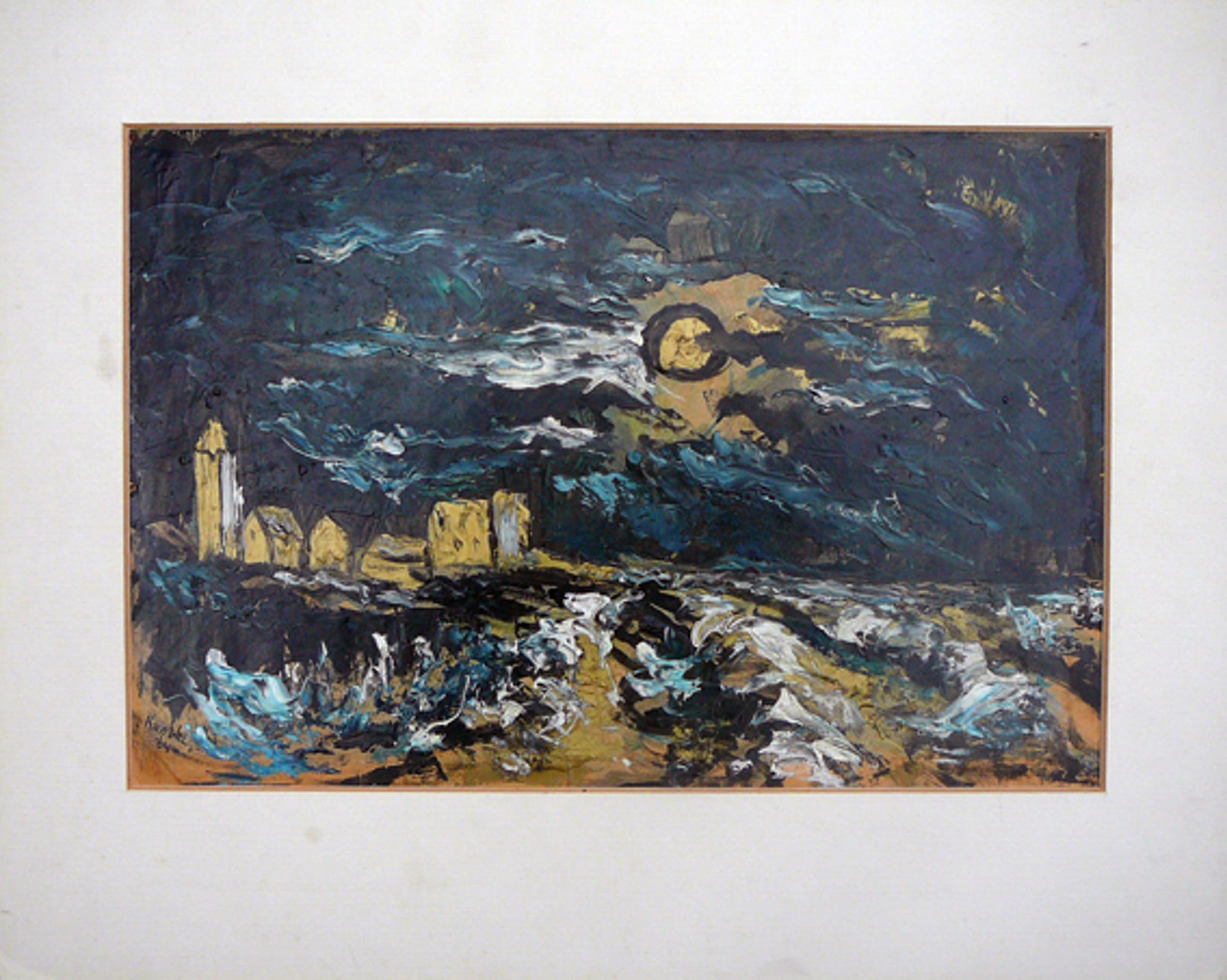 Werk verkeert in zeer goede conditie, passepartout moet vervangen worden. Geen lijst.