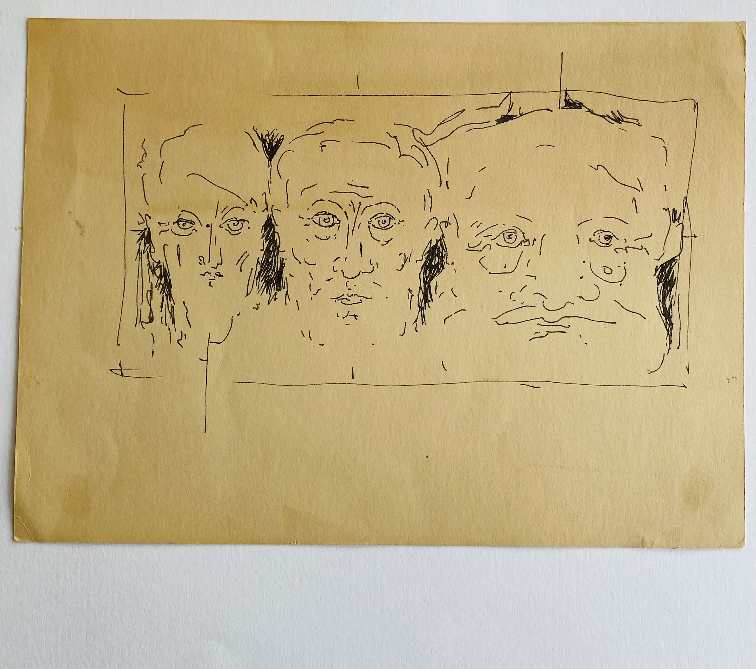 • Historie schets, 3 doorlopende portretten, inkt op papier, afm,: 40 x 30 cm