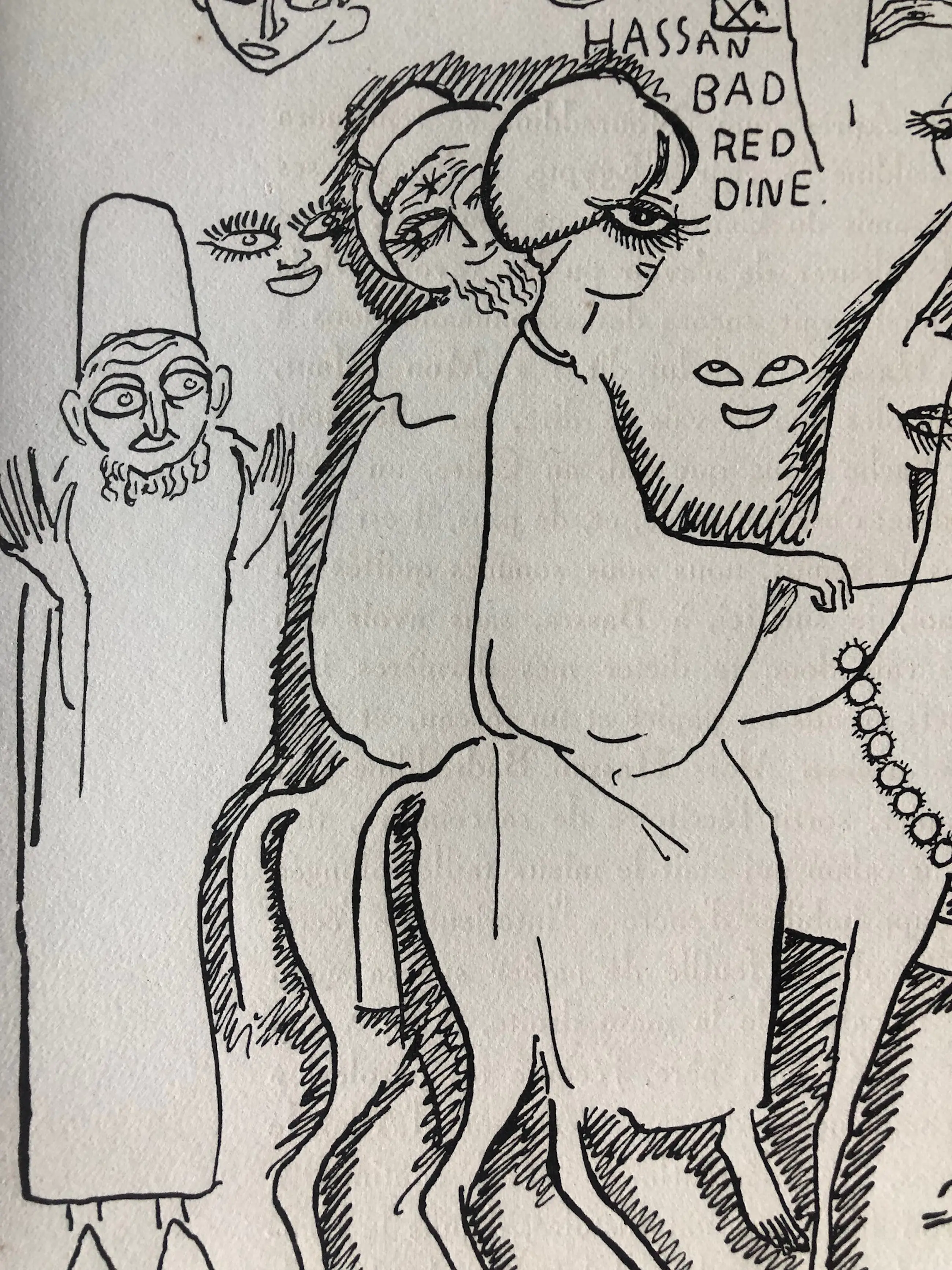 Litho's in zwart/wit uit het boek duizend-en-een-nacht Hassan-Badreddine-el-Bass Raoui 1918.