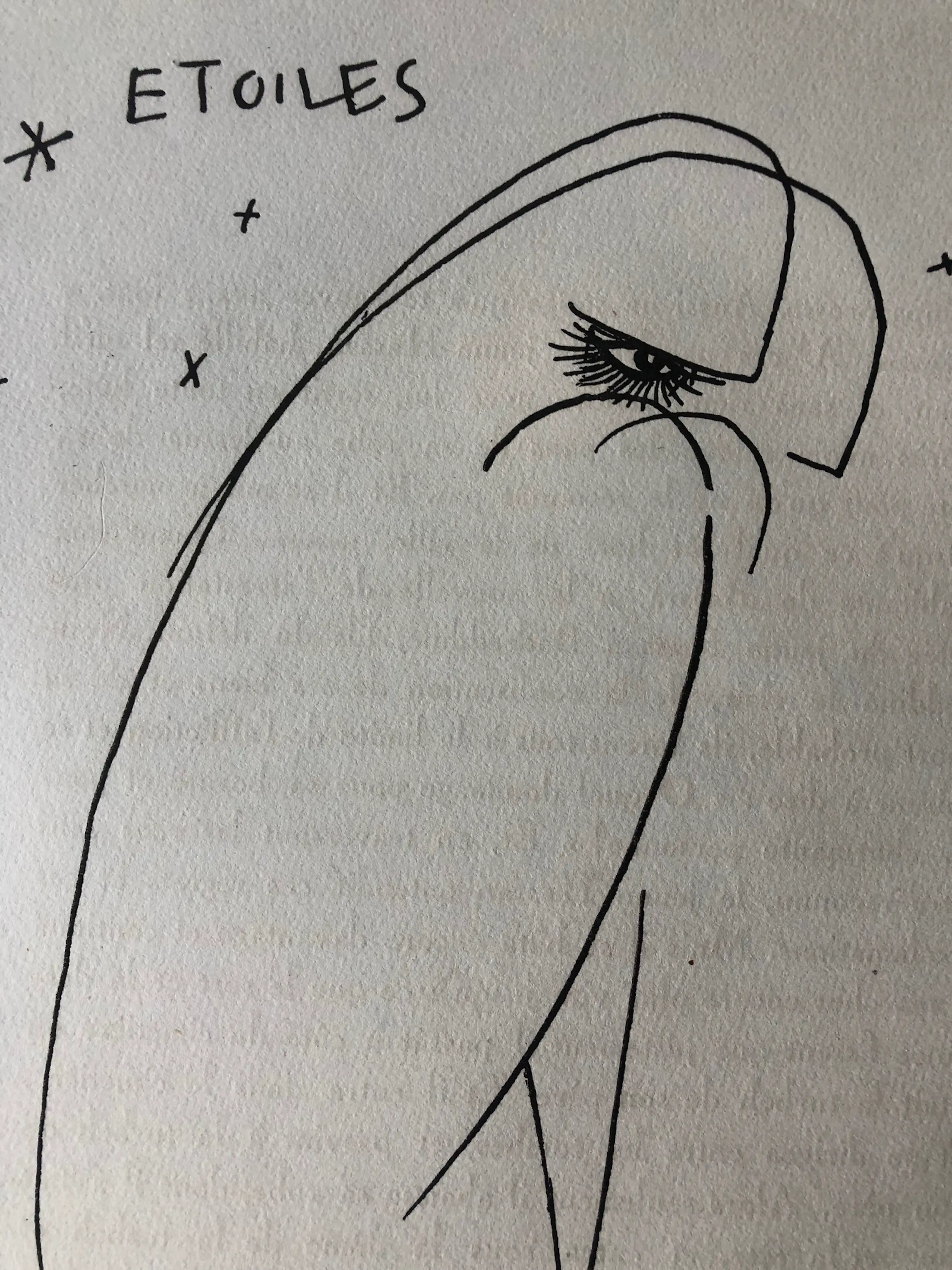 In het boek zijn 65 pagina grote tekeningen waaronder deze. De letters van de achterzijde zijn licht zichtbaar bij de tekening.