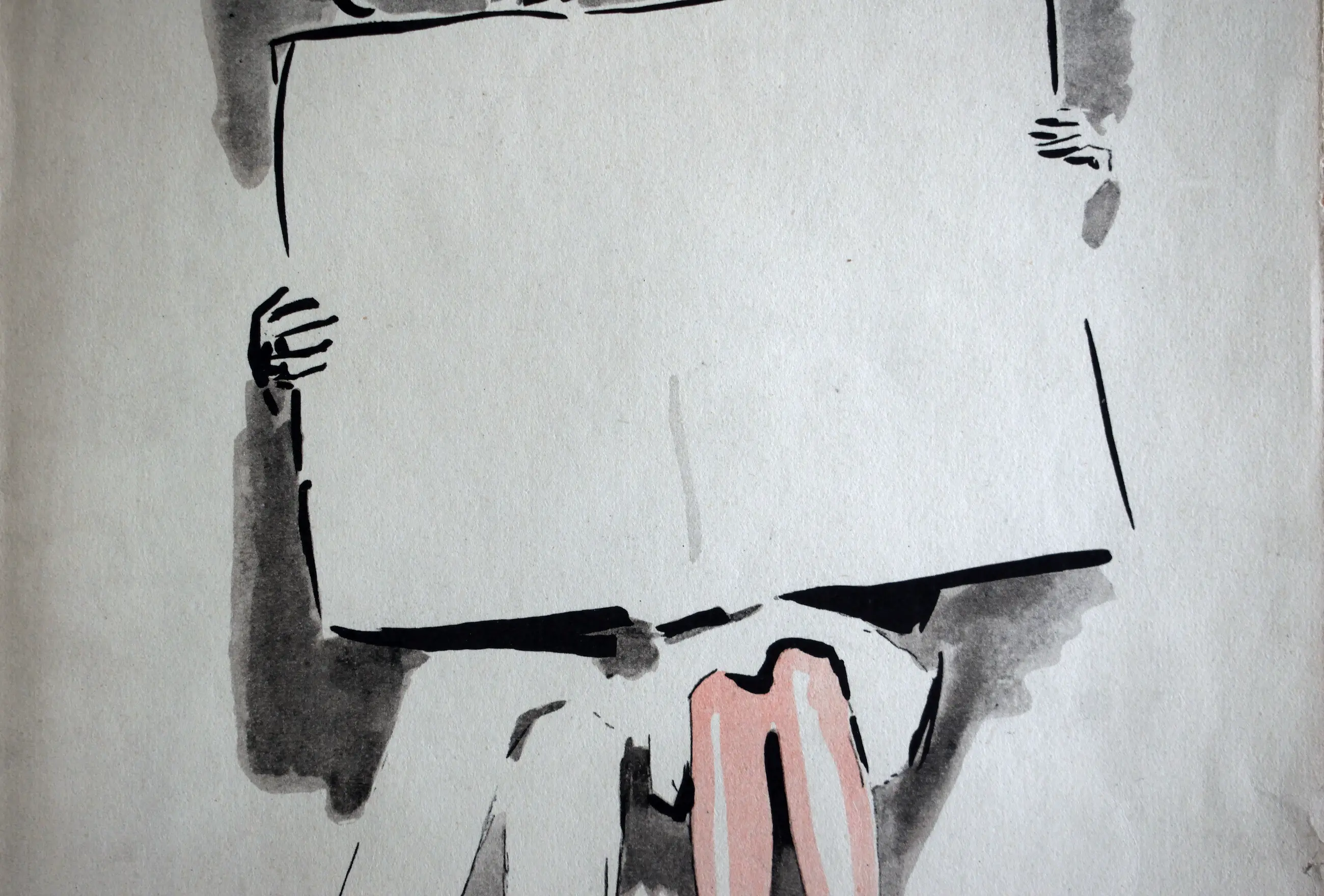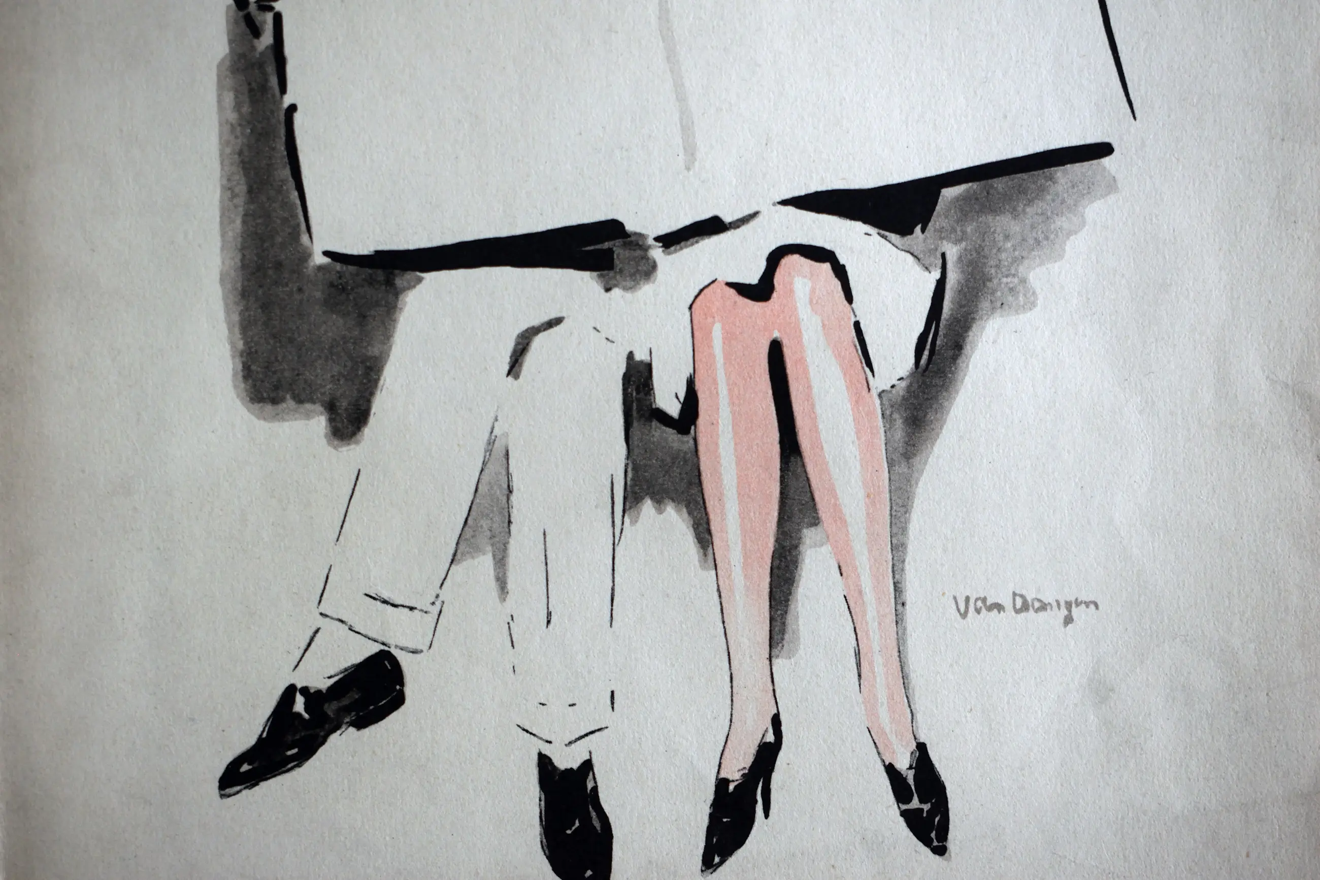 Man en vrouw verborgen achter een krant, maar het gaat om de schoenen.