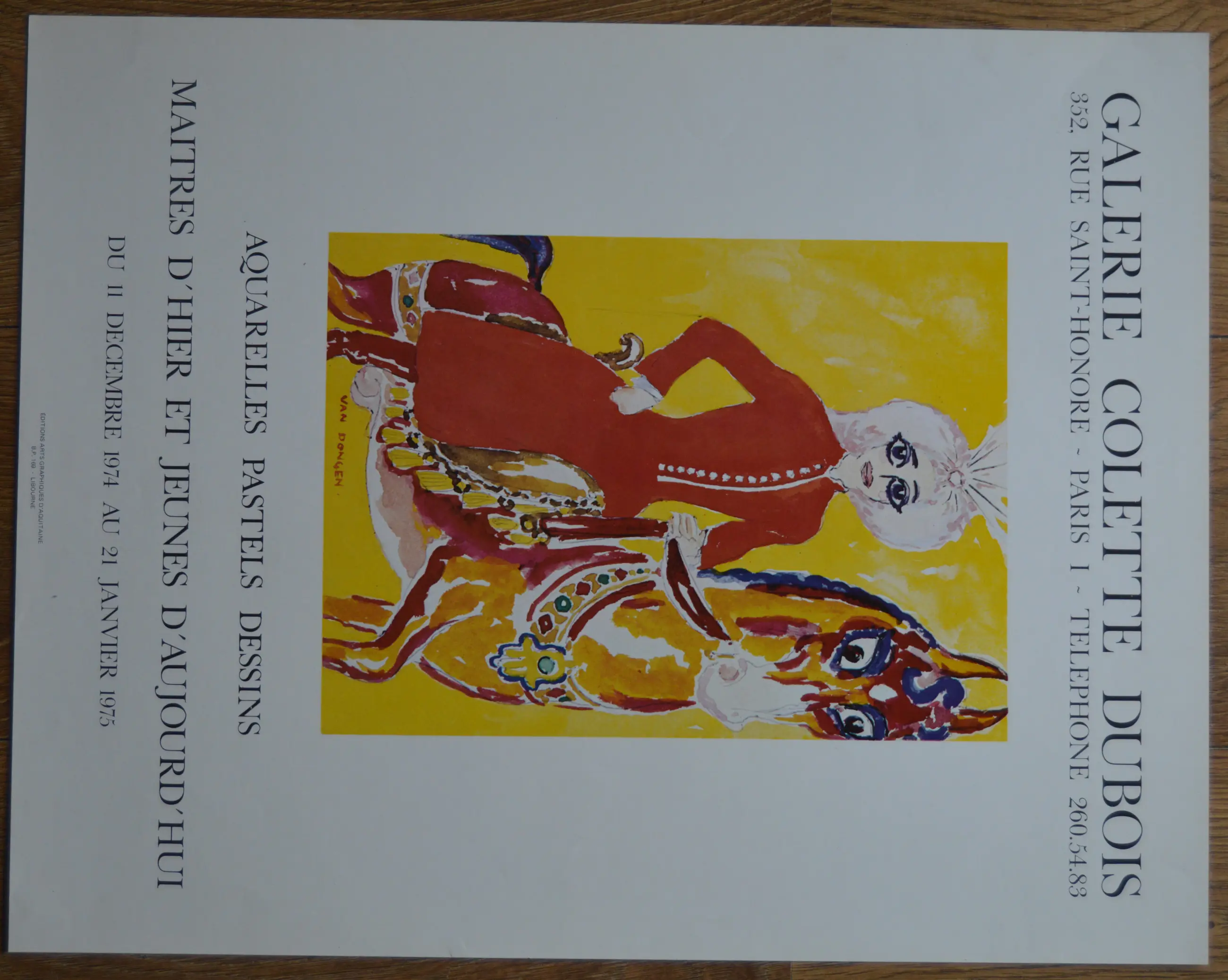 Aankondiging voor de tentoonstelling van werken van Kees van Dongen. Galerie Colette Dubois. Van 11 december 1974 tot 21 januari 1075. Éditions arts graphiques d'aquitaine Libourne.