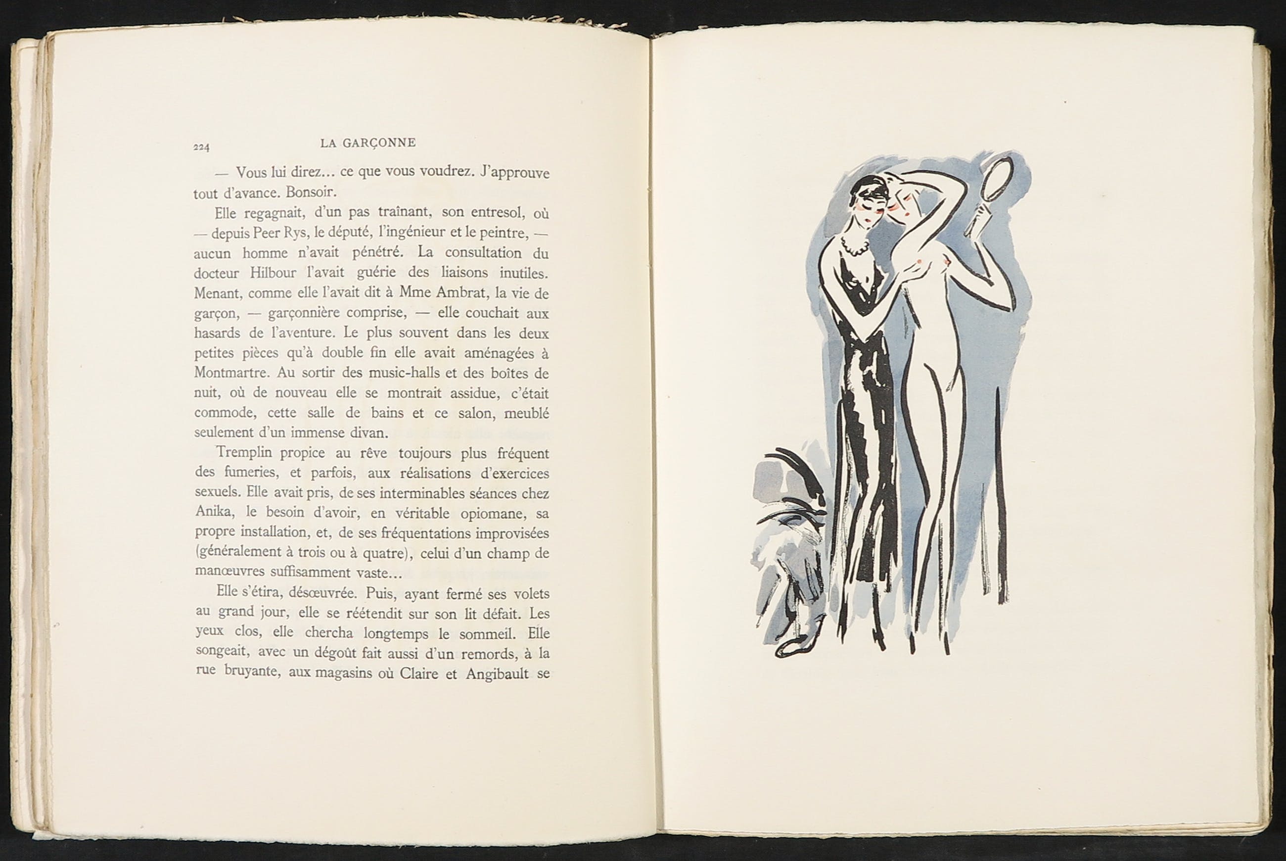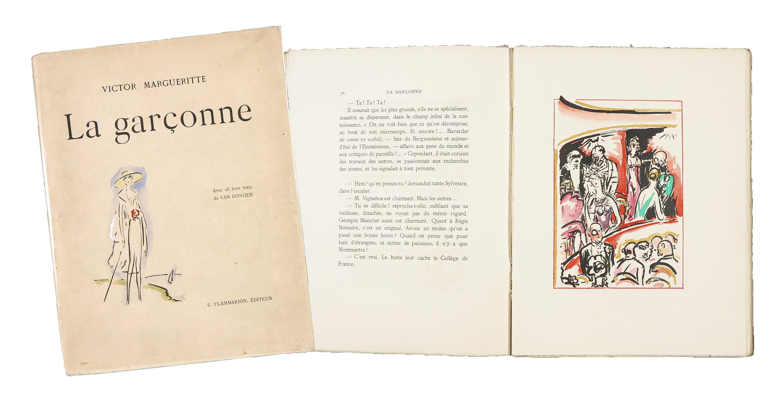 Bijzondere en zeldzame uitgave van 'La garçonne' uit 1925. Geschreven door Victor Margueritte en geïllustreerd met 28 pochoirs door Kees van Dongen.