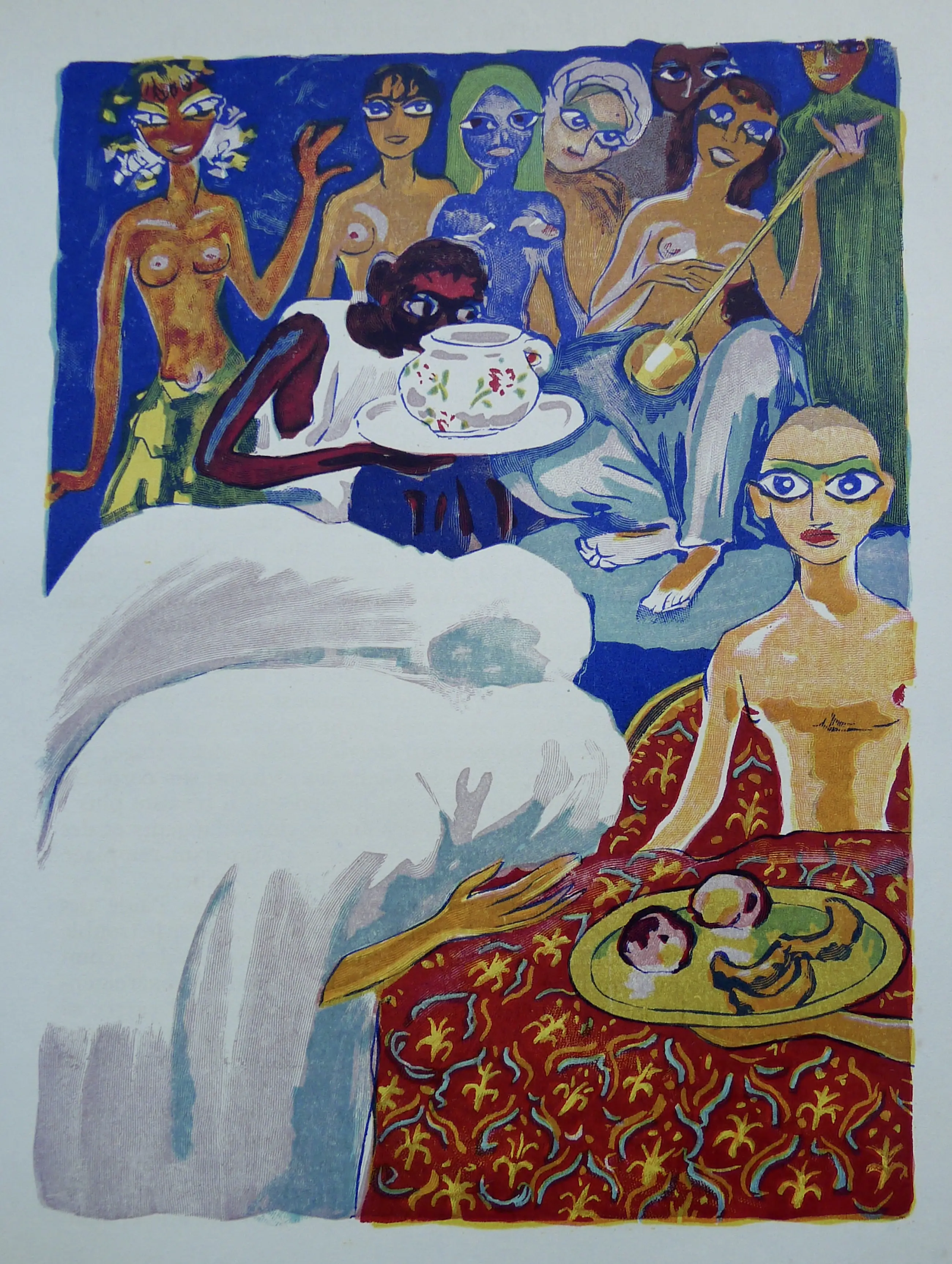 Op bladzijde 673 van deel 2 van het uit drie delen bestaande boek : 'Le livre des mille nuits et une nuit'( foto 4 en bladzijde 169 van 'Juffermans') staat deze kleurrijke gravure. Zie foto's