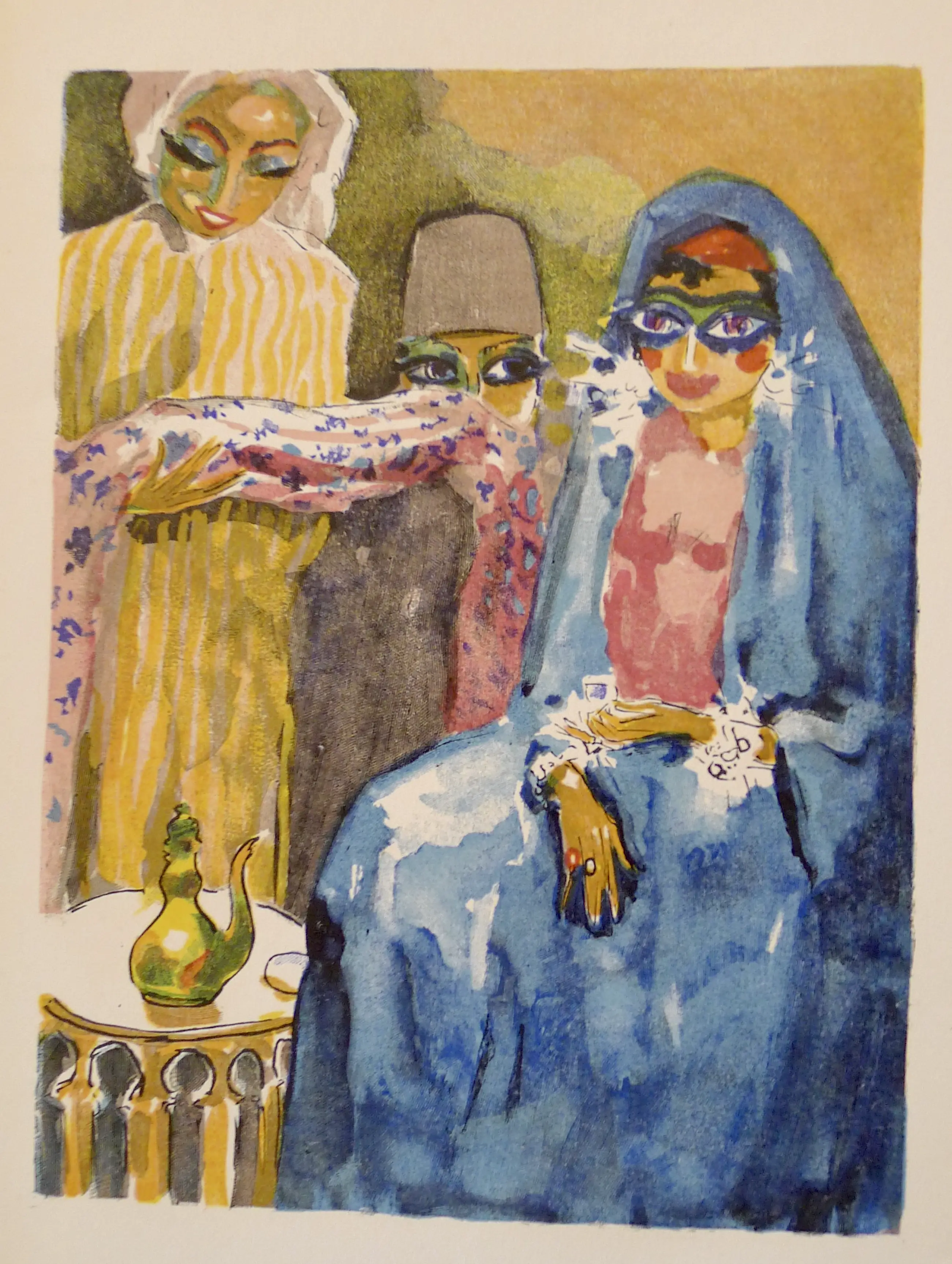 Kijkt u rustig naar de drie bijgeleverde foto's dan ziet u hoe fraai de kleuren zijn en ahw driedimensionaal eruit springen. Afkomstig uit : 'Le livre des mille nuits et une nuit' ,1955, 3 delen. Deel 1 bladzijde 193(Foto 4).