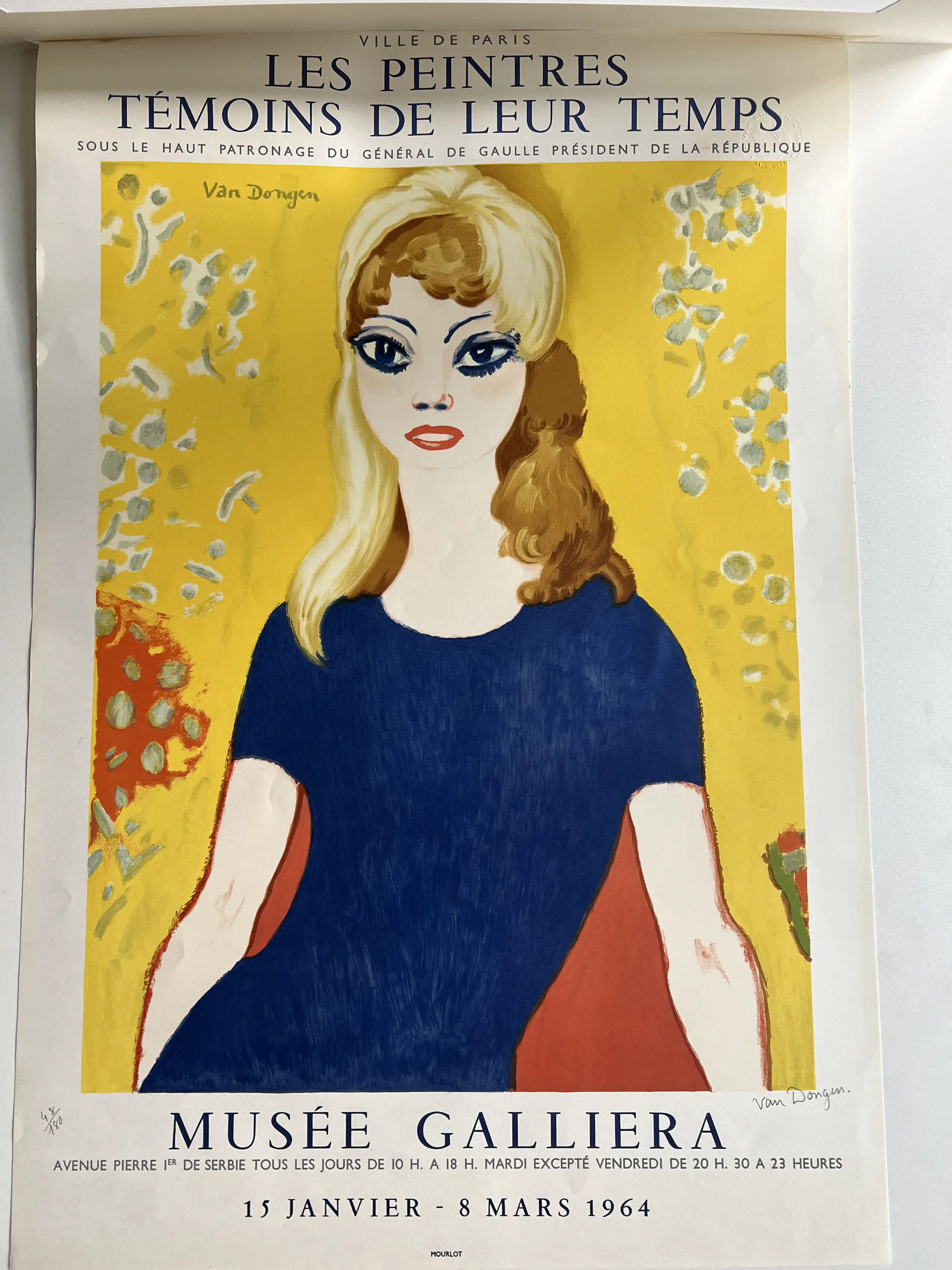Lithografisch affiche voor Musée Galliera, Paris gemaakt in 1964. Gedrukt door Mourlot. Naast de normale editie bestaat er een editie van 180 exemplaren gesigneerd en genummerd in potlood. Dit is een exemplaar uit die betreffende editie, nummer 48 van 180. Afgebeeld in Juffermans 'Kees van Dongen - Het Complete Grafische Werk' pag. 175.