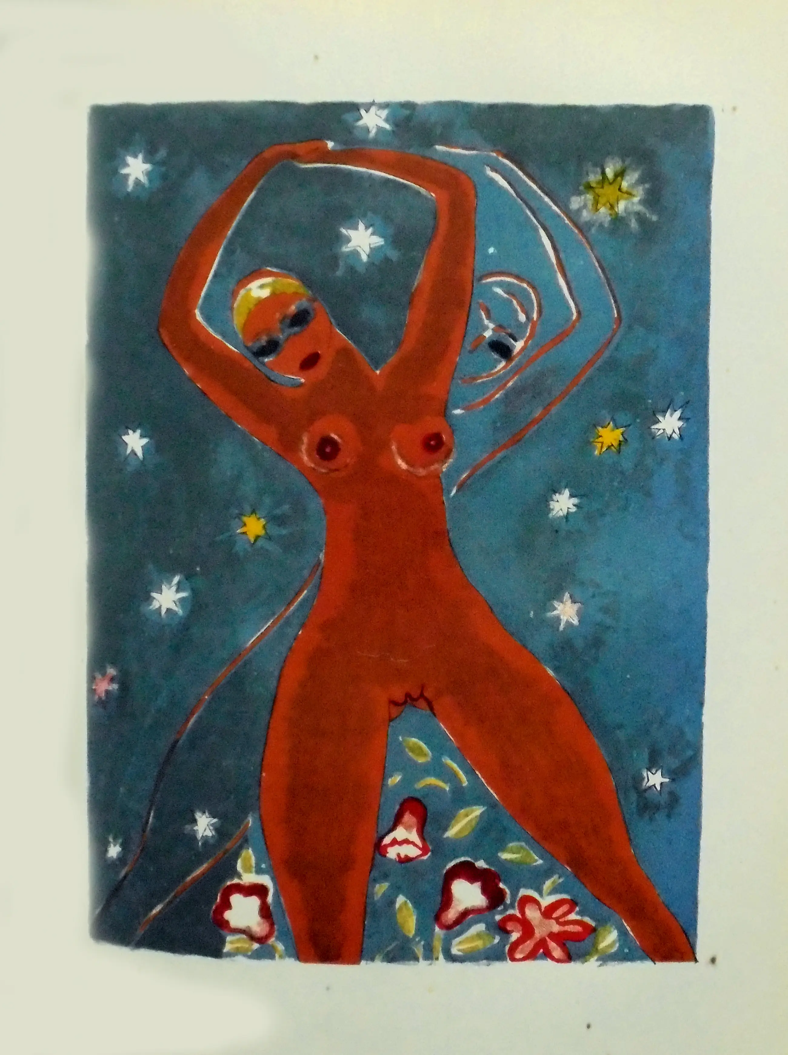 Houtgravure " La Nuit " naar een aquarel van Kees van Dongen