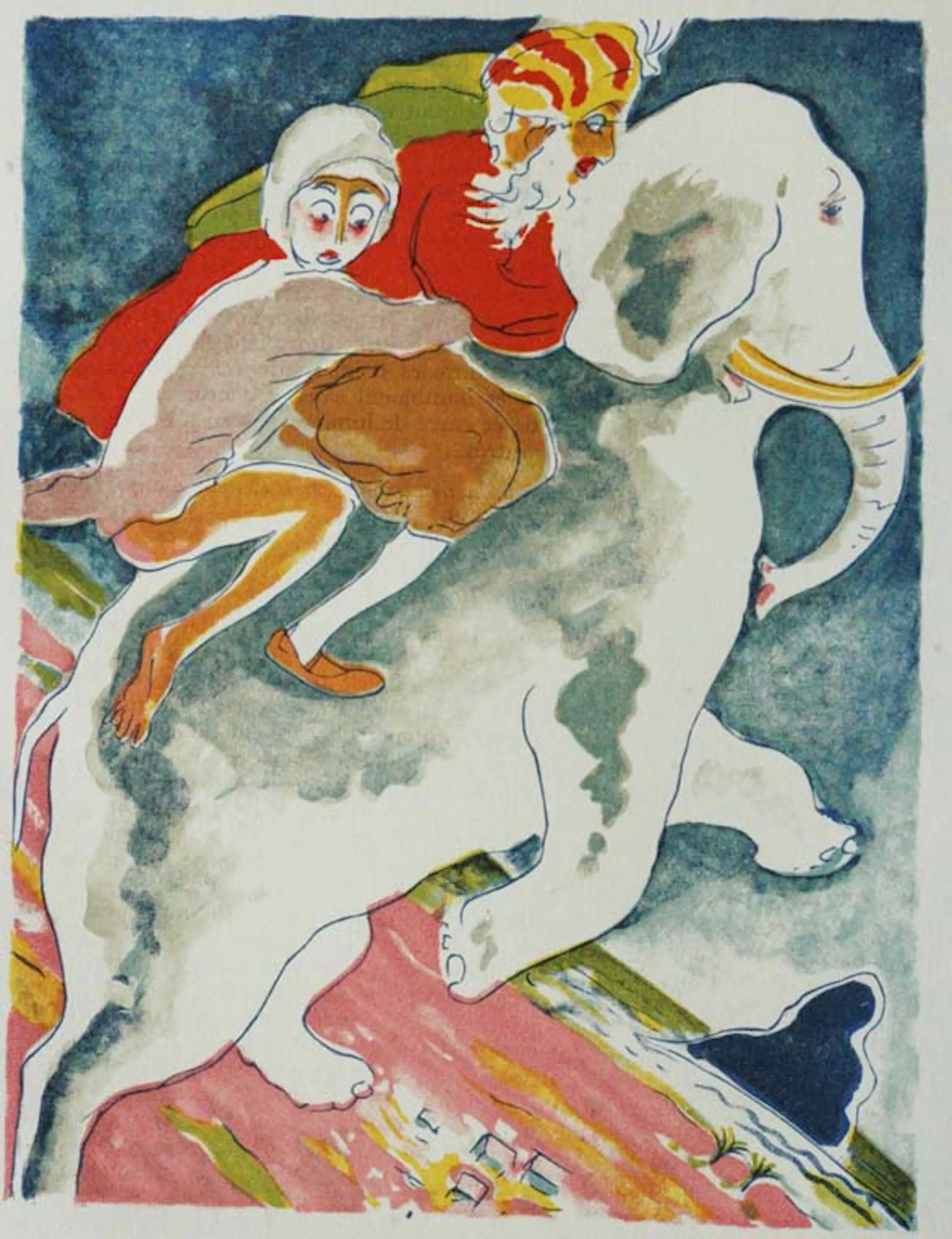 Houtgravure " L`éléphant blanc " naar een aquarel van Kees van Dongen