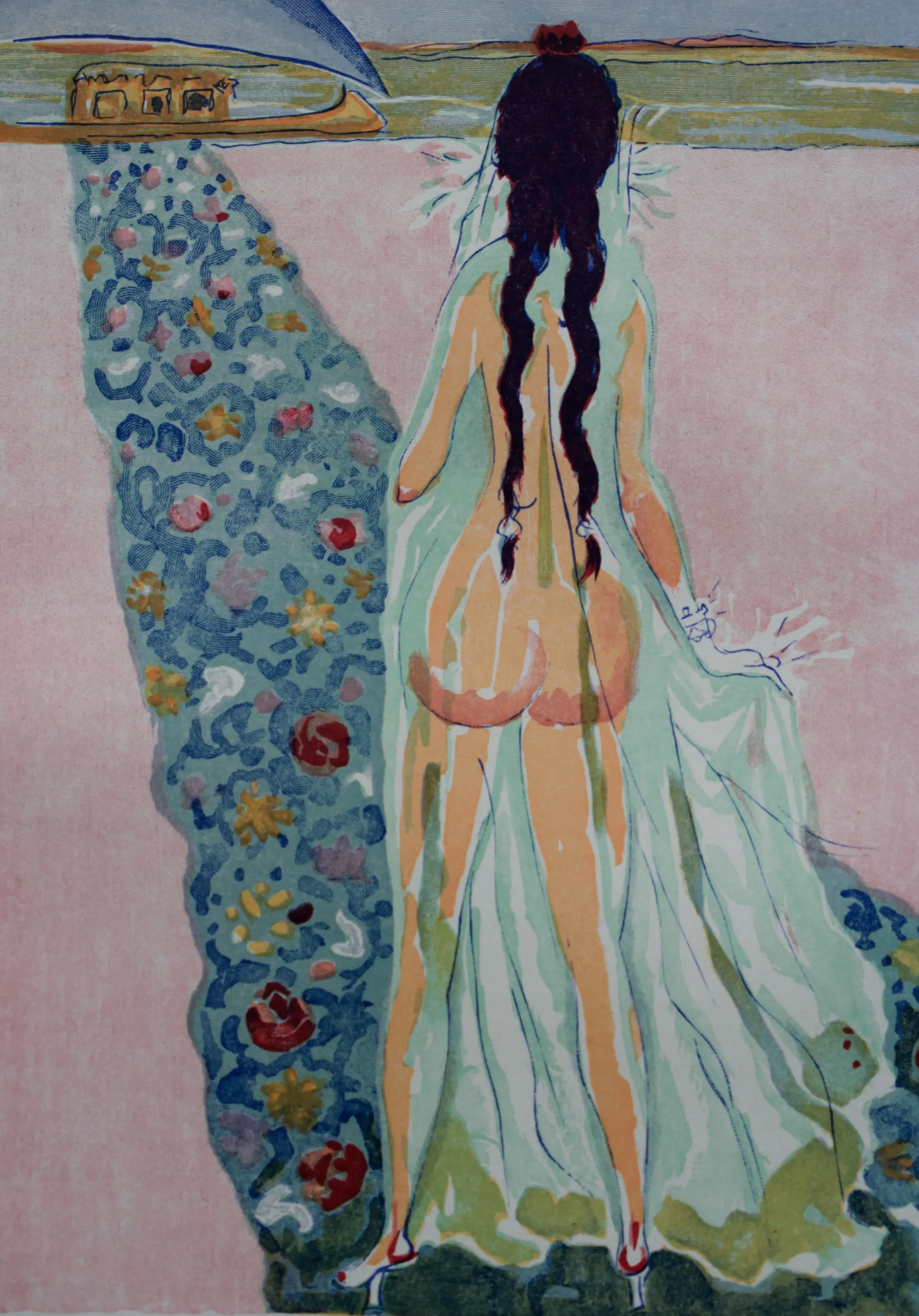 Illustratie uit 1001 nacht, edition Gaullimard, 1955 (Les livres des mille nuits et une nuit Tome III , blz. 617).