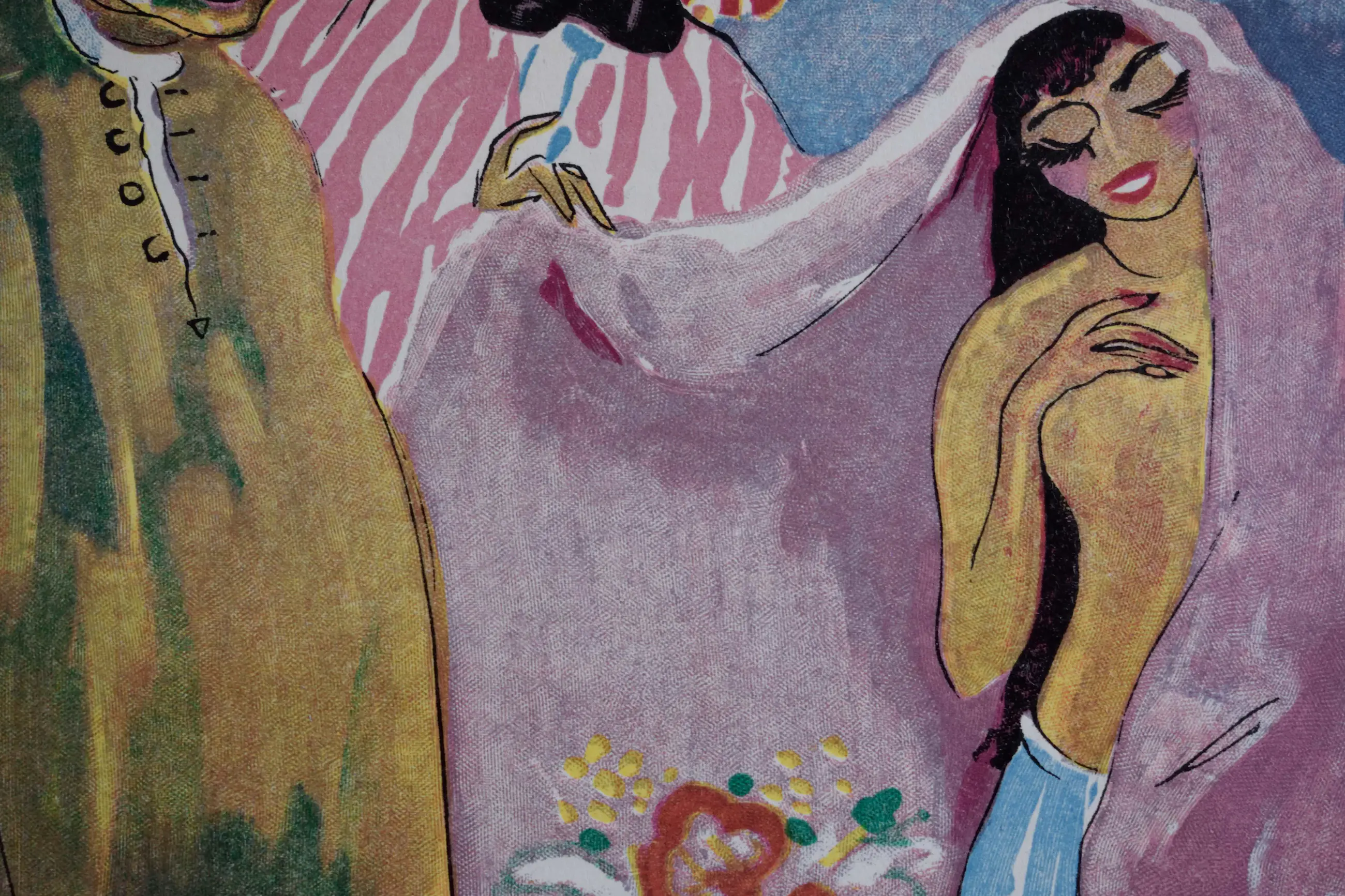 Houtgravure " La belle endormie " naar een aquarel van Kees van Dongen