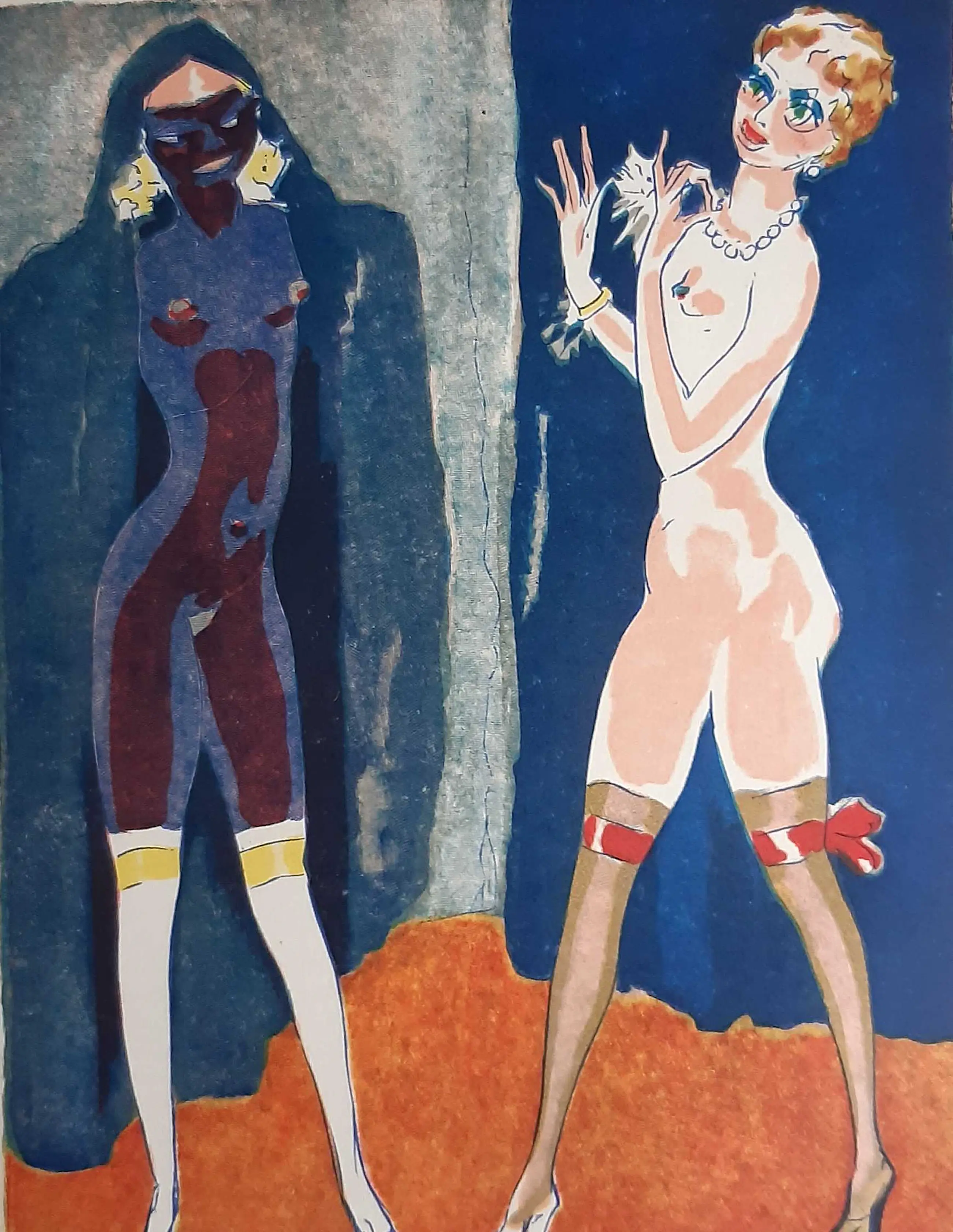Houtgravure " La Comparaison " naar een aquarel van Kees van Dongen