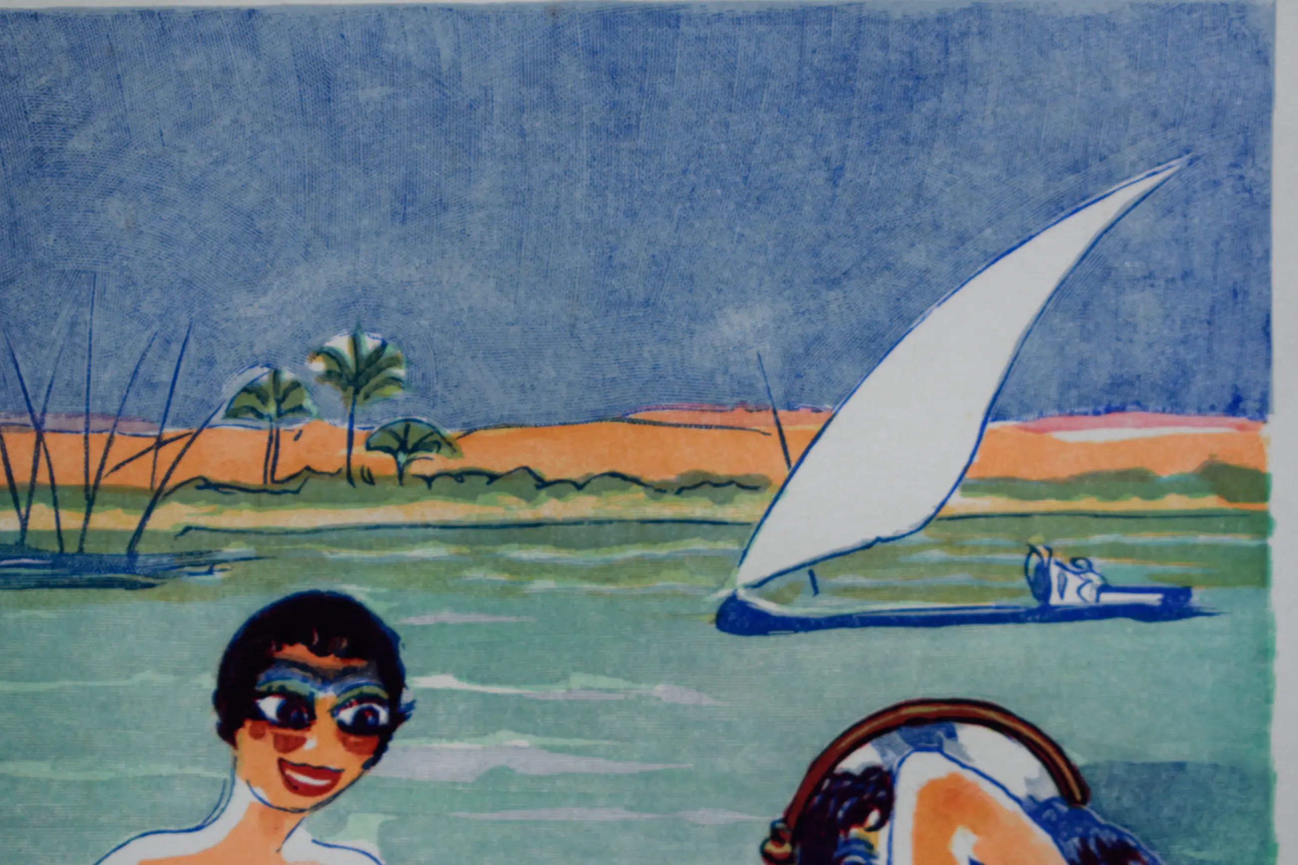 Houtgravure " La Terrasse sur le Nil " naar een aquarel van Kees van Dongen (1877-1968).