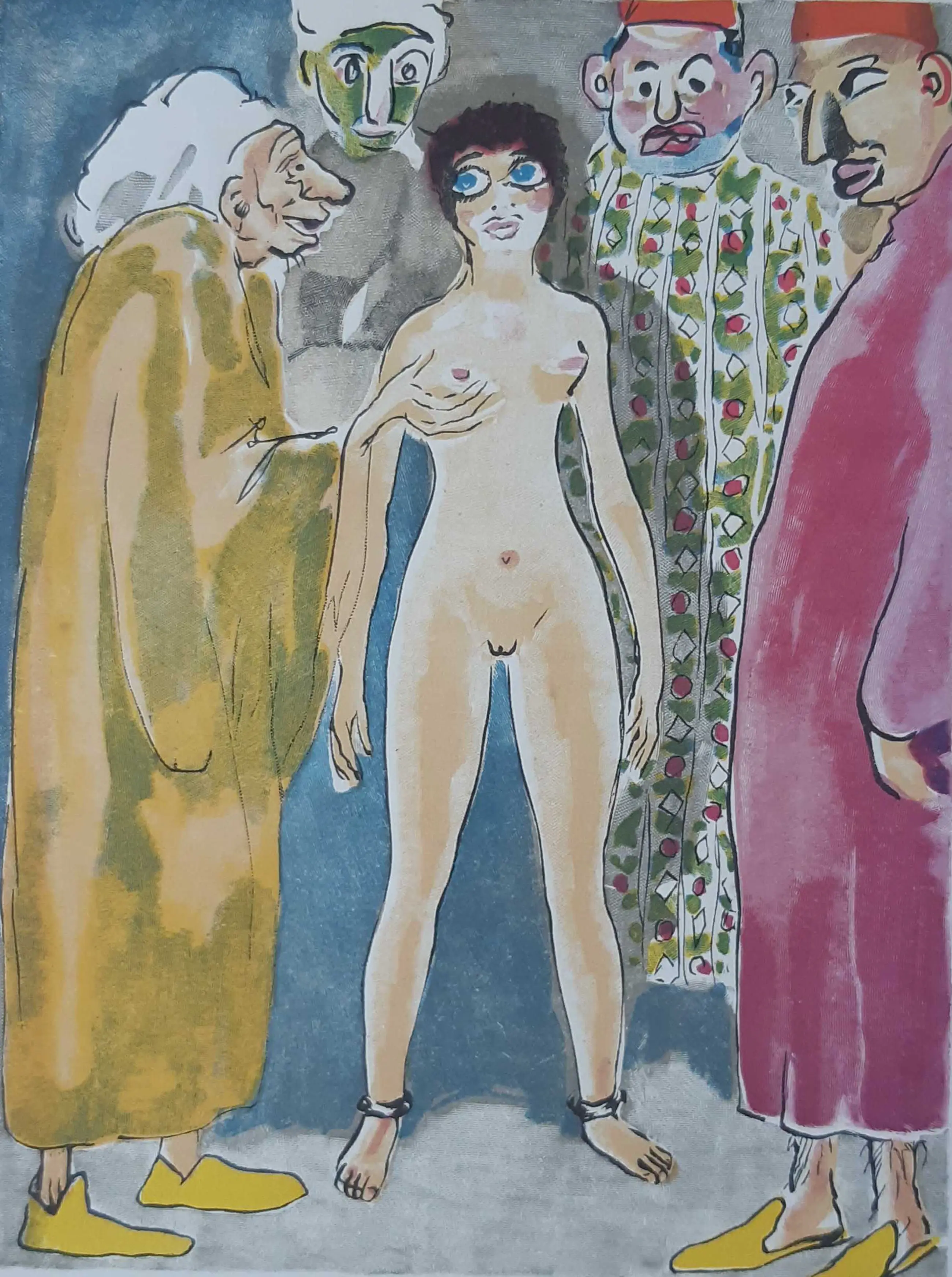 Illustratie uit 1001 nacht, edition Gaullimard, 1955 (Le livre des Mille Nuits et une nuit - Tome I , blz.737).