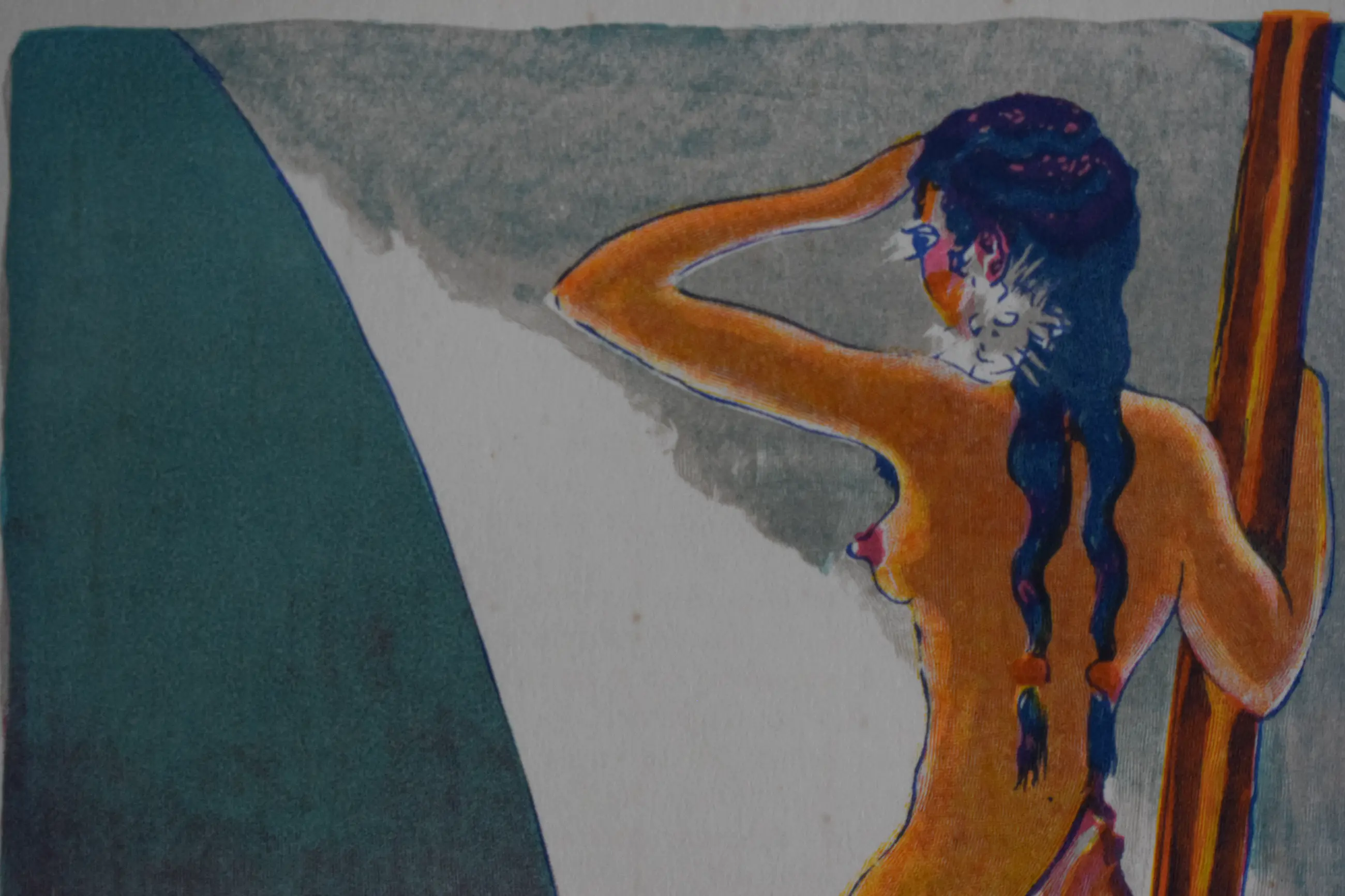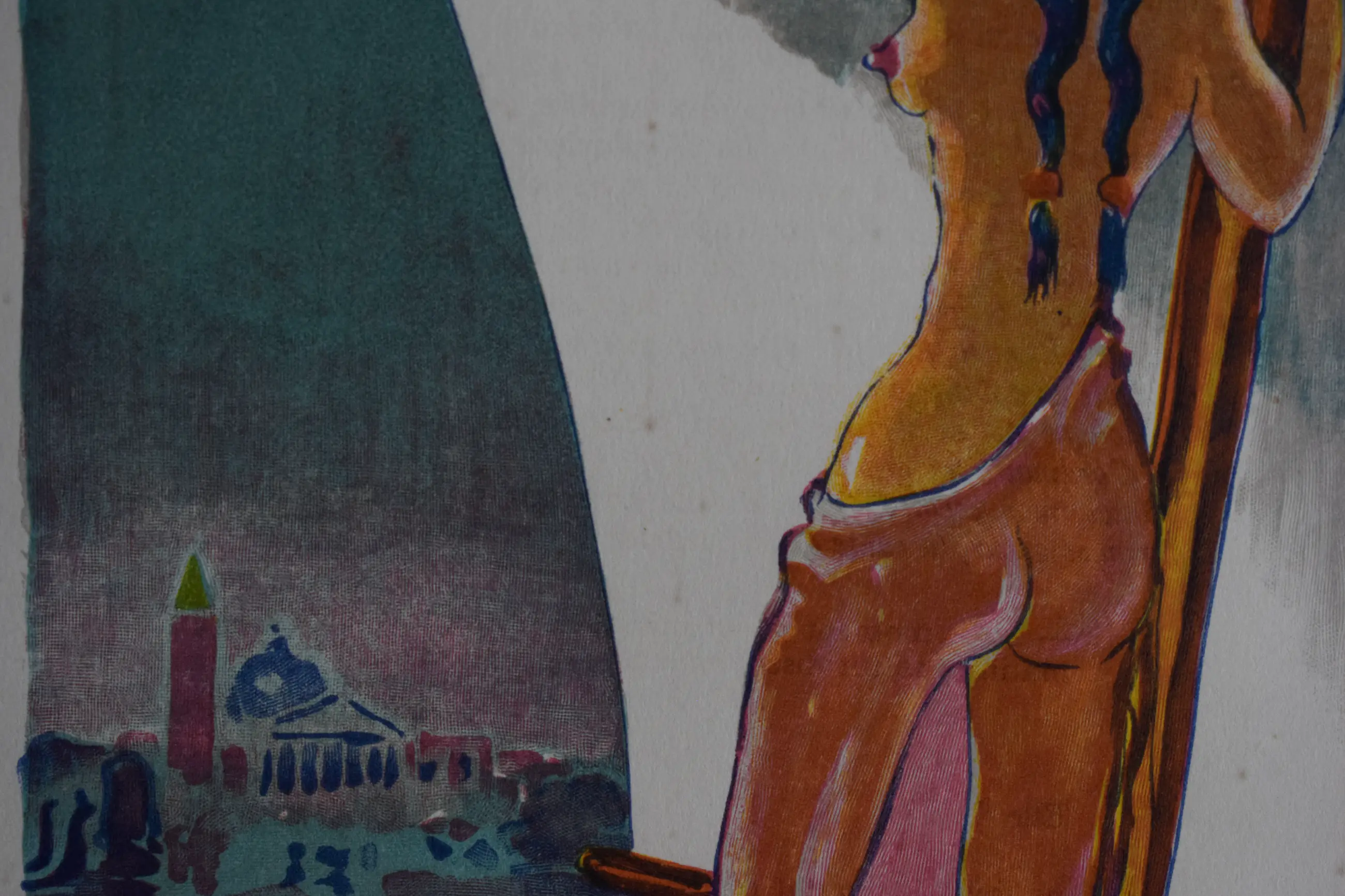 Houtgravure " Rose-dans-le-calice chez le roi Derbas " naar een aquarel van Kees van Dongen
