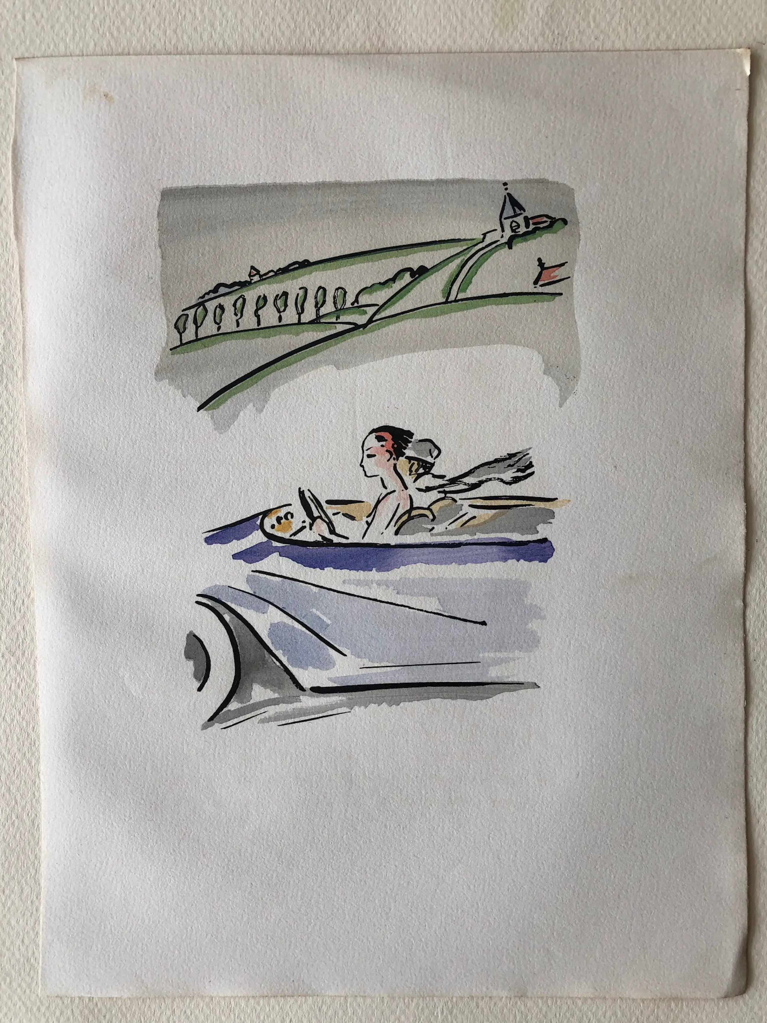 Op van arches papier. Linksboven een klein vlekje, bijna niet zichtbaar. Afmeting pochoir 18,5 * 24,5 cm.