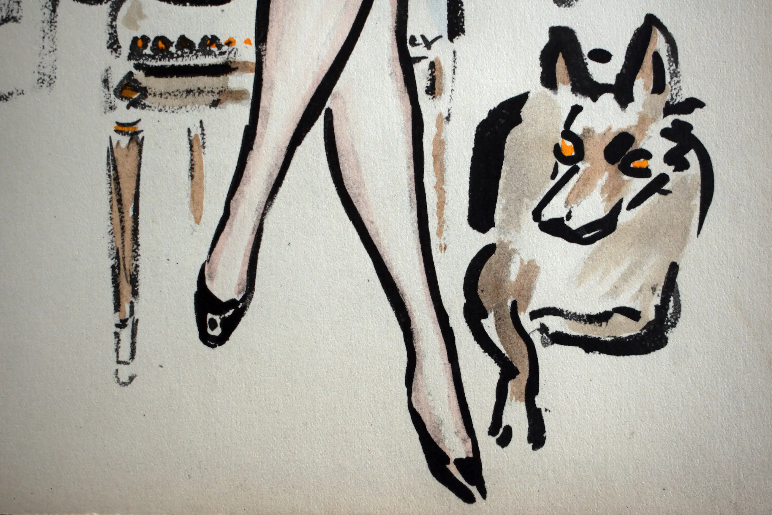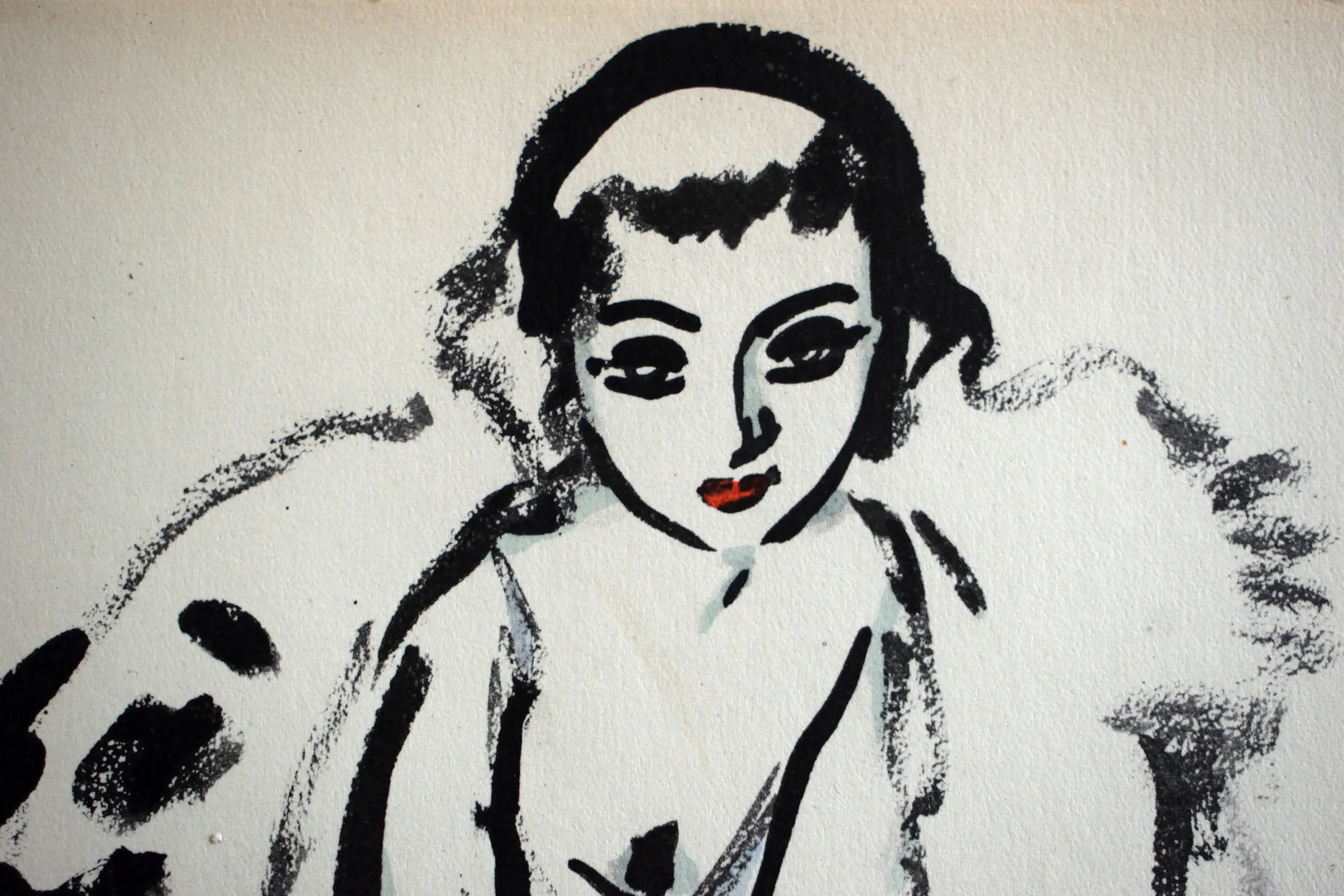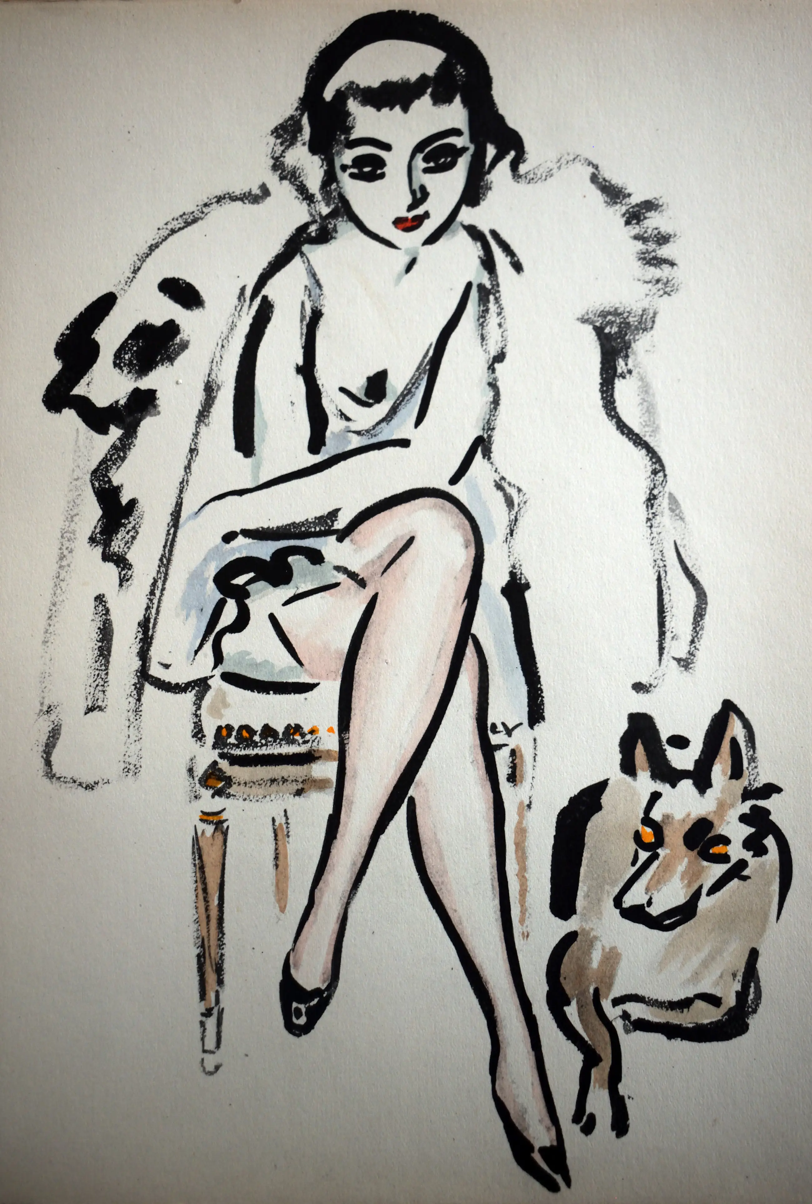 Voor het boek "Van Dongen" van Ed. des Courières maakte Kees van Dongen 8 lithografieën die met de hand werden ingekleurd. Een jonge dame met haar herdershond trouw wakend naast haar stoel.