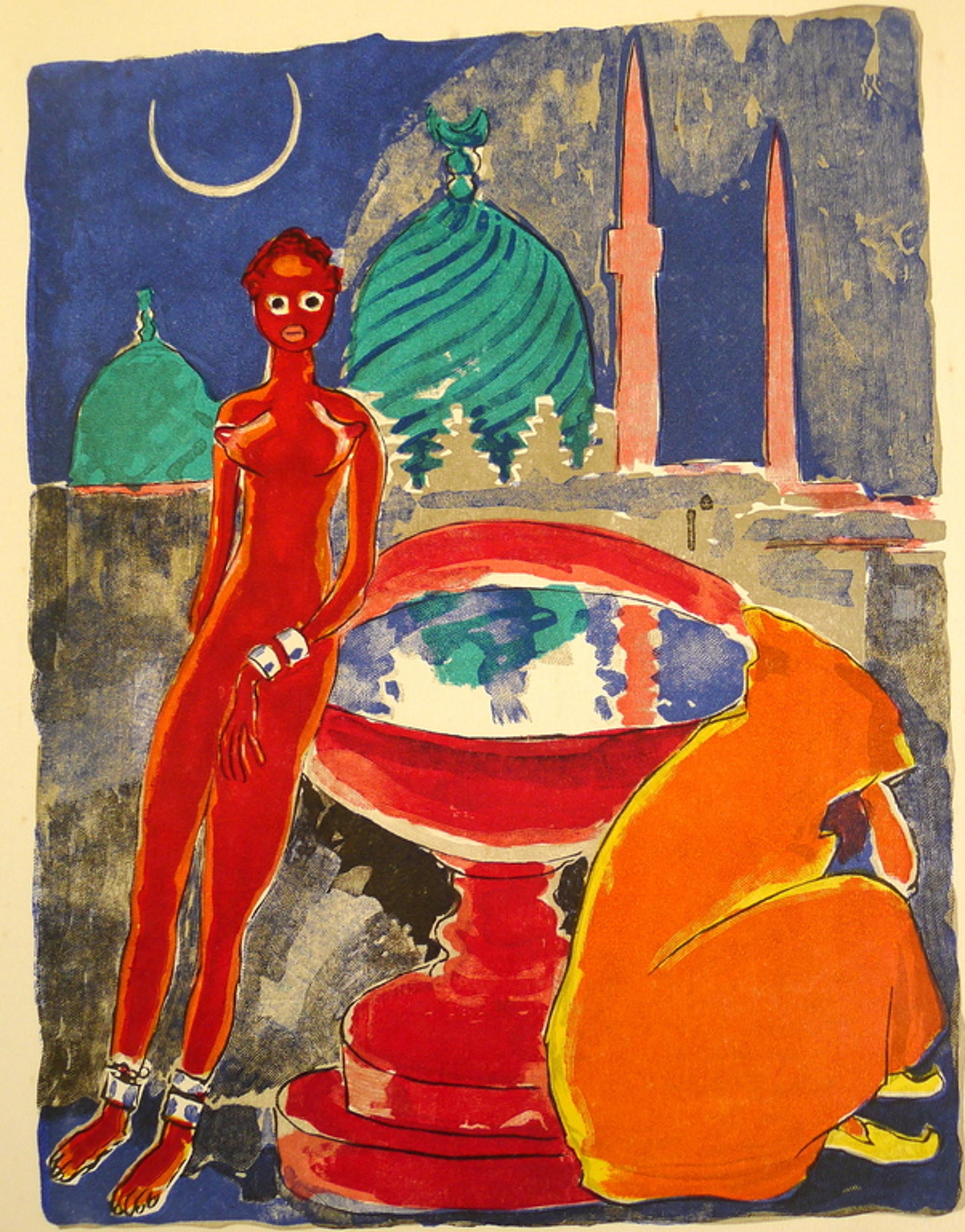 Liefst 6 houtgravures naar aquarellen uit het boek " Le livre des mille nuits et une nuit " door Gallimard in 1955 uitgegeven en door Kees van Dongen met 80 hutgravures geïllustreerd(foto 6 )