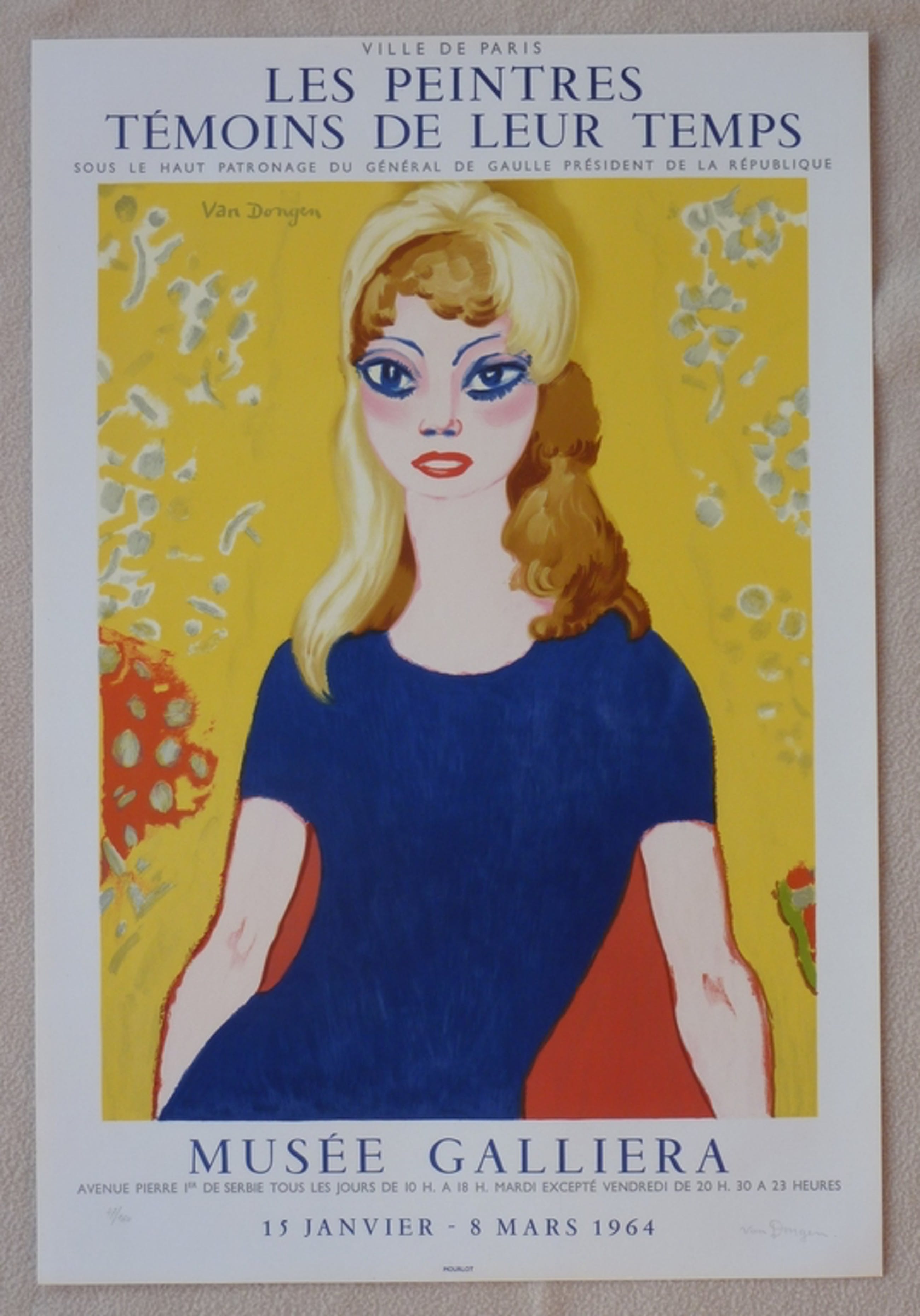 Collectors item van het beroemde lithografische affiche voor Musée Galliera, Paris, uit 1964 waarvoor Van Dongen zijn favoriete model Brigitte Bardot gebruikte.