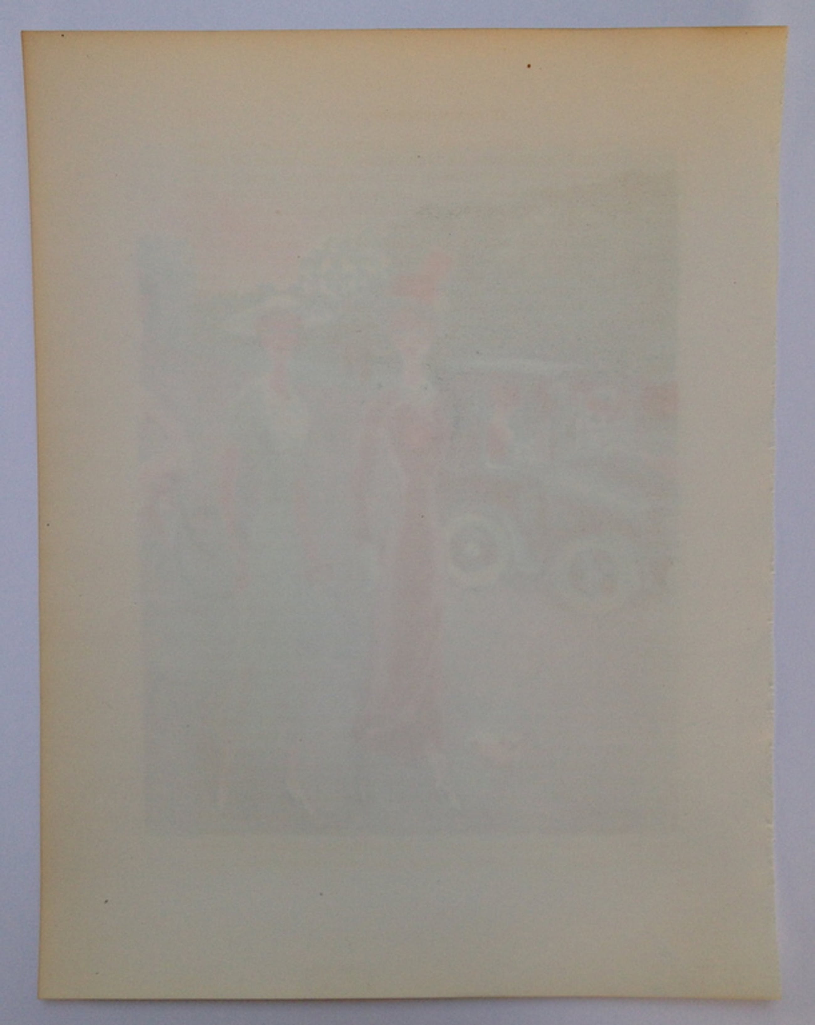 Betreft een uitzonderlijk fraaie druk uit 1947 waarbij de inkten door het papier zijn gelopen.