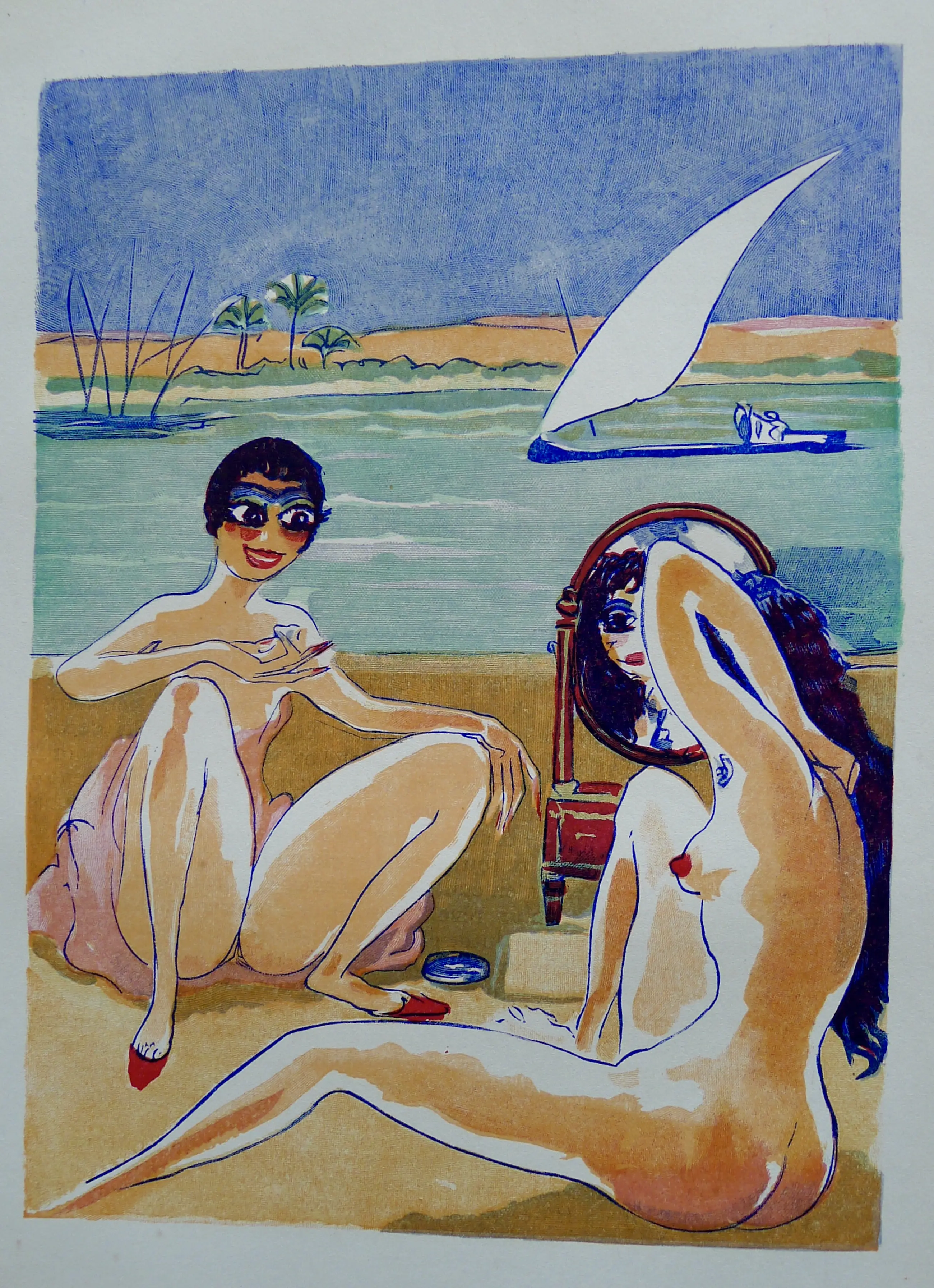 Op bladzijde 617 van deel drie van het boek : 'Le livre des mille nuits et une nuit' (foto 5)van Mardrus,in 1955 door Gallimard te Parijs uitgegeven,staat deze fraaie gravure.
