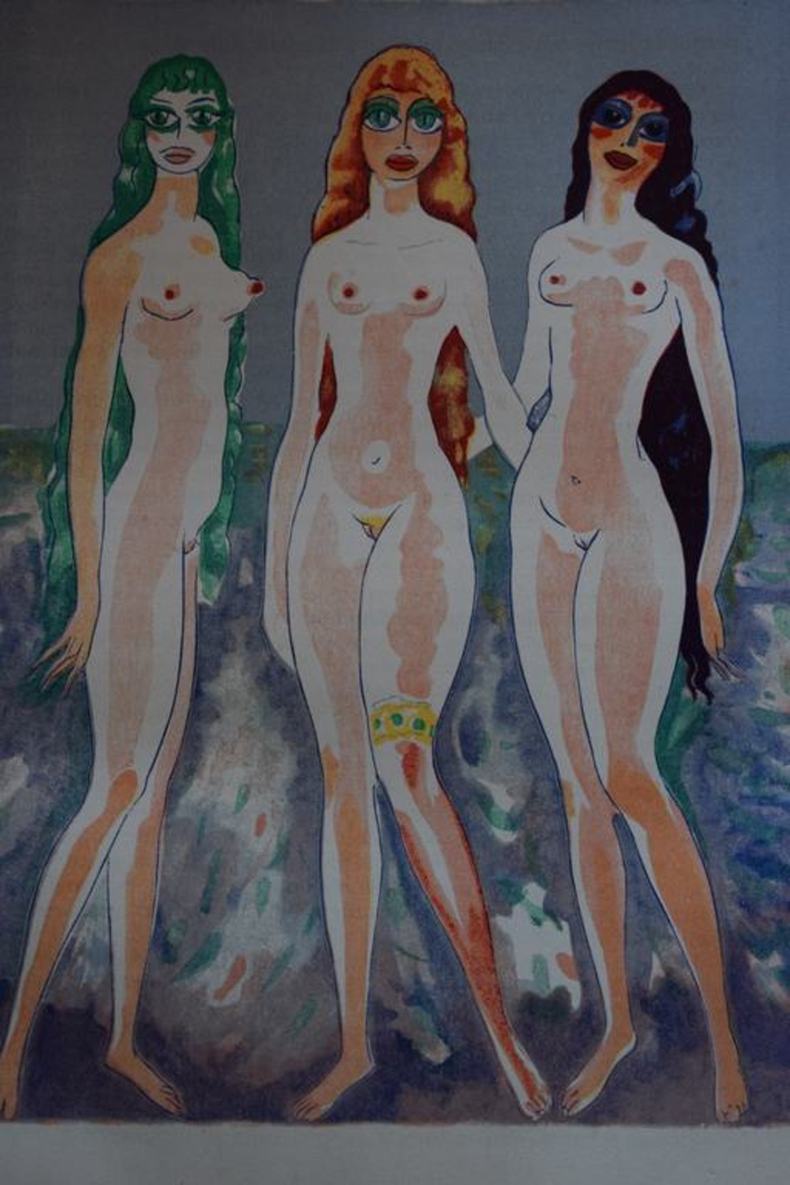 Houtgravure "Les femmes columbus" naar een aquarel van Kees van Dongen (1877-1968).