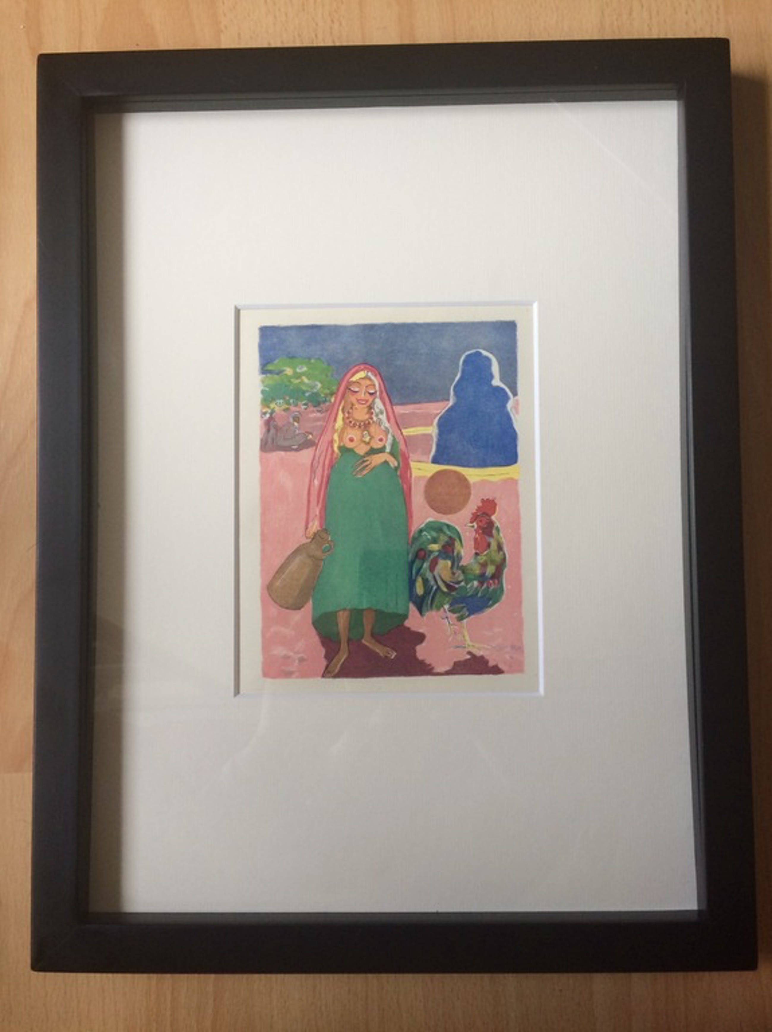 De houtgravure zit in een mooi passe partout en is mooi ingelijst (binnenmaat 30x40 cm).