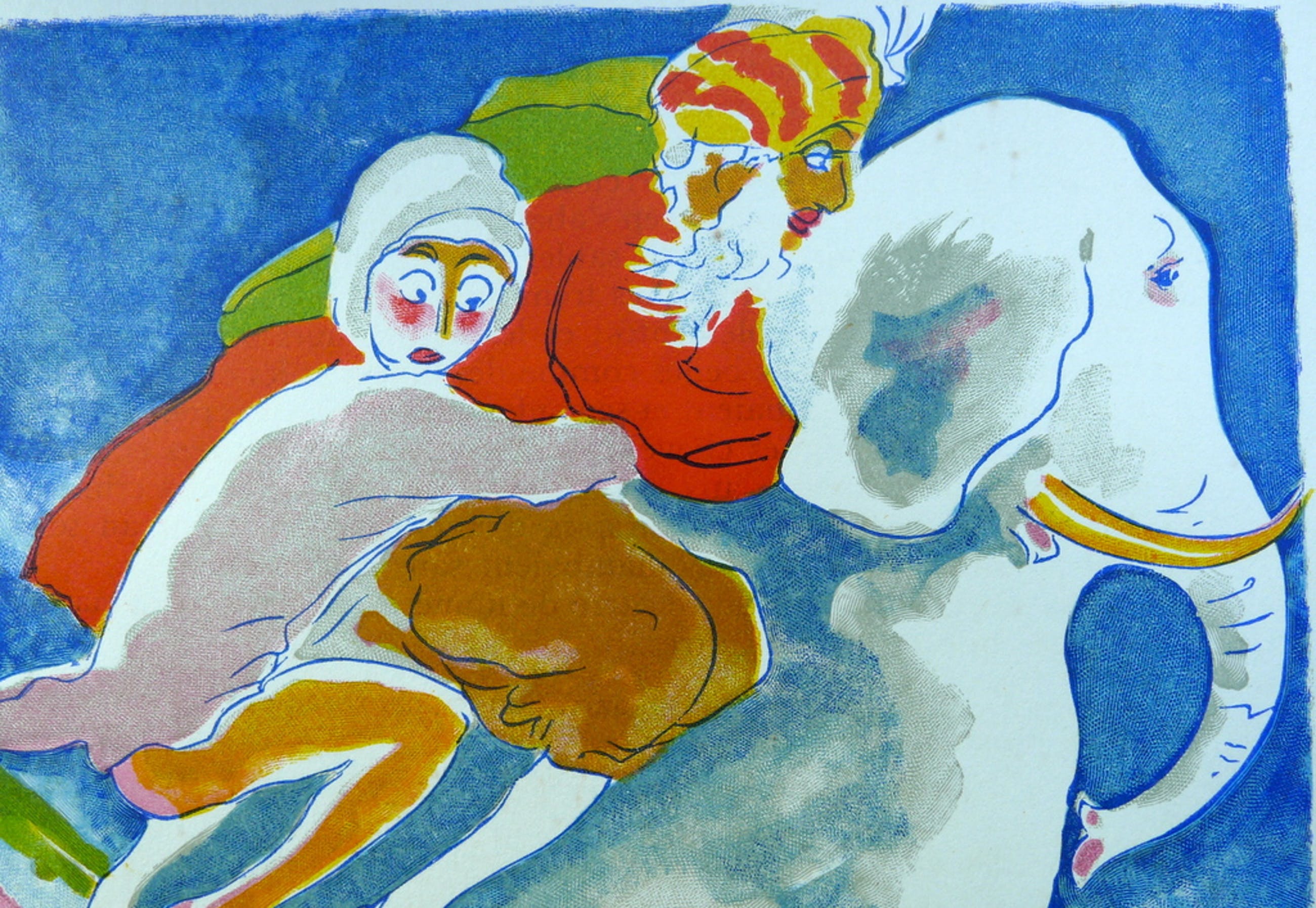 " L'elephant blanc " is de titel van deze sprookjesachtige gravure die op een kinderkamer niet zou misstaan.