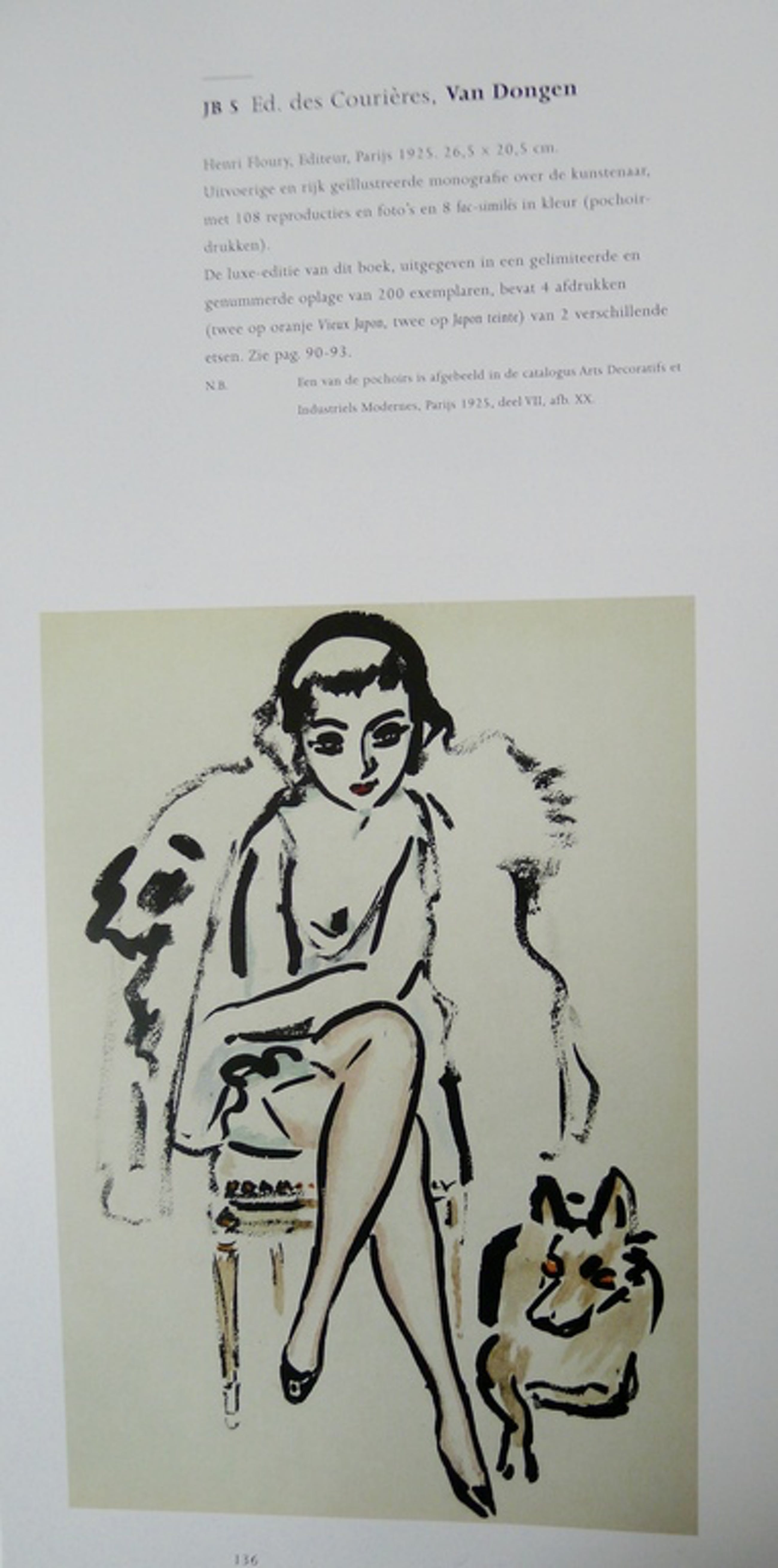 In 1925 verscheen het boek " Van Dongen" geschreven door Edmond des Courieres met hierin 8 pochoirs ( zie eventueel ook mijn andere twee advertenties). Foto 3 is het dekblad dat op deze pochoir aan de rand vast zat en gemakkelijk kon worden verwijderd.