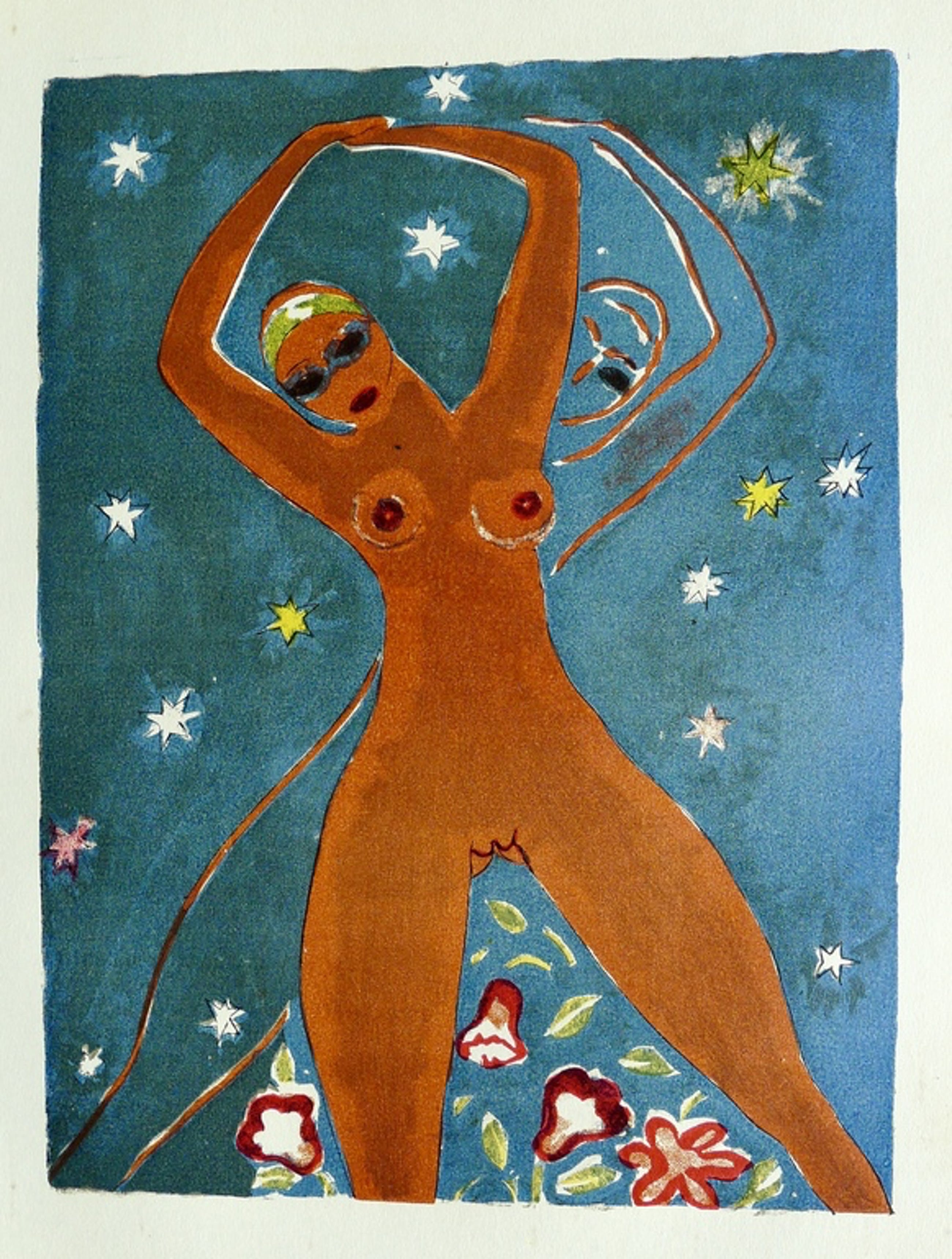 Op bladzijde 313 van deel 1 van het uit drie delen bestaande boek : 'Le livre des mille nuits et une nuit ' (foto 3),in 1955 door Gallimard te Parijs uitgegeven en door Kees van Dongen voorzien van 80 gravures naar aquarellen, vindt u deze (een van de mooiste meest gewilde en dus zeldzame) gravure.