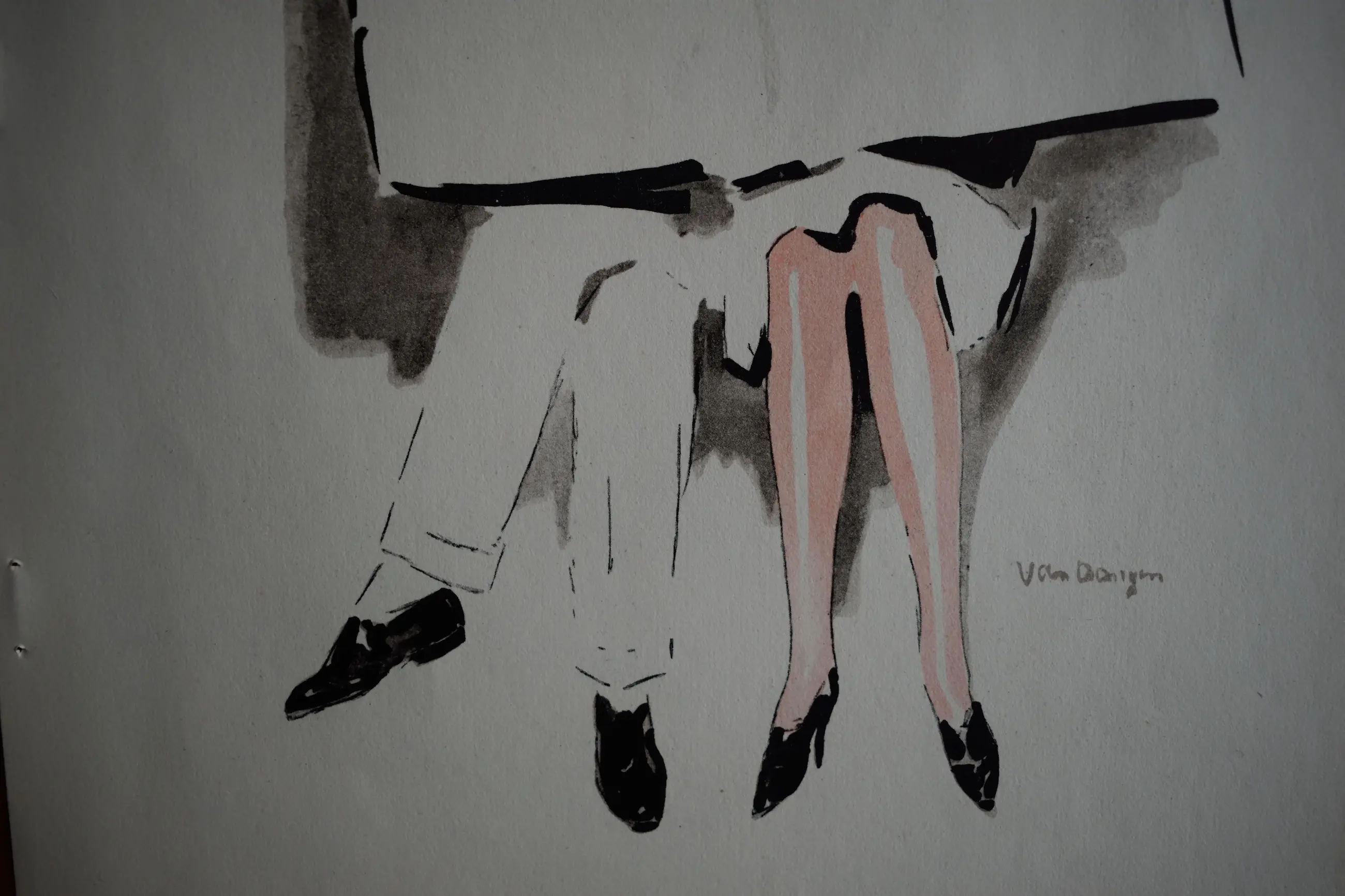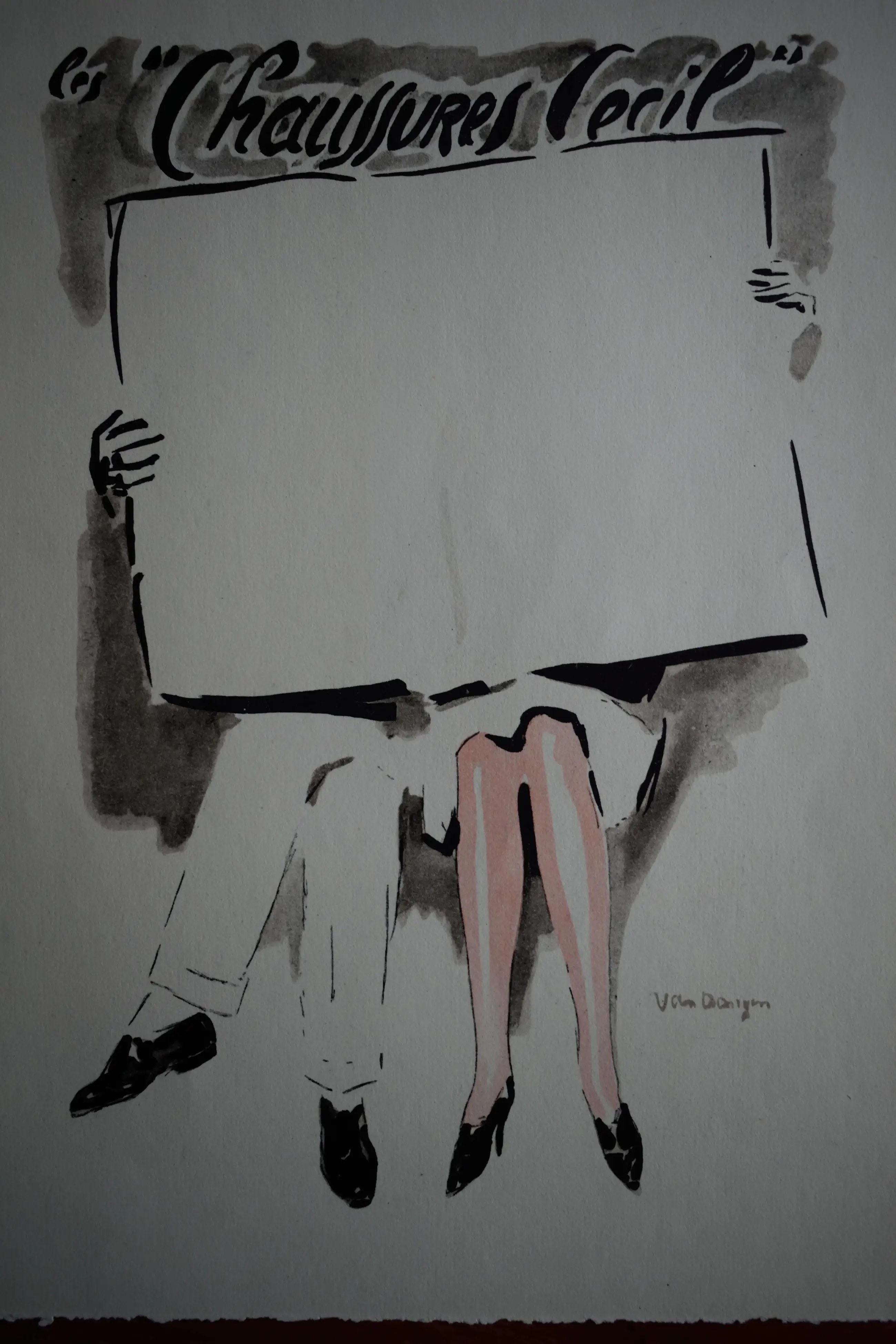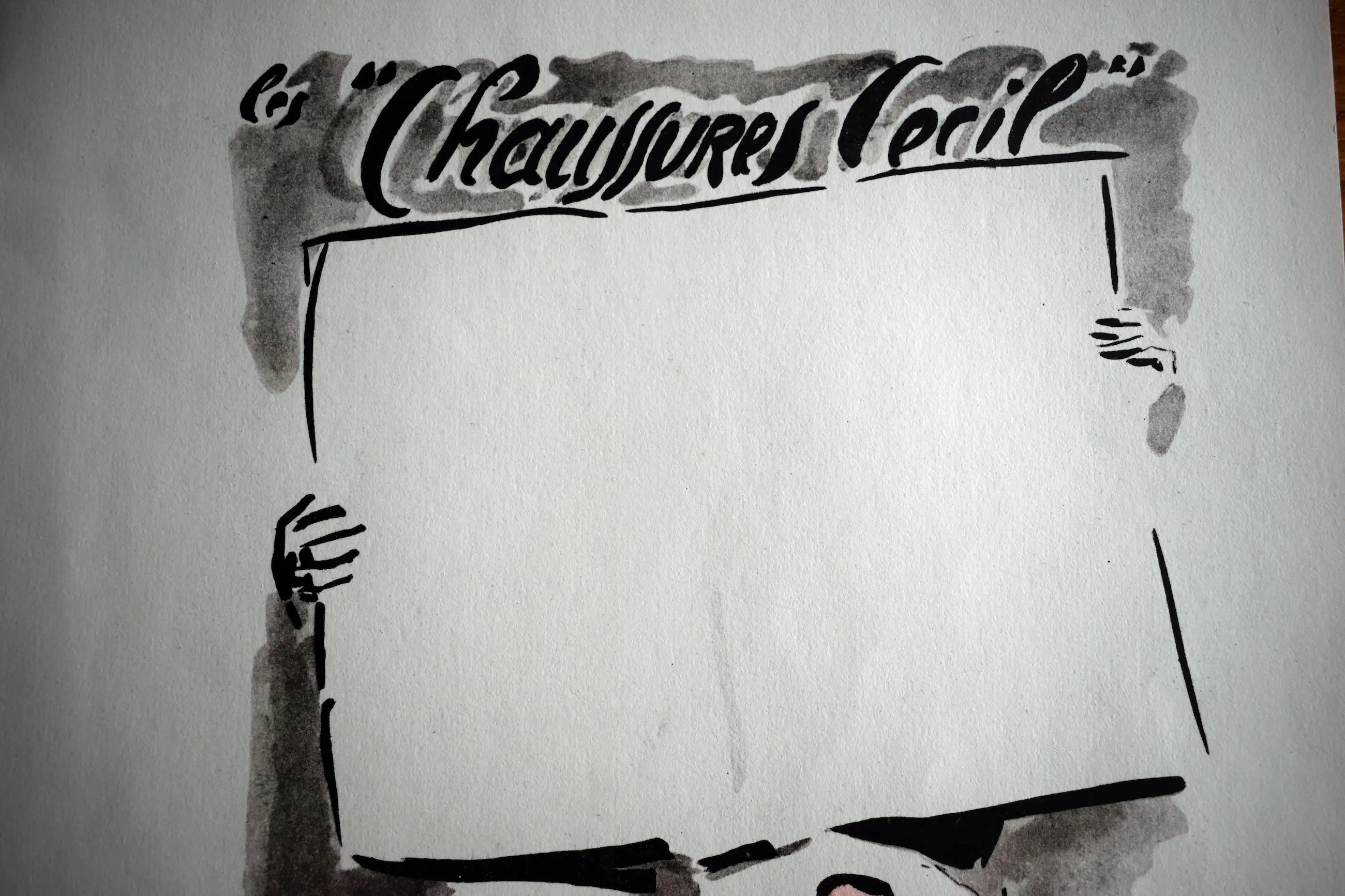 Deze leuke litho is gemaakt voor een reclame campagne van Chaussures Cecil en nog heel lang gebruikt in verschillende vormen. De litho was als bijlage voor het graphisch blad A.M.G. De litho is in de jaren goed bewaard gebleven en de kleuren zijn nog mooi en helder. Aan de zijkant ziet u de gaatjes voor de nietjes van het blad. Dat hoort zo, dus daarom durf ik te zeggen dat deze in een perfecte staat is. We verpakken de litho zeer zorgvuldig en verzenden via aangetekende post.