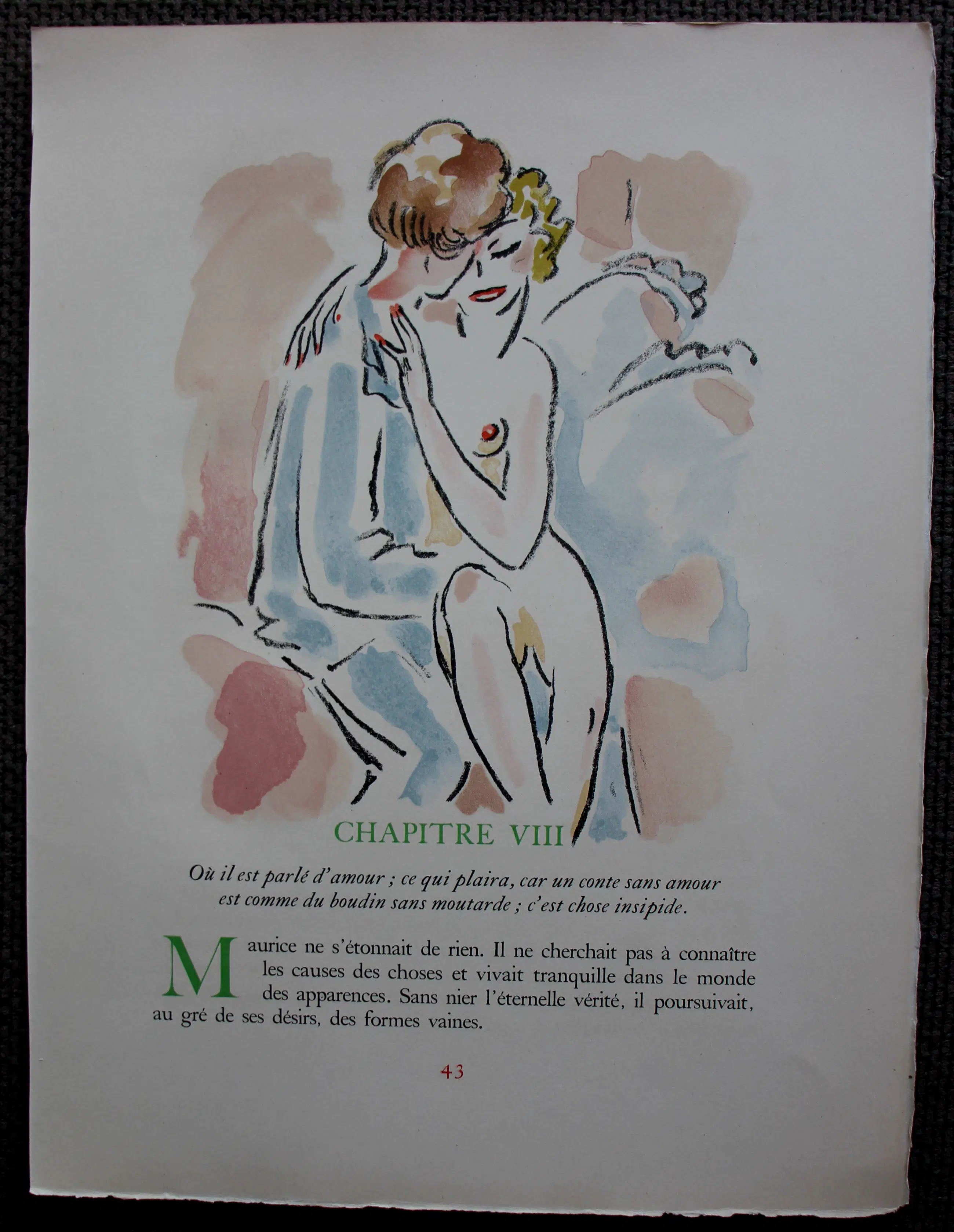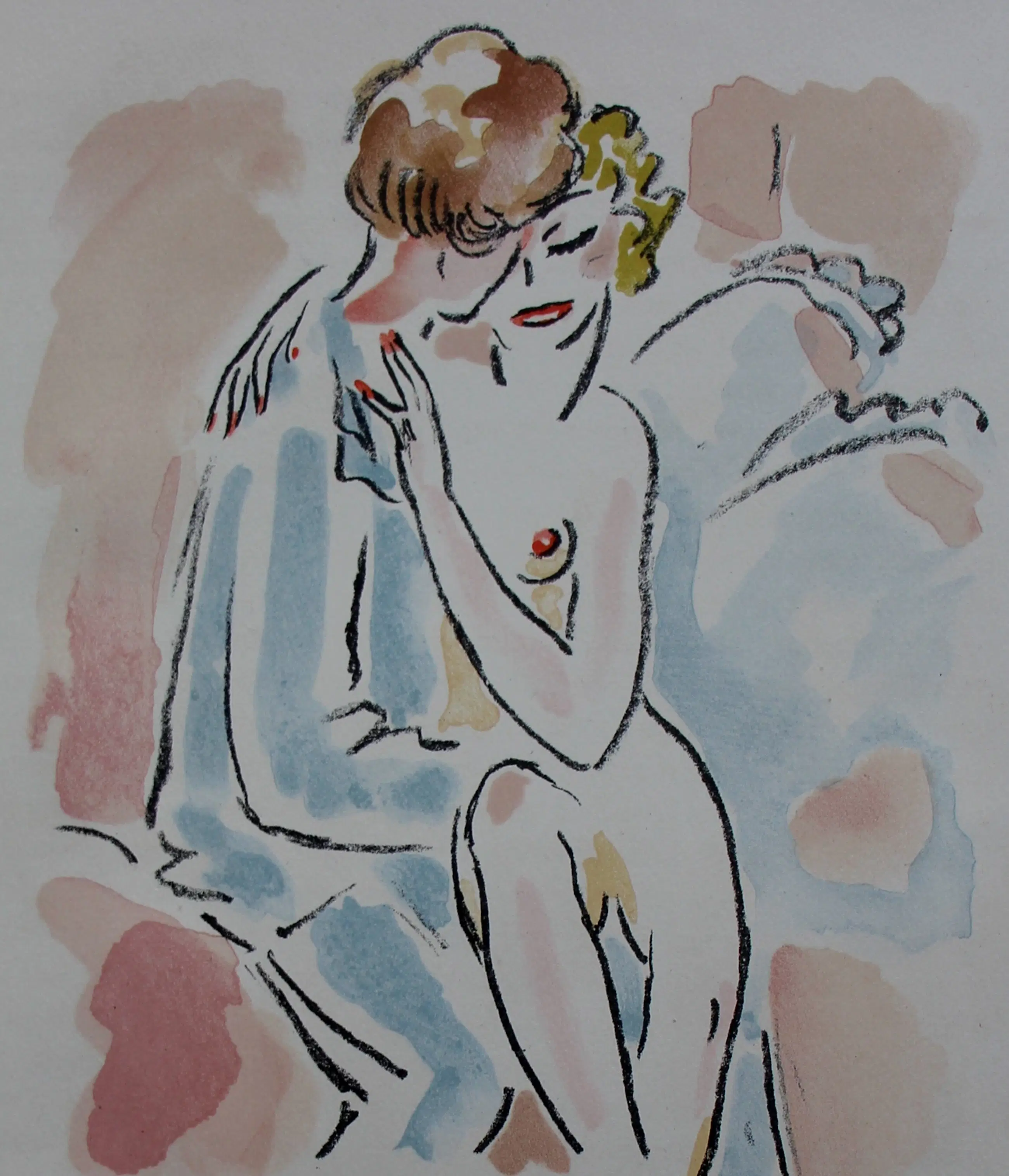 Litho van Kees van Dongen. Afkomstig uit twee of meerdere versies van "La Revolte des Anges", gedrukt door Mourlot, Chapitre(Hoofdstuk)VIII. Jaar: 1951. Oplage: 15/225. Afmetingen blad: H36 x b27cm. Afmetingen voorstelling: H21 x b19cm. Het werk is niet gesigneerd door de kunstenaar. Literatuur: Kees van Dongen, het complete grafische werk.