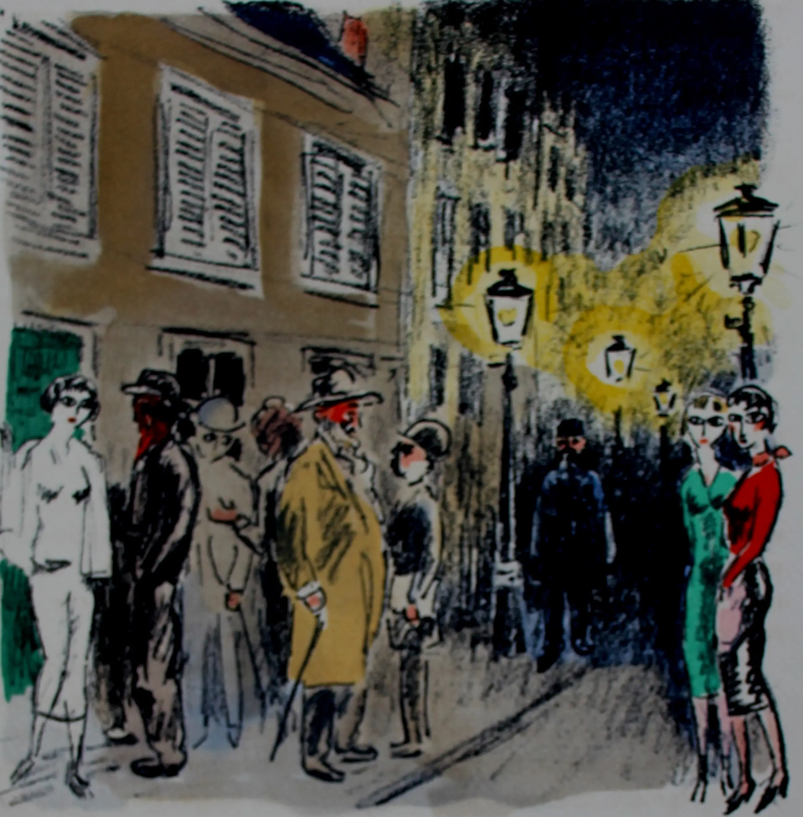 Litho van Kees van Dongen. Afkomstig uit twee of meerdere versies van "La Revolte des Anges", gedrukt door Mourlot, Chapitre(Hoofdstuk) XXXIII. Jaar: 1951. Oplage: 15/225. Afmetingen blad: H36 x b27cm. Afmetingen voorstelling: H19 x b18cm. Het werk is niet gesigneerd door de kunstenaar. Literatuur: Kees van Dongen, het complete grafische werk.