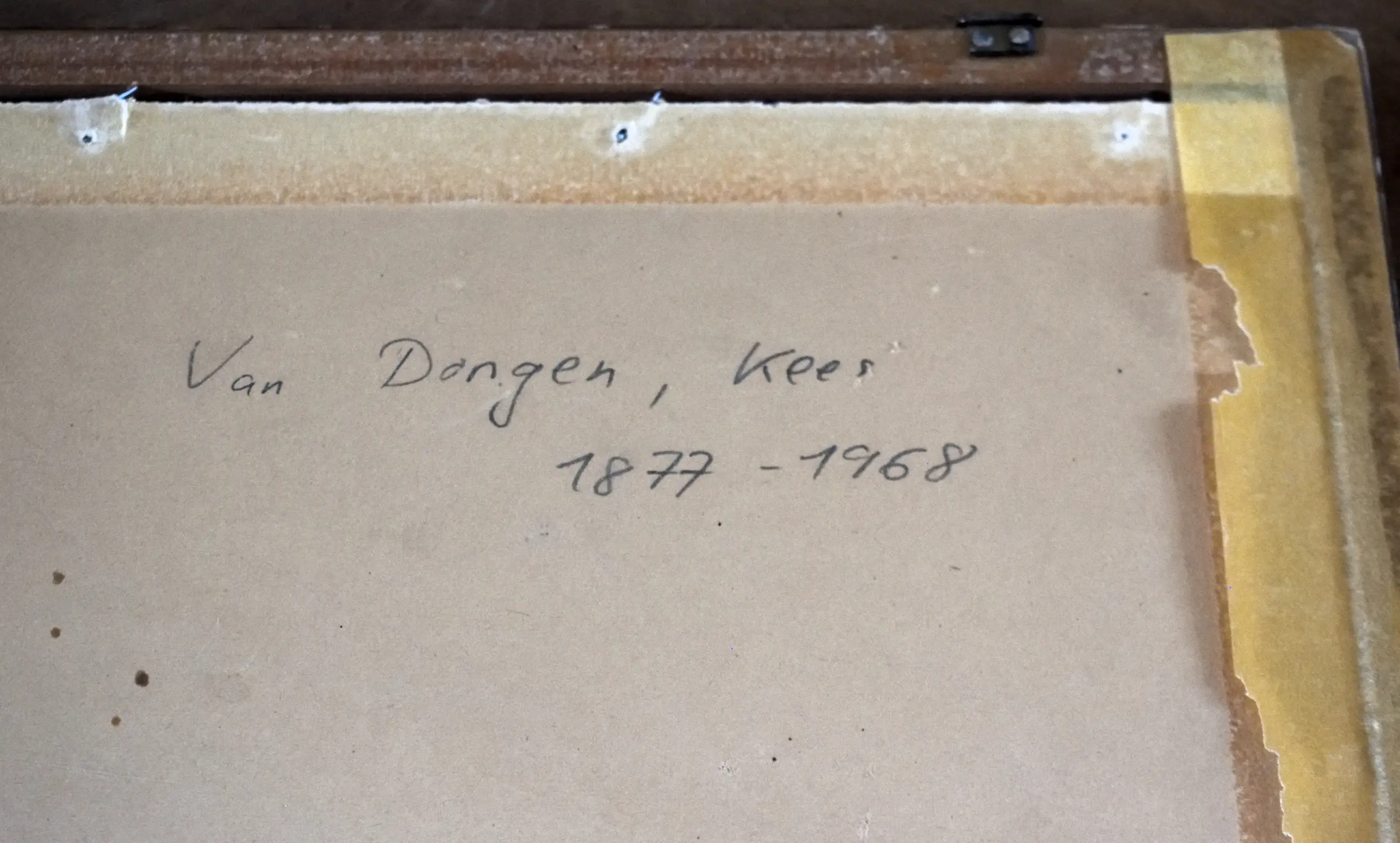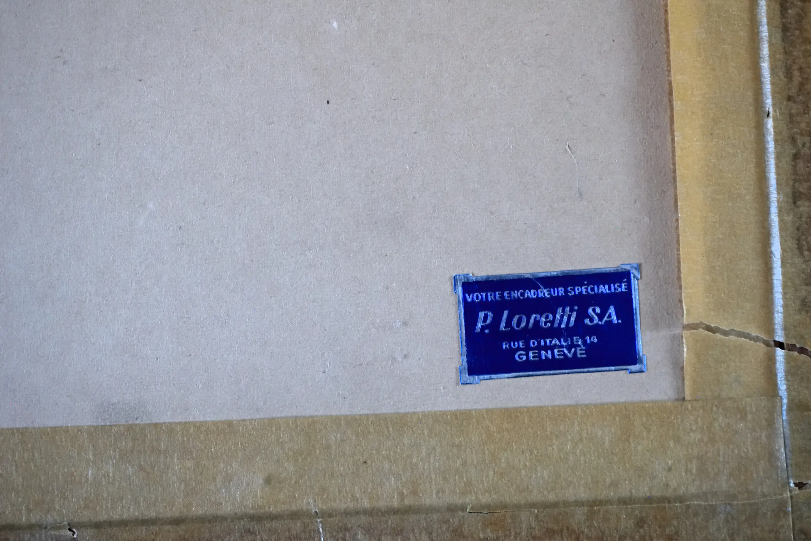 Lijst heeft beschadigingen, papier is verkleurd.