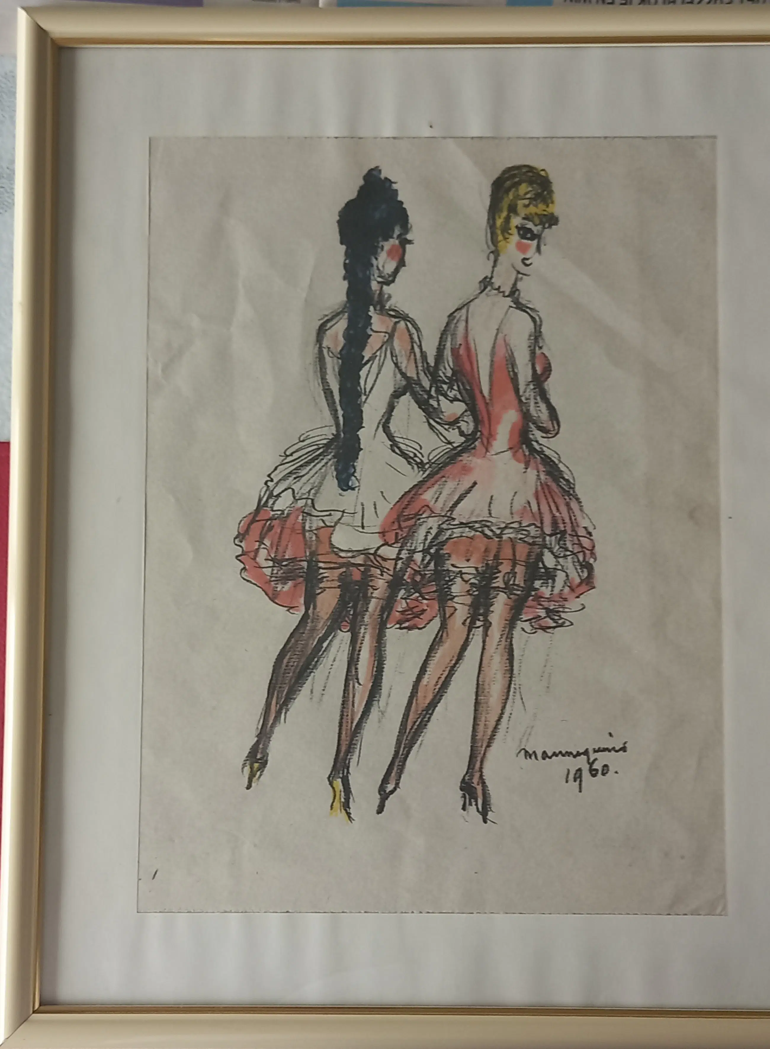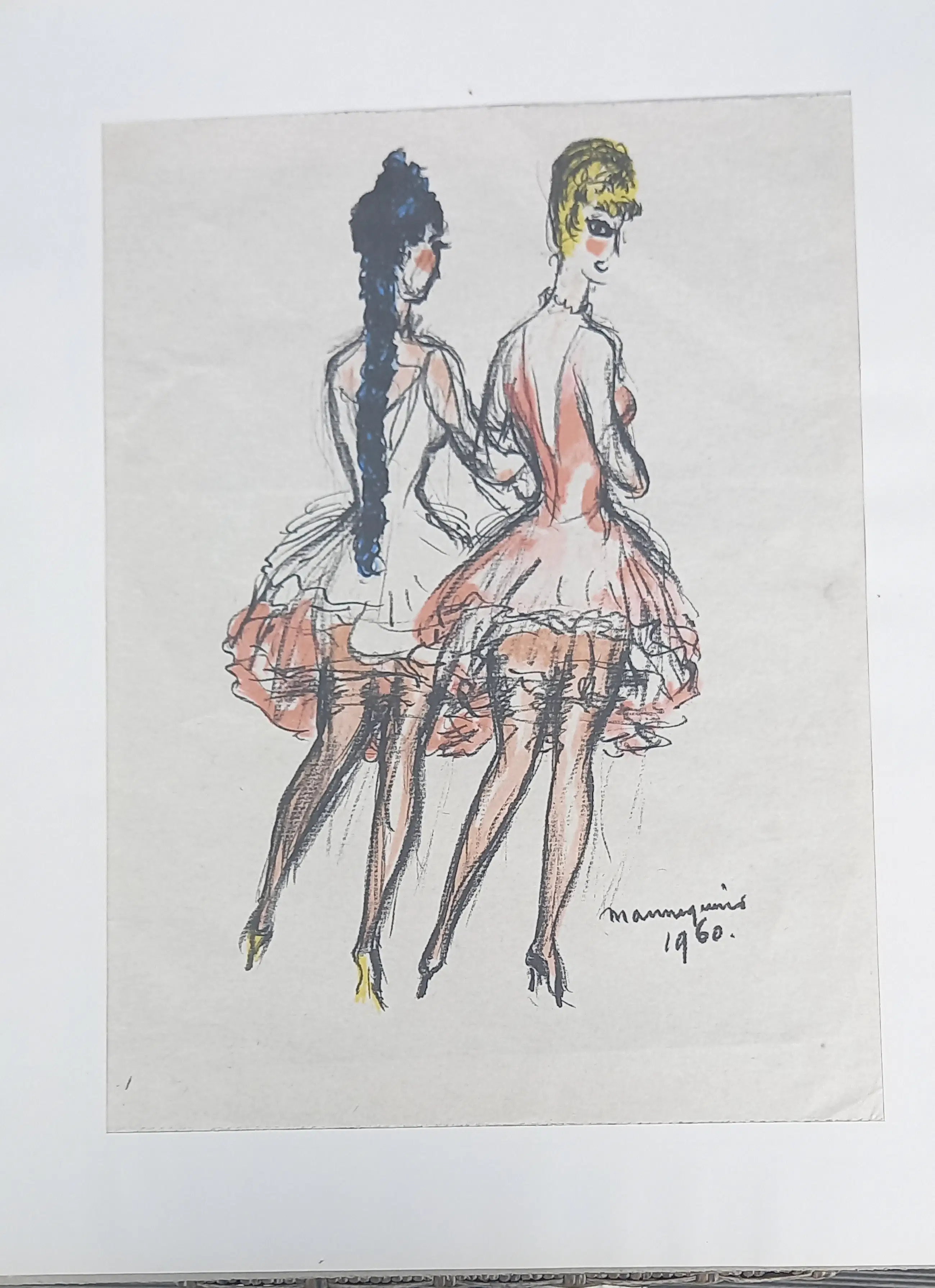 Beperkte editie: 500 stuks Kleurenlithografie , 1961, met inscriptie op de steen Mannequins 1960 Gedrukt voor André Sauret Editeur, Regards sur Paris (Parijs 1962)