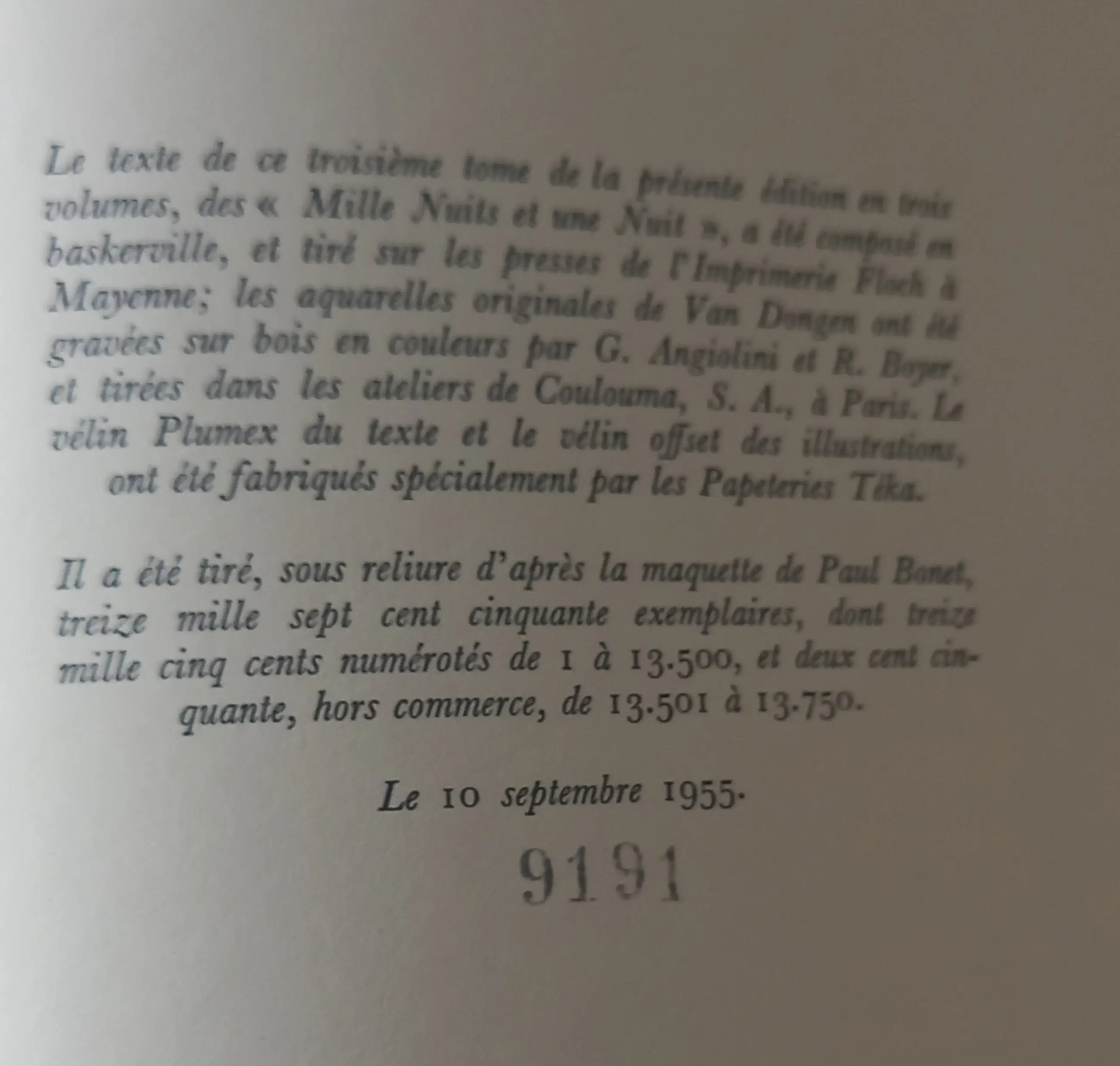 J.C. Mardrus, LE LIVRE DES MILLE NUITS ET UNE NUIT - Traduction littérale et complète; 1955. Editions Gallimard, Paris. 3 banden met 80 illustraties, houtgravures naar aquarellen door Van Dongen. Editie 13.750 exemplaren. Afm.: 23 x 19 cm. Afgebeeld in Juffermans 'Kees van Dongen - Het Complete Grafische Werk' pag. 169