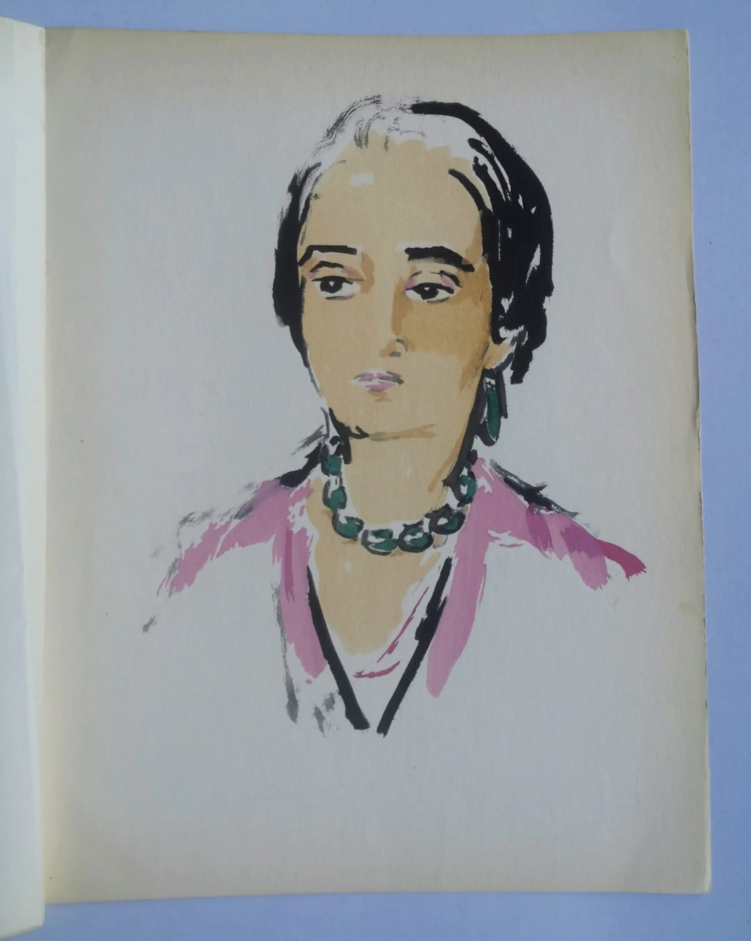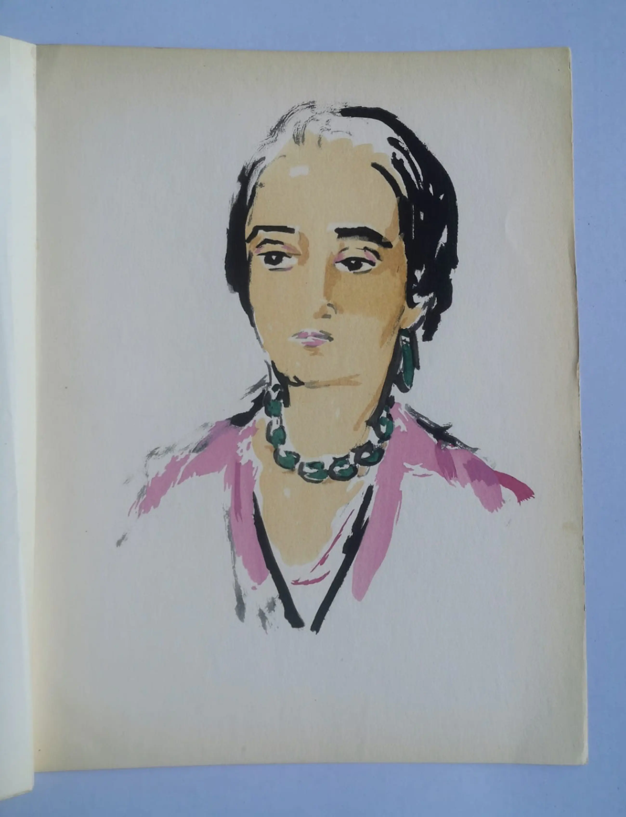 Prima conditie. Kleuren zijn goed, mooi fel en fris. Zie ook de begeleidende foto's. Het beschermingsblad waarachter deze pochoir in het boek heeft gezeten zit er nog aan vast. | |||||||||||