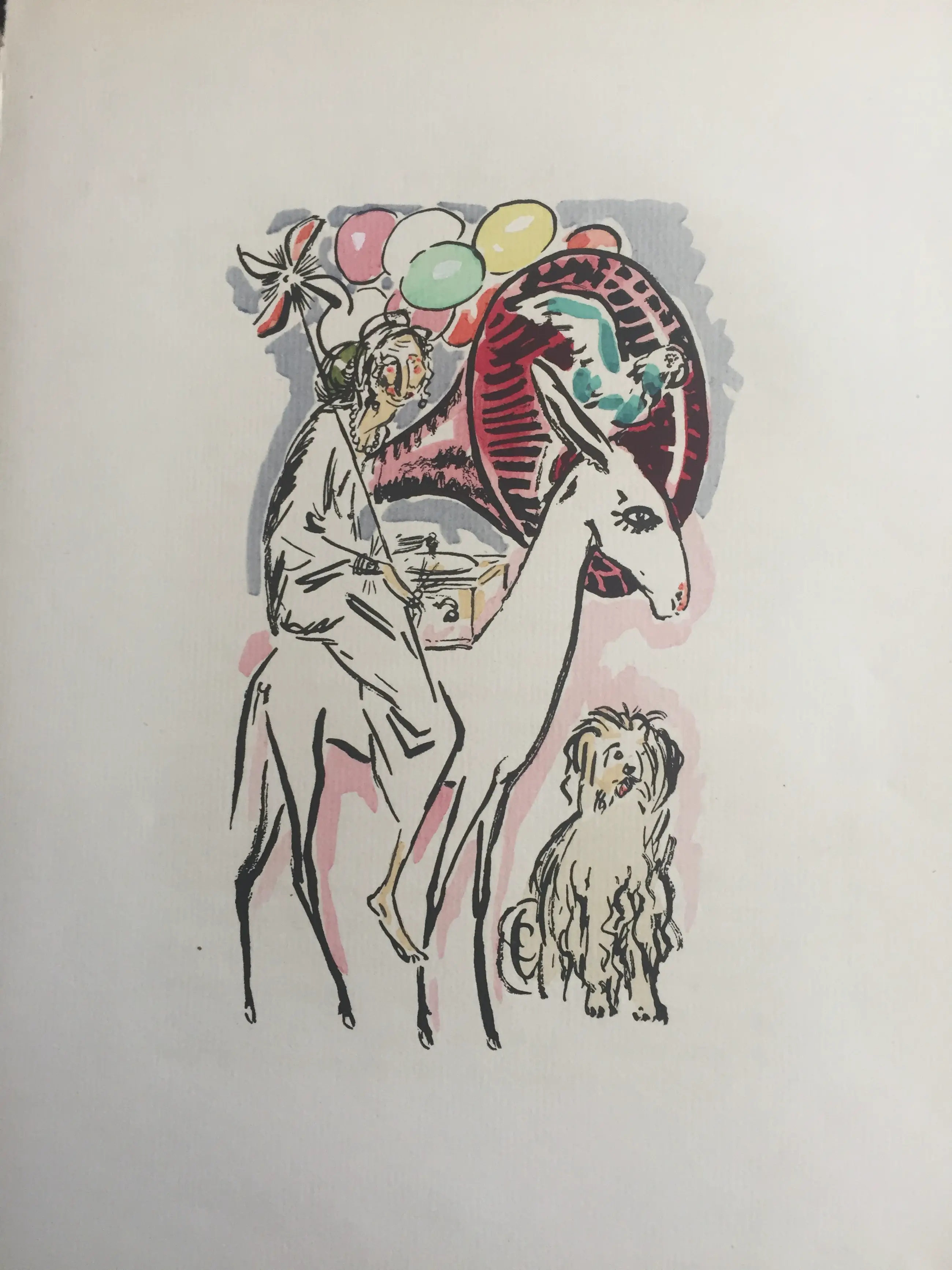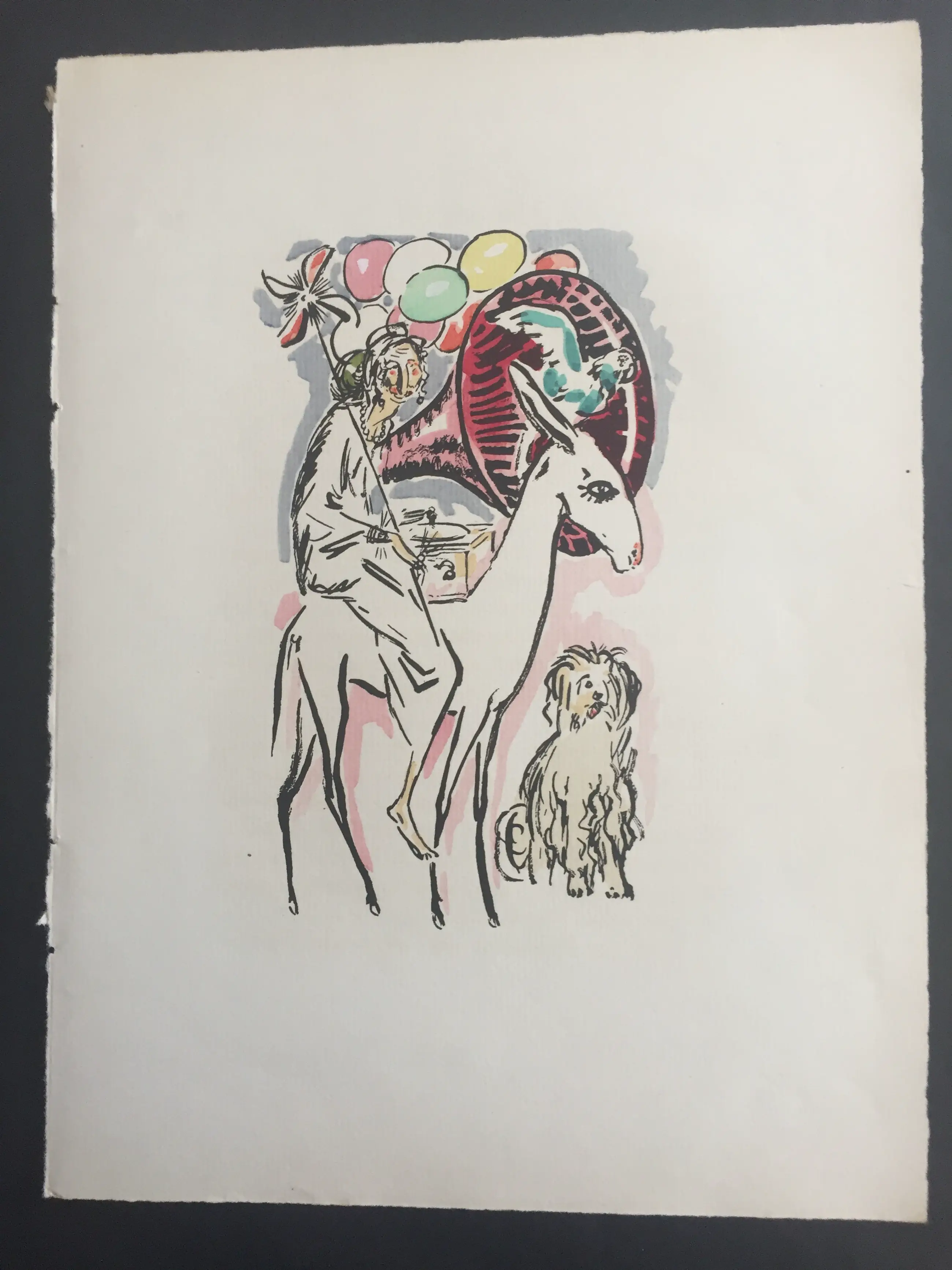Zeer mooie Pochoir van Kees Van Dongen uit "La garconne"met titel: De ezelrijdster.Uitgegeven in 1925.Staat vermeld in het boek: Het grafische werk van Kees Van Dongen.