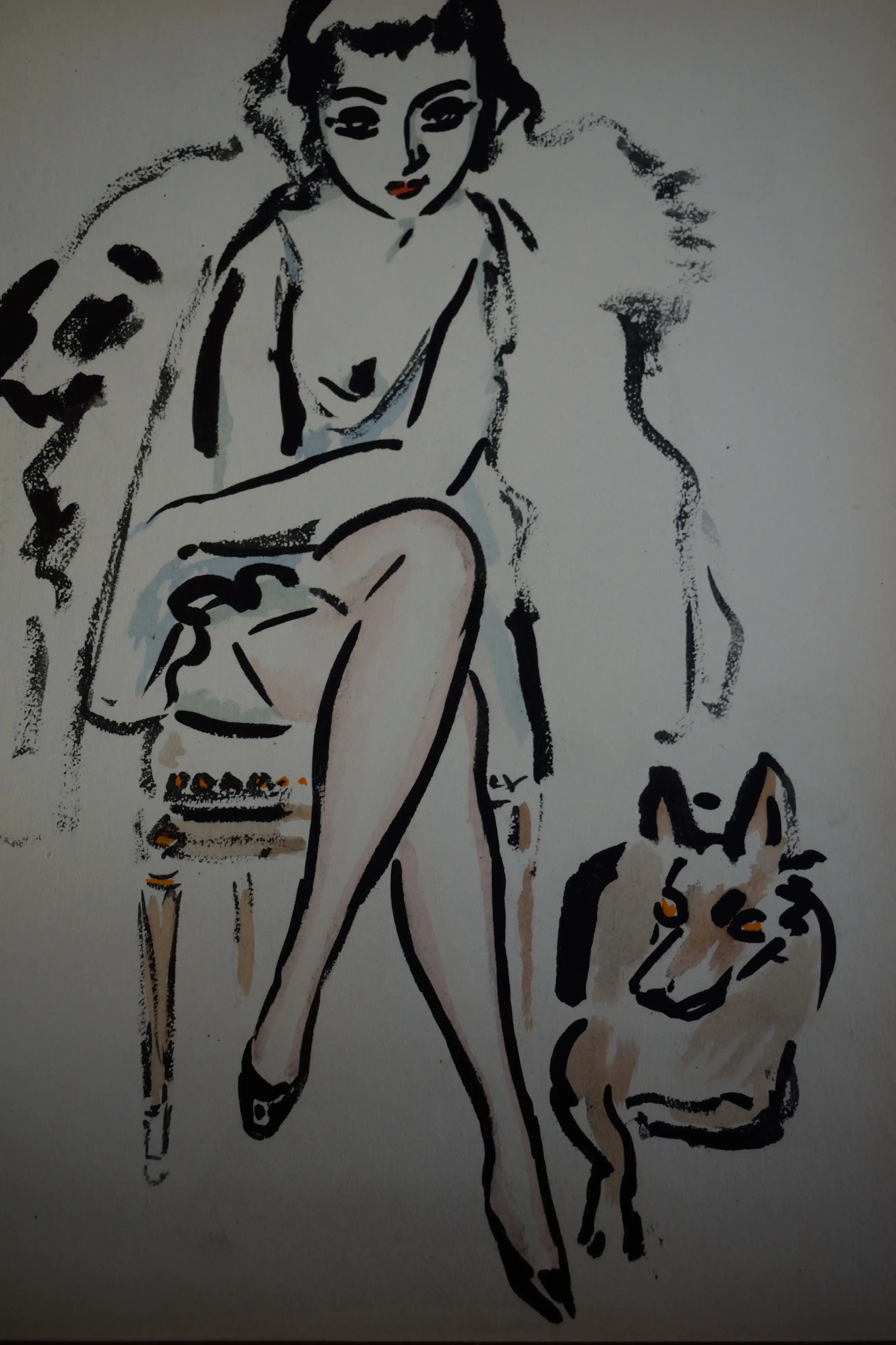 Kees van Dongen- Jeune femme au chien Pochoirdruk, Henri Floury, Parijs 1925. Afkomstig uit de monografie ‘Van Dongen’ door Edmond des Courieres. Papierformaat: 26.5 x 20.5 cm In zeer goede staat, wat kleine verkleuringen aan de randen van het papieris weg te werken.